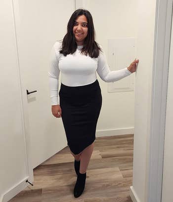 We hope you love our recommendations! While every product is independently chosen by our editors, BuzzFeed and our publishing partners may collect a share of sales or other compensation from the links on this page. You can read more about how our affiliate partnerships work in our Editorial Standards & Ethics Guide. It's bad enough that you gotta go to work...now you have to put together an outfit? Unless otherwise specified, all sizes in this post are listed in women’s. Promising review: "I always get compliments on this color! It’s the perfect basic top for an office setting. Not sheer and just not enough stretch." —Matthew B. Get it from Amazon for $19.99 (available in sizes XS–3XL and 28 colors; this plus-size option is similar!). Promising review: "EXTREMELY HIGH QUALITY. I am so pleased with this skirt that I’ve now ordered three. The pink is almost a bright fuschia and I feel super 'Elle Woods' in it. The Storm color is a soft greige (gray/beige) and looks stunning at work. It doesn’t shift at all and doesn’t cling too badly (except where you want it to). Overall INCREDIBLE purchases." —Hutson Family Get it from Amazon for $49.90 (available in sizes XXS–5X and seven colors). Promising review: "These are my new workhorse pants for office wear. Nothing fancy, but they're comfortable, they fit well, they're priced right." —Amazon Customer Get it from Amazon for $22.05+ (available in sizes 16–24, short lengths, and seven colors). Promising review: "I'm a 5'1.5" girl and have been STRUGGLING to find office pants that I haven't needed to get hemmed. I bought these in the XS short, and they fit like a dream!! So comfy. The waistband is very stretchy, and wearing these feels like sweatpants. They are on the thinner side — I wouldn't wear them in winter without warmer leggings or something underneath, but for summer or autumn, they are perfect." —shalom Get them from Amazon for $28.89+ (available in sizes XS–XXL, 1X–2X, short lengths, and 28 colors). Promising review: "These truly are one of my favorite things to wear to work every day, and I have one of every color. (I think I'm missing like three or four colors, but they are amazing!) The durability is great; they wash up fabulously. Great for the value. Truly a must-have!" —Christy Hawkins Get it from Amazon for $52.99+ (available in sizes XS–XXL, XL Plus–5XL Plus, and 26 colors). Promising review: "Buy the dress!!! If you work in a professional environment or just want to dress up, this dress is for you. It has a slight stretch, unlike other tweed styles, so it will hug all your curves. I got so many compliments on it. It’s very comfortable and very stylish." —Jake/Shelby Arians Get it from Amazon for $39.99 (available in sizes S–XXL and 42 colors/styles). Promising review: "What can I say? The title said it's all. I absolutely love this skirt. I love the fabric; it's breathable, it's comfortable, and it looks amazing on me. It hugs without being too tight. Sometimes, skirts like this can be a little stiff up in the waist area, causing them to be so uncomfortable, but not this skirt. The fabric moves with you, making it so much more comfortable. And if you work in an office, and you have to wear suits and skirts all day long, that's a great find. Would love to order this in cream/beige." —Tara Get it from Amazon for $19.99 (available in sizes XS–5X and 35 colors). Promising review: "Elevates every work outfit! These are the cutest belts! I get the most wear out of the black, and it makes every pair of trousers look super chic and professional. The adjustable back is good for pants with different waists and is super comfy even after a big lunch! Also, I get compliments all the time, and some people even think it's designer haha." —Amy S Get them from Amazon for $14.99+ (available in three sizes, various colors, and packs of two). One reviewer said the XL is comparable to a 20/22 in plus sizes. Promising review: "This set is divine. Truly. The length of the pants works well if I wear a high-heeled shoe. This is a very professional-looking set while also being wonderfully comfortable. Definitely recommend!" —caligander Get it from Amazon for $43.99 (available in sizes XS–XL and six colors; this plus-size option is very similar!). Promising review: "I have this top in the beige and the olive green color, and I love it! I’ve worn it to job interviews, work functions, church, and so many other things. I love it! Super versatile and well made!" —Rebecca Hendrix Get it from Amazon for $19.97+ (available in sizes XS–XL and 19 colors). Promising review: "I've been looking for an affordable pullover vest for the office. I've been heavily leaning toward the '80s/'90s look lately, and this was perfect! Pair it with a mockneck and it's phenomenal. I'm usually 3/4x, but this fits with room at a XX, so if you're looking for the oversize look, it will definitely work." —Darian Get it from Amazon for $19.99+ (available in sizes S–XXL and 28 colors). Promising review: "I am very satisfied with the shoes, the toes do not stick out of the shoes, they are quite comfortable, they are not high, so they are appropriate for working in the office or standing all day." —Mrs. Retamar Get it from Amazon for $25.99+ (available in sizes 5–11 standard, 7–10 wide, and 14 colors/styles). Promising review: "Love this dress. Bought it to wear to work and thought it would be great for the holidays with some tights and heels." —Lauren J. Get it from Meshki for $155 (available in sizes XXS–3XL and three colors). Promising review: "I love this. I bought it for a conference, so it works perfectly. Paired with a knee-length skirt, it gives sort of 1950s vibes. Also, IF YOU HAVE BROAD SHOULDERS, this fits fine, no pulling or puckering in weird spots." —Cari Get it from Amazon for $27.06+ (available in sizes S–XXL and 22 colors). Promising review: "Absolutely love this cardigan. It is perfect for a fall o