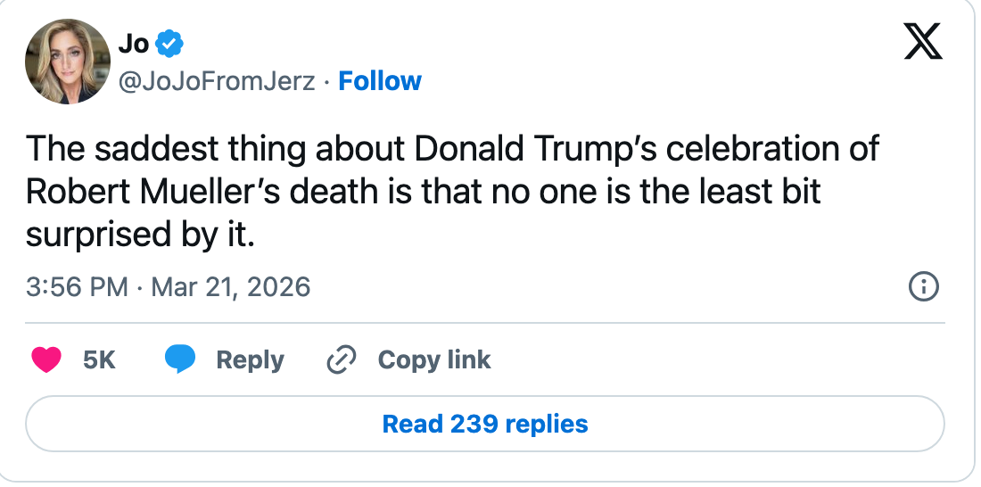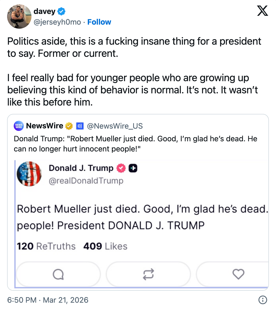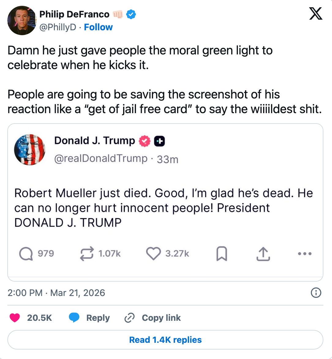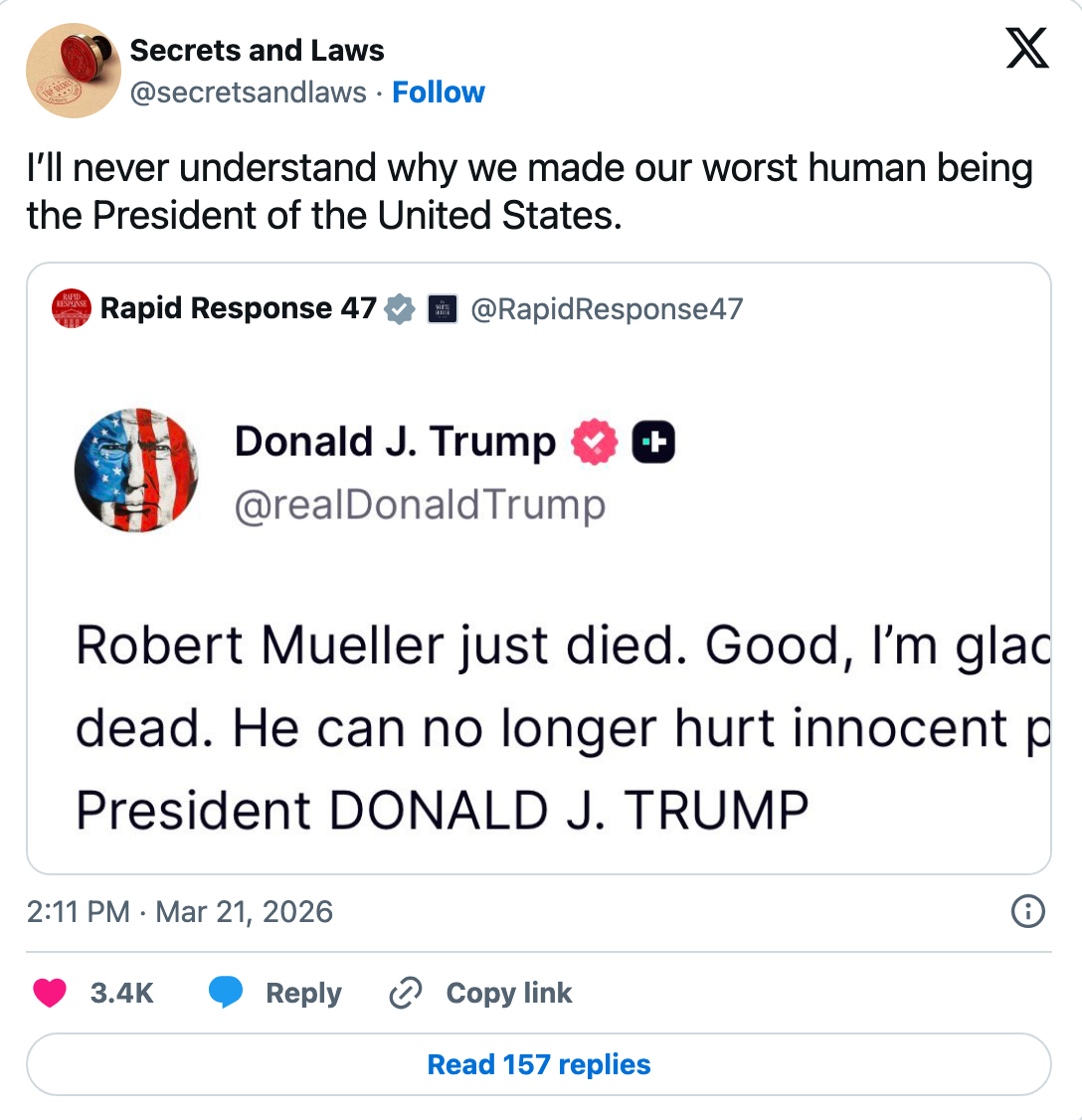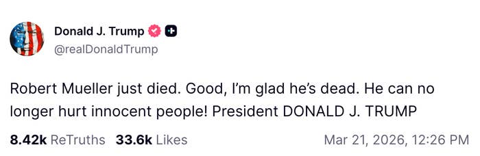 "Vile Piece Of Sh*t": EVERYONE Is Disgusted By Trump's Post Celebrating Robert Mueller's Death