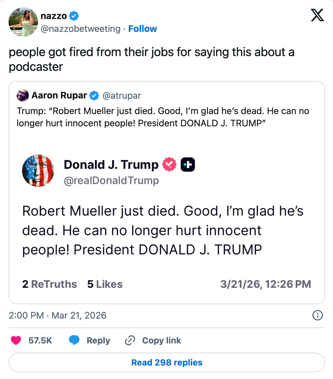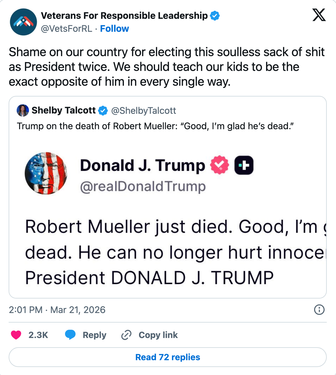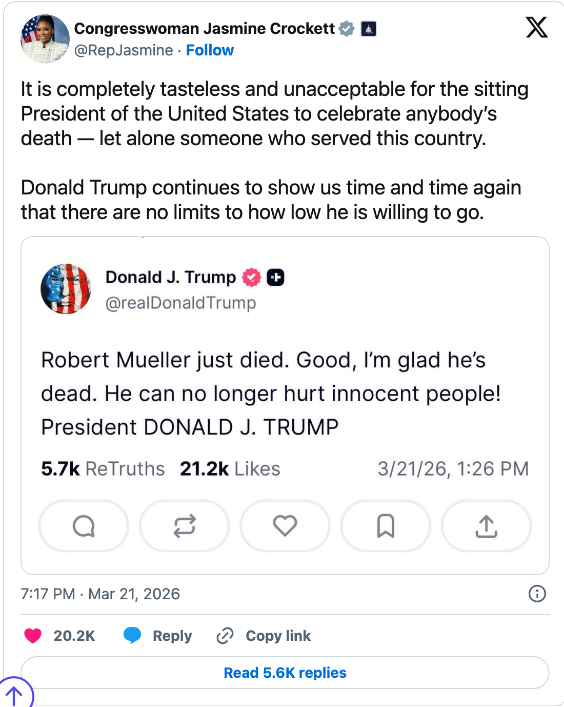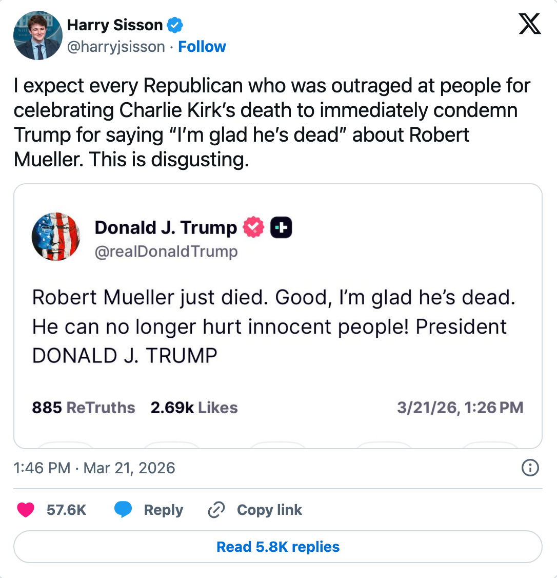 "Vile Piece Of Sh*t": EVERYONE Is Disgusted By Trump's Post Celebrating Robert Mueller's Death