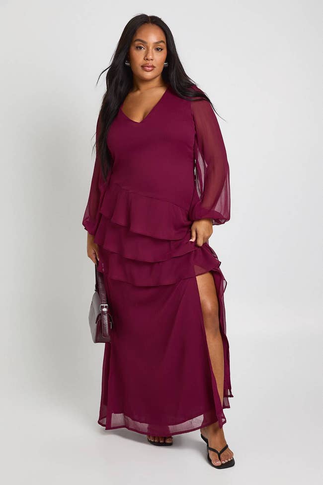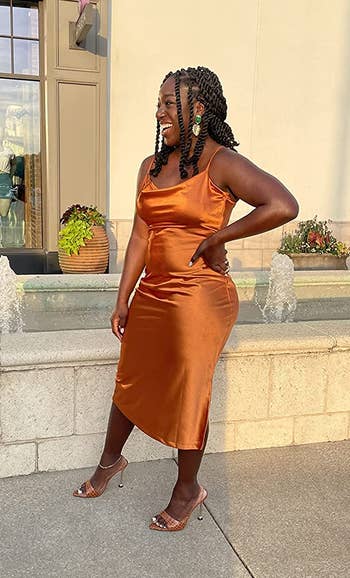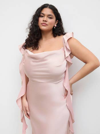 We hope you love our recommendations! While every product is independently chosen by our editors, BuzzFeed and our publishing partners may collect a share of sales or other compensation from the links on this page. You can read more about how our affiliate partnerships work in our Editorial Standards & Ethics Guide. The title of "Best Dressed Wedding Guest" will be earned if you're wearing one of these gowns... trust me. Whether you're the invited wedding guest or a plus one, are attending your work bestie's big day, or the nuptials of your third cousin twice removed (you haven't talked in a while, but it's polite to go, right?) — semi-formal is semi-formal. Meaning the attire is elegant, but not black tie. Comfortable, but not casual. And it's only right that you stick to the happy couple's request. Think strapless satin gowns, chiffon cocktail dresses, and pretty off-the-shoulder numbers. If one of the numerous wedding invites piling up on your counter has semi-formal noted as the dress code, take a look at the options below! Unless otherwise specified, all sizes in this post are listed in women’s. This breathable chiffon pleated off-the-shoulder dress has tiers that'll make you want to dance the night away just to show off how great the ruffles look when you twirl. When "I Wanna Dance With Somebody" comes on — that's your cue to work it! Promising reviews: "I got sooo many compliments on this dress, and I felt super comfortable and stylish while wearing it! I got the blue one, and it's the perfect color for the beach or a summer event. The material is lightweight, and it moves gracefully while you walk. You can wear off the shoulder or on the shoulder." —Kristy and Norris Hartog "Love this midi/maxi off-the-shoulder ruffle dress, it's perfect for spring, summer, and vacations! I personally would style it up for summer weddings too! The fit is great [and] the ruffle is definitely trending, highly recommend." —Nikita C. Get it from Amazon for $37.98+ (available in sizes S–L and six colors). A flowy floral number is a great option because, no, semi-formal doesn't have to mean structure and no fun. This dress is giving "dark romance" vibes, with just enough detail (aka the tiered skirt) to move beautifully in the wind. Impromptu photoshoot, anyone? Promising review: "Really love this dress! Super attractive and incredibly comfortable. Just the right amount of stretch. I sized down because I have a smaller bust, and it still fits my sizeable backside lol. Highly recommend!" —KaytlynR Get it from Torrid for $31.96 (originally $79.90; available in sizes 10–30). Is it just me, or is this double-lined strapless satin dress the type of gown you'd wear to step out of the limo as a Bachelor contestant? ...I guess you can also just wear it to your co-worker's wedding (whichever comes first). The back strap is stretchy too, ensuring it fits you just right. Promising reviews: "I ordered this last minute for a formal event, and let me tell you, I was pleasantly surprised! It runs true to size and [fits] you in all the right places... a MUST-BUY!" —Ryan "My new FAVORITE wedding guest dress. This dress was soooo perfect for our friend's summer wedding...The material is so thick and beautiful. I received sooo many compliments in this dress." —Amazon Customer Get it from Amazon for $49.99 (available in sizes XS–XL and in 30 colors). For those looking for something bold, this V-neck ruffle slit maxi dress will make you feel like the dance floor's disco ball with the amount of people gravitating toward you all night. Reviewers of various body types say this beauty is SE-XY, fun, comfortable, and makes them feel fantastic when they have it on! Promising review: "I would recommend this dress to every person I know. The material was super soft and stretchy. It can be worn for a formal or casual wedding. It wasn’t see-through at all and had two layers of thickness. The quality of this dress was great. Super functional for exactly what I needed." —Sydney Cordeiro Get it from Amazon for $44.99 (available in sizes S–XL and 17 colors). Bring the drama in this satin gown! It has flutter sleeves that turn into ever-flowing ruffles and a hem length that'll reach the ballroom floor. If you're looking for a statement piece, this is the one. But be warned, all statements from other guests will be of the compliment variety. Promising reviews: "RUN to buy this dress. I bought it for a wedding and honestly wasn’t expecting much as I have never ordered from Cider before; however, the dress is BEAUTIFUL. It fits perfectly, and I felt so gorgeous the whole day; I got so many compliments on it with everyone asking where it was from. It’s the perfect length, and what I love is that it actually hugs my waist, which is what some silk dresses lack. Honestly, my favorite dress that I own!!" —Cider Customer Get it from Cider for $47.90 (available in standard sizes 0–10 and eight colors, and plus sizes 12–24 in pink). This pretty chiffon maxi dress has a fun open back, billowing sheer sleeves, and a *stunning* frilled waist that brings in a soft and delicate feel to this elegant look. Get it from Boohoo for $42.40 (originally $106; available in sizes 12–26 and in colors burgundy and black). Everyone needs a midi-length satin dress with a cowl neck in their closet, but this one is budget-friendly and stunning all the same. Also, it may just be the easiest stylish outfit there is. A satin dress with sneakers during the day is edgy, but a satin dress at night? Epic! And FYI, there are TONS of pregnant reviewers who are obsessed with the amount of stretch this dress has. Promising reviews: "This dress is super gorgeous and totally worth the money! TikTok made me buy it, and it was on sale, so even better. The fabric is also really good quality." —Melanie Get it from Amazon for $32.99 (available in sizes XS–XL and in 23 colors and styles). And here's a similar plus-size version (L–5X) for $39.