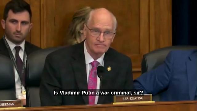 Rep. Bill Keating (D-MA) grilled Under Secretary of State for Arms Control and International Security Thomas DiNanno during a tense House hearing on Wednesday. DiNanno appeared before the House Foreign Affairs Committee and Keating used his time to inform DiNanno he needs to do his “homework.” The lawmaker blasted the U.S. pulling back support in areas for Ukraine, which DiNanno denied was under his “purview.” Keating accused DiNanno of lowering support for “mobile fire teams” and prosecutors targeting war crimes in Ukraine. The lawmaker became especially frustrated when DiNanno refused to give a “yes or no” answer on whether Russian dictator Vladimir Putin is a “war criminal.” “You’re also cutting the support we have for the general prosecutor in Ukraine that’s prosecuting war crimes. Is Vladimir Putin a war criminal, sir?” he asked. “That’s well outside of my purview,” DiNanno said. “How about as an American?” Keating asked. “As an American person and a citizen… is Vladimir Putin a war criminal?” “I understand that on both,” DiNanno said. “No, yes or no,” Keating demanded. “I’m not going to answer yes or no,” DiNanno said. “You’re not going to answer yes or no. That’s quite an answer,” Keating noted. “Yes,” DiNanno agreed. “Yes! Not it’s yes now. It’s yes or no,” Keating said. “You can’t even [answer] a simple question like that.” Keating again grew frustrated as he argued back and forth with DiNanno about whether these services to Ukraine fall under his “purview.” “This is under your purview. You should be doing more,” Keating said. “No, sir, it’s not,” DiNannon pushed back. “Yes, it is, by the way. Funding the Prosecutor General’s Office is, by the — I know everything’s new to you. You have funds to help train and move forward with the prosecution and help the Prosecutor General in Ukraine,” Keating said. “If there is a specific program that you feel or that you know —” DiNanno began. “You funded a legal advisor in the office!” Keating said. “I don’t know about any specifics,” DiNanno said. “Well, then you should know about it, with all due respect,” Keating responded. “I’ve got eight seconds. Do your homework. Come back here. Let’s deal with this.” Watch above via CSPAN. The post ‘Do Your Homework!’ Democrat Rips Trump Official for Refusing to Say Whether Putin Is a ‘War Criminal’ in Fiery Hearing first appeared on Mediaite.