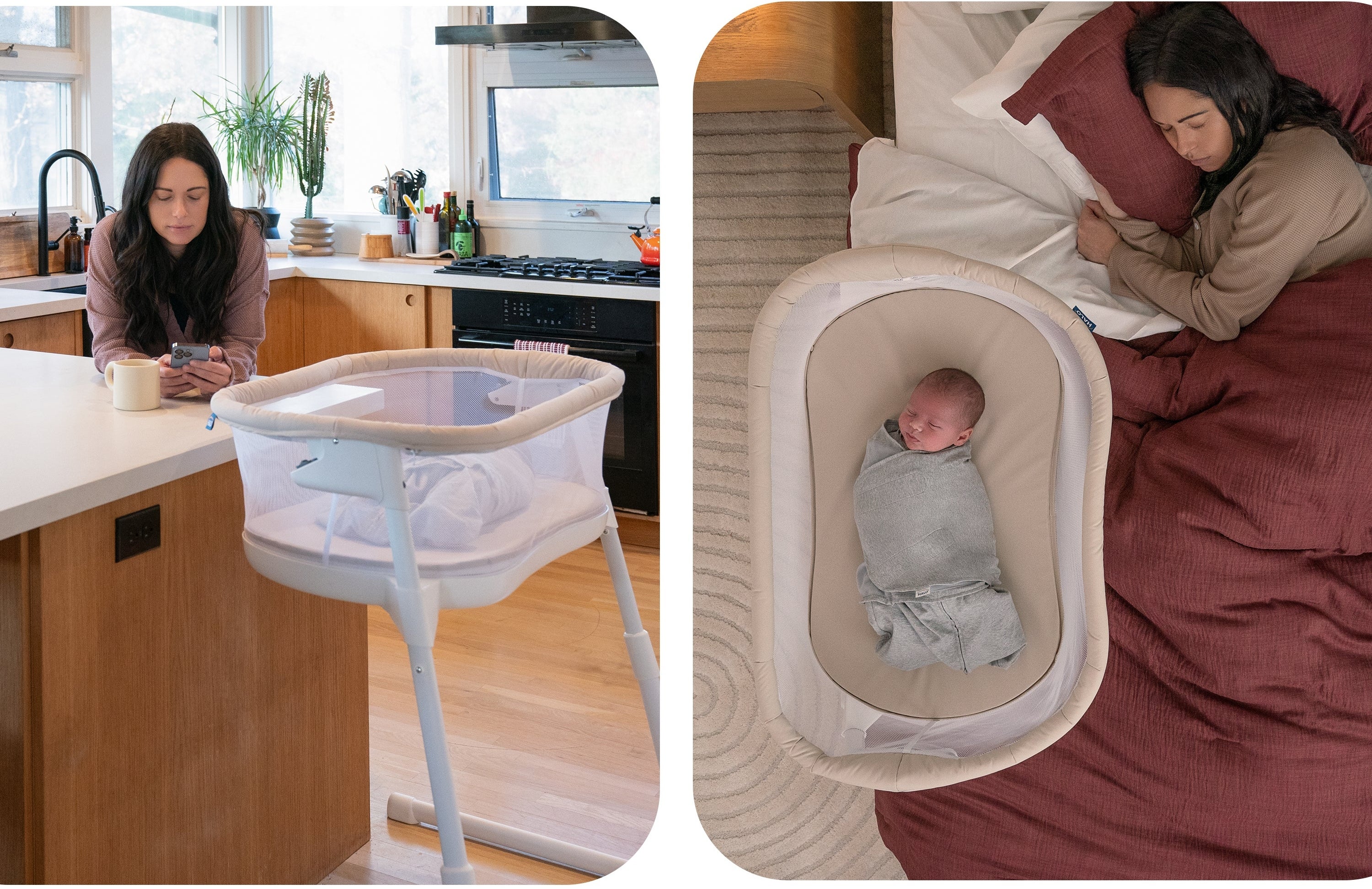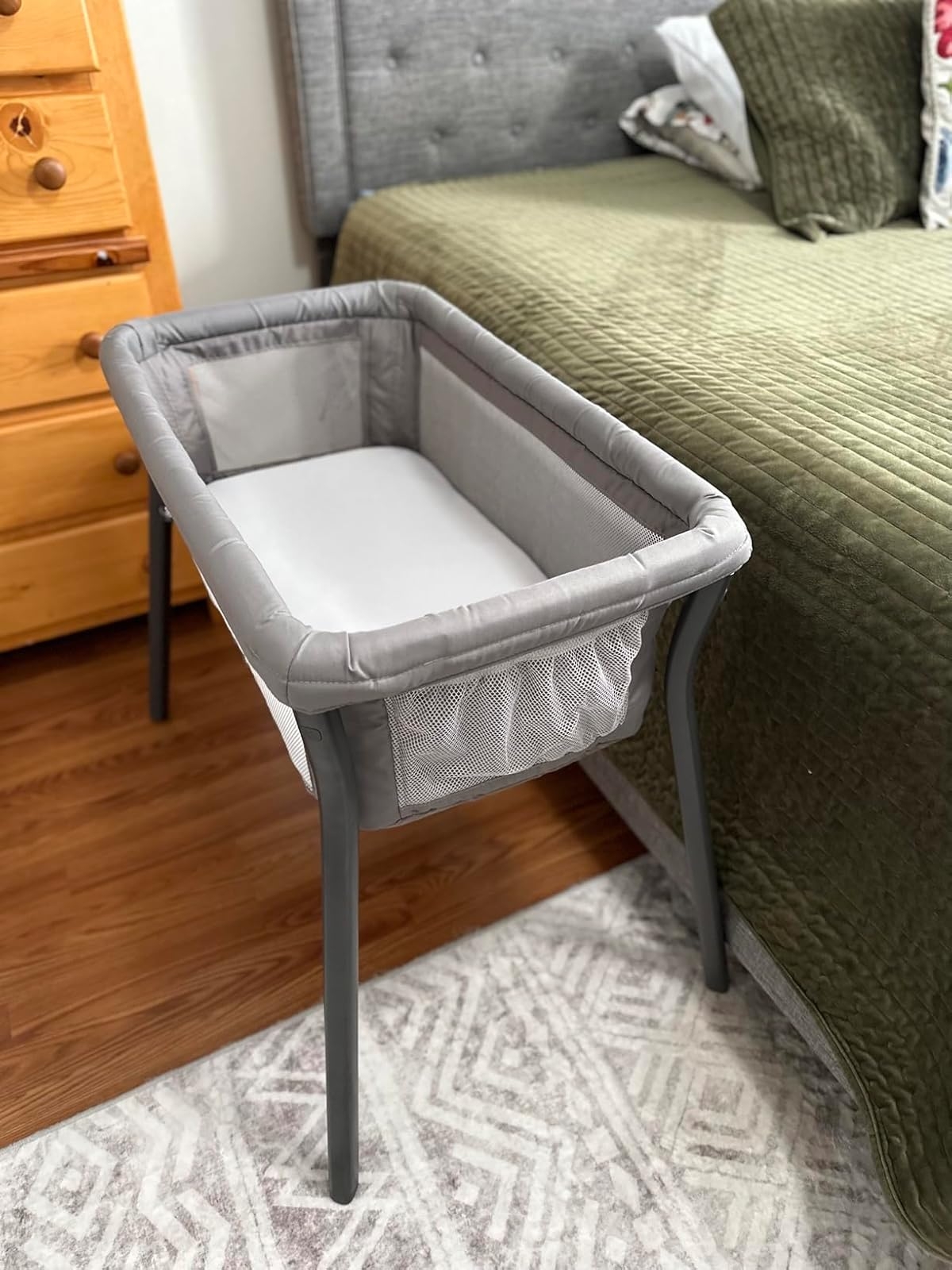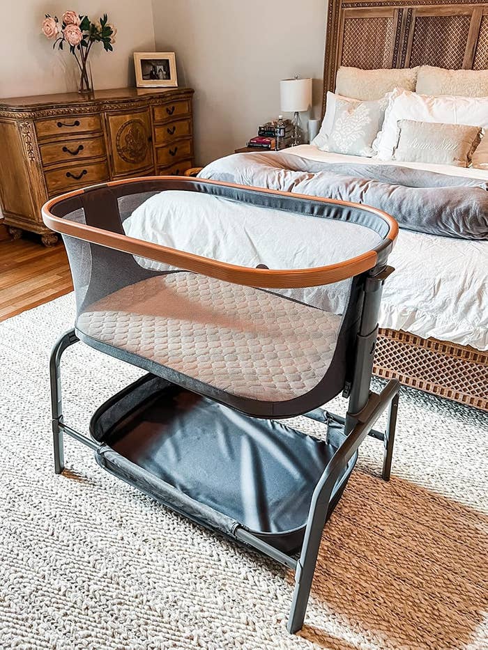 We hope you love our recommendations! While every product is independently chosen by our editors, BuzzFeed and our publishing partners may collect a share of sales or other compensation from the links on this page. You can read more about how our affiliate partnerships work in our Editorial Standards & Ethics Guide. You'll be able to find the one that fits your bedroom, your budget, and your version of survival. Some are compact and no-fuss, some come with storage, some swivel, some rock, and some practically arrive with a resume. The best one for you and your baby really comes down to your space, your budget, and which features will make those middle-of-the-night wake-ups feel even a little bit easier. And remember, there are some really great vetted toys and tools (especially playmats!) out there to make the early days just a wee bit easier. Before buying a bedside bassinet, keep safe sleep front and center: Babies should sleep on their backs on a firm, flat, non-inclined surface in their own bassinet, ideally in the same room as their parents, for at least the first six months. The sleep space should stay bare except for a fitted sheet, which means no blankets, pillows, bumpers, toys, or positioners. And if the baby falls asleep in a swing, lounger, rocker, or other inclined product, they should be moved to a flat sleep space right away. A Maxi-Cosi Iora Bedside Bassinet that earns the best-overall spot by checking all the boxes without feeling overcomplicated. It has four height positions, a slide function to help line it up with your bed, breathable mesh sides, and a large storage basket underneath for all the baby essentials you somehow need within arm's reach at all times. Promising review: "This bassinet is gold! My daughter has been in it since she was a newborn, and she is going on four months and still fits in perfectly. It’s a very sturdy base and has a roomy bottom where I put all her sleepwear and blankets/swaddles, and even a small basket for dirty clothes. It goes up and down three levels and slides to either side to get it closer to the bed if you want to. Absolutely love this, and I recommend it to other parents." —Saray Get it from Amazon for $257.27+ (available in five colors). A Chicco Close to You Bedside Bassinet for making those early postpartum nights feel a little less like an obstacle course. It's designed to get the baby up closer to you, which means less bending, reaching, and awkward maneuvering when your body is still recovering, and it also has wheels so you can move it around the house without much fuss. Promising review: "I bought this bassinet because I couldn't bend over the bed to take my baby out of the traditional bedside bassinet after my C-section. It saved my sleep since I could roll the wheels under the bed, so she was essentially on the bed with me, but safely. It also has a removable piece that has a light, plays music, and vibrates. I take it off all the time to attach to other devices since she likes the vibrations so much. You won't regret this purchase!" —nick A Delta Children Sweet Dreams Bassinet if you want a solid bedside setup without spending a small fortune. It delivers the basics parents actually need, including a lightweight frame, mesh sides for airflow, and a simple footprint that won't eat up your entire bedroom. Promising review: "I love this bassinet! It is the perfect size for our room and fits perfectly next to our bed. The fact that it has wheels is so awesome because I can literally put it anywhere in the house, which is important because I also have a toddler that needs constant care as well. The mattress that was included is soft, and just the right thickness for the age range it is made for, and it is very easy to clean up any spit-up or accidents that may occur. The features offered (music/light/vibration) are super helpful as well! They come in handy for middle-of-the-night checks or settling. Great product for a wonderful price." —Mia Kopala A Graco DreamMore Bedside Bassinet because traveling with a baby is already a circus, and your sleep setup should not be the clown car. The removable bassinet makes it easier to bring from place to place, and the lightweight design is a lot more manageable than hauling something bulky every time you and the kiddo head out for an overnight. Promising review: "I travel in a camper for work, and we bought this to fit above our bed with our limited space. It has a free-floating feature that allows it to sway side to side, making it very maneuverable. It comes right above our bed, which is rather tall. It's sturdy, and the baby sleeps well in it, so I would say it's comfortable. The detachable basket makes it mobile as well. One of our best purchases." —Cameron Mabury Get it from Amazon for $209.99+ (available in two colors). A Fodoss Bedside Bassinet if postpartum recovery, breastfeeding convenience, and keeping the baby sleeping safely close by are all high on your list. Its adjustable-height design makes it easier to line things up with your bed, which can make overnight feeds, check-ins, and groggy middle-of-the-night pickups feel a whole lot less awkward. Promising review: "I bought these for my twins after a friend recommended them, and I cannot express how pleased I am with these. We have them set up in our bedroom, and they're so easy to roll but also lock if you don't want them moving around. They're also really easy to put together and break down — we took a trip to the beach, and they were so easy to transport. I also like that you can adjust the bassinet's height. My husband is taller than I am, and the one we originally used was too tall for me, but this one is perfect because it lets me lower it when needed. Definitely recommend!" —Madison A Halo BassiNest Swivel Sleeper 3.0 that'll keep the baby close without having to commit precious bedroom real estate to one fixed position. The 360-degree swivel is the whole magic trick here, and will let you pull the 
