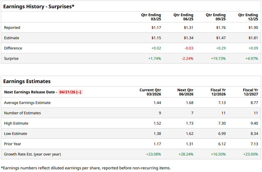 Lowell, Arkansas-based J.B. Hunt Transport Services, Inc. (JBHT) provides surface transportation, delivery, and logistics services in the United States. Valued at a market capitalization of $19.4 billion, it operates through Intermodal, Dedicated Contract Services, Integrated Capacity Solutions, Final Mile Services, and Truckload segments. JBHT is expected to release its Q1 2026 earnings on Apr. 15. Ahead of the event, analysts expect the company’s EPS to be $1.44 on a diluted basis, up 23.1% from $1.17 in the year-ago quarter. The company has exceeded Wall Street’s EPS estimates in three of its last four quarters, while missing on one occasion. Elon Musk Just Announced a ‘Herculean Task’ for Tesla. Can TSLA Stock Survive and Thrive? Bank of America Says Oracle Stock Can Gain More Than 30% from Here. Why? Micron Broke Below Its 50-Day Moving Average. Should You Buy the Dip? Markets move fast. Keep up by reading our FREE midday Barchart Brief newsletter for exclusive charts, analysis, and headlines. For fiscal 2026, analysts project the company’s EPS to be $7.13, up 16.5% from $6.12 in fiscal 2025. Moreover, its EPS is expected to rise by roughly 23% year over year (YoY) to $8.77 in fiscal 2027. JBHT stock has surged 39.5% over the past 52 weeks, outperforming the S&P 500 Index’s ($SPX) 14.1% rise and the State Street Industrials Select Sector SPDR ETF’s (XLI) 22.8% return during the same time frame. JBHT stock rose marginally on Jan. 22 following the Board of Directors' announcement of a dividend increase. The announcement included a 2.3% increase in its regular quarterly dividend on common stock, to $0.45. The company has a dividend yield of 0.88% and an annual payout of $1.80. JBHT has also been paying dividends for 21 consecutive years, which is impressive and attracts more investors seeking high-yielding industrial stocks. Analysts are moderately bullish on JBHT, with the stock having a “Moderate Buy” rating overall. Among the 25 analysts covering the stock, 12 are recommending a “Strong Buy,” one suggests a “Moderate Buy,” 11 analysts advise “Hold,” and one recommends “Moderate Sell” for the stock. JBHT’s average analyst price target is $214.48, indicating an upside of 2.6% from the current levels. On the date of publication, Aritra Gangopadhyay did not have (either directly or indirectly) positions in any of the securities mentioned in this article. All information and data in this article is solely for informational purposes. This article was originally published on Barchart.com
