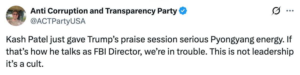 "Just know, Mr. President, how many millions of dreams like mine are going to be lived thanks to your brilliant leadership." I'm the AAPI Culture Editor here at BuzzFeed, where I cover everything from trending news to pop culture to AAPI issues. Stephen Miller praised Trump for several minutes. Then Trump turned to Kash Patel and said, “Kash, see if you can top that.” Patel: “Mr. President, thank you for delivering the safest country on God’s green Earth.”Straight up North Korea vibes pic.twitter.com/Xjv6eJag0h