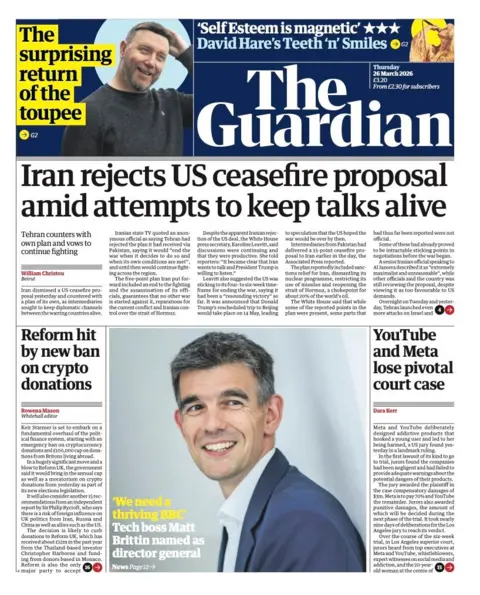 Newspaper headlines: 'Iran rejects peace plan' and '£400m cost of savings scandal'