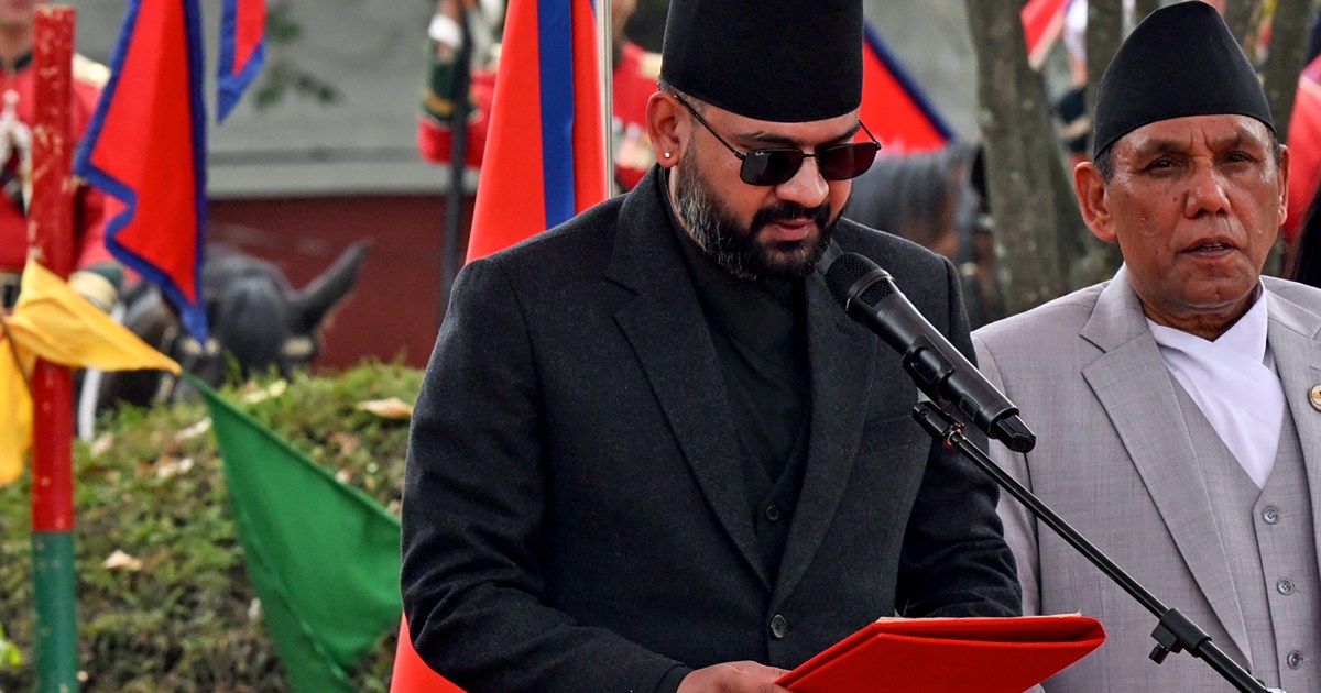 Balendra Shah, 35, and his three-year-old Rastriya Swatantra Party won a landslide after Gen-Z protests toppled the former government. Save Share Balendra Shah, Nepal’s youngest prime minister, has been sworn in after his party’s landslide election victory following protests led by young people that toppled the government in September. A rapper-turned politician, Shah was appointed prime minister by President Ram Chandra Paudel on Friday, after his three-year-old Rastriya Swatantra Party (RSP) won 182 seats in the 275-member parliament in the March 5 vote, the first election since anticorruption Gen Z-led protests in which 76 people were killed. The 35-year-old wore black trousers, a matching jacket, his signature black Nepali cloth cap and sunglasses as he was sworn in at the President House, in the presence of diplomats and senior government officials. A day earlier, the new premier, better known as Balen, released his first public statement since the historic vote with a rap song shared on social media. “Nepal is not scared this time, the heart is full of red blood … Laughter and happiness will reach every household this time,” Shah raps in the song titled Jay Mahakaali (Victory to Goddess Mahakali). His music video, which features visuals of large crowds cheering him during his election campaign, has racked up nearly three million views. “The strength of unity is my national power,” his lyrics continue. A former mayor of the capital, Kathmandu, Shah is Nepal’s first Madhesi premier – people of the southern plains bordering India – to lead the Himalayan nation. China extended its congratulations to Nepal on the swearing-in of Shah, the Chinese Ministry of Foreign Affairs said on Friday, adding it will support its Himalayan neighbour in safeguarding its independence, sovereignty and territorial integrity. Protests had raged over a lack of jobs and endemic corruption in the country of 30 million, where a fifth of the population lives in poverty and an estimated 1,500 people leave the country daily for work abroad. Although he did not directly participate in the protests, Shah publicly expressed support for the largely Generation Z demonstrators who led the movement. Political instability has been an uphill challenge for Nepal, with 32 governments taking office since 1990 and none of them completing a five-year term. The Nepali Congress party, the country’s oldest party, became a distant second group in parliament with just 38 seats. The Communist Party of Nepal (Unified Marxist-Leninist) of KP Sharma Oli, who was forced to resign after the Gen Z unrest, controls 25 members. Former Chief Justice Sushila Karki led the nation through the interim period up to the parliamentary election.