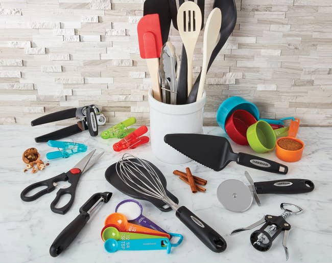 We hope you love our recommendations! While every product is independently chosen by our editors, BuzzFeed and our publishing partners may collect a share of sales or other compensation from the links on this page. You can read more about how our affiliate partnerships work in our Editorial Standards & Ethics Guide. If you've got $40 or less burning a hole in your pocket, this list is for you. Promising review: "For the past few years, I've been obsessed with Dunkin' cold brews and was spending a ton of money going every day until my husband found this! I have zero complaints about this product. It's perfect! I do 8 tablespoons with 40 ounces of water and let it sit for 24 hours or more. Some grounds can sneak through, so I filter the coffee into my carafe. I use light cream, and this tastes exactly like I went to Dunkin'!" —Jessica Price: $14.78+ (available in two colors) Promising review: "I love this wireless charger! It lies flat and has a clean, modern look that fits perfectly on my nightstand. I simply place my phone, earbuds, and smartwatch on it before bed, and by morning, everything is fully charged and ready to go. No more juggling several cords or outlets. It's convenient, efficient, and keeps my nightstand clutter-free." —Greg Price: $17.99 (as shown; also available in two other styles) Promising review: "Very good quality. The throw is very soft and comfortable; it is on the heavy side, not a light throw. The backside is not fuzzy; it is a velvety fabric. I have not washed it yet, so I don't know how it holds up to washing. The color is exactly as shown in the picture. The price is very reasonable for a throw this size and the quality. Would definitely recommend." —Judy Price: $23.88+ (available in four colors) It includes a chef’s knife, a santoku knife, a bread knife, a utility knife, a paring knife, a honing steel, and a universal knife block. Promising review: "The block and the knives are absolutely gorgeous, and I love them. The only thing I will say is that navy was not my preferred color choice, and if they expanded the color options, this would be the perfect decorative necessity for your kitchen. Sleek and just beautiful and elegant! Absolutely love!" —Brittany Price: $32.97+ (available in two colors) Promising review: "Love this hanging unit! Very sturdy! I bought it to use in a closet to hold board games and puzzles. It's of great quality and has been full of games for several months with no issues. It's the perfect size to hold game/puzzle boxes." —Carrie It includes a tape measure, an 8-oz claw hammer, a bit driver, a bit extension holder, 20 different bits, eight hex keys with a holder, and six slip-joint pliers. The set includes one slotted turner, one short turner, one basting spoon, one Euro peeler, one can opener, one pair of tongs, one pizza cutter, one wing corkscrew, three magnetic clips, one pair of shears, one spoon rest, one pie server, one whisk, one silicone spatula, one crock utensil holder, five measuring spoons, four measuring cups, one wood spoon, and one slotted spoon. Promising review: "I gave this beautiful kitchen utensil set to my son for his new home, and he loves it. It has all of the kitchen gadgets that you need for cooking, measuring, peeling, opening cans, and more. It came with a very nice ceramic utensil caddy to keep everything in one place. This is truly outstanding and is a kitchen charm!" —Icantbelieveitsnotbutter Price: $35.44 for a 28-piece set (originally $39.99) I have these and the matching carafe. Every time I have friends over for dinner, I get asked where they're from! Promising review: "It looks very nice and organized and I love that you can see it all displayed when choosing what to wear." —Becca Price: $19.99 (available in three colors) It's microwave, dishwasher, and oven safe up to 450°F. You can choose the color to display and change it at any time in the app. Promising review: "They were easy to set up and work really well. They pair with Wi-Fi, so I can turn them off and on when I'm away. Plus, it's really fun to customize the light display." —Customer Price: $38.48 (originally $40.49; also available in six other lengths) Promising review: "Gave it as a gift to my granddaughter in her new apartment. She said it was the perfect size and great to have on her counter, as well as a cabinet space saver. Spices were fresh, and she loved that she had refills on the spices for five years." —Elizabeth Price: $23.97+ (available in two colors) Promising review: "Best hangers ever. I was expecting some to be broken, but they were nicely packaged, and each one was perfect. Not only do they swivel, but they also have a great hook, allowing you to cascade them, which has been a significant space saver. I just ordered a second pack of 100. These are also the cheapest hangers available, including those at Marshalls and Ross. I think these should hold up very well!" —Heather Price: $38.34+ (available in two colors) Promising review: "Not only is this beautiful, but super functional! I purchased note pads, and rose gold stapler, pens, a tape dispenser, scissors, and paper clips for my daughter's coworkers. Absolutely gorgeous and makes a great gift!" —Mary The set includes two 1.3-cup, two 3.2-cup, and one 4.7-cup containers, plus lids. Promising review: "I bought these for storing and organizing small lunch-box items like individual salad dressing packets and string cheese in my refrigerator. The clear design allows me to see the contents without opening them, and their shape allows me to stack them in order to save space." —Vicki Price: $35.99 for a 198-inch roll (available in four colors) I just started using these and WOW, what a game changer. I'm able to see all my groceries, so I actually use everything (including that bag of spinach) before it goes bad. Promising review: "If you're finding stuff lost in the back of your fridge and getting annoyed with how much money you're throwing away because o