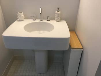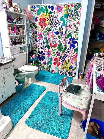 We hope you love our recommendations! While every product is independently chosen by our editors, BuzzFeed and our publishing partners may collect a share of sales or other compensation from the links on this page. You can read more about how our affiliate partnerships work in our Editorial Standards & Ethics Guide. Just because it isn't your most frequented room doesn't mean it should be bland and chaotic. Promising review: "This shower curtain is well made and the design is beautiful! It makes me extremely happy every time I see it and instantly brightens my day!" —EB Get it from Amazon for $15.99+ (available in 14 colors and seven sizes). Promising review: "This shower curtain is such a good find! The linen texture looks high-end and adds a soft, neutral vibe that works with any bathroom style. It’s lightweight but hangs beautifully, and the length is perfect for extra height. I’m honestly shocked at how much it upgraded the whole space for such an affordable price. If you want a simple, chic, easy bathroom refresh — this is it!" —MrsBlandford Get it from Amazon for $16.95+ (available in six sizes and 23 colors). Promising review: "In spite of this rolling cart being on the pricier side, I really appreciate its functionality and aesthetics. My apartment bathroom is on the smaller side and has no built-in storage, aside from an over-the-sink medicine cabinet. I knew I needed a space-saving solution that would keep eyesores out of sight (e.g., cleaning supplies, extra toilet paper), so I finally bit the bullet and purchased this cart. I have no regrets! I love that it fits right next to the toilet and doubles as a side table for things like tissue paper, room sprays, and cellphones. The top of the cart is a solid plank of wood, which is a nice touch, and the handle makes it easy to pull the cart out. The cart's dimensions are perfect for fitting several rolls of extra toilet paper, a toilet scrubber, cleaning products, and any other items you'd like to keep out of sight. Assembly was easy as well. All you need to do is attach the handle and wheels. Overall, I'm really enjoying using this cart in my small living space!" —Solae Studio Get it from Amazon for $165 (available in three colors). Promising review: "I’ve been wanting to try peel-and-stick tiles for a long time, and I’m so glad I found these for our kitchen facelift! They are so easy to apply and look amazing! I love that they are actual-size subway tiles as well! They’ve given our kitchen the last very important piece that it needed!" —April Grill Get a pack of 10 sheets from Amazon for $32.99+ (available in eight colors). This is IP44 waterproof certified, meaning it can withstand splashes of water. DO NOT put this in the water with you (obviously!) or place it somewhere precarious where it can fall into the water or will get wet — but know that it'll be ok if splashed. Hear one TikToker's thoughts on the shower lamp. Promising review: "I bought this kind of as a joke for our shower, but it's the best thing I've purchased so far in 2025! It's easy to use, love the dimmer, and it creates a nice ambiance." —Holla Get it from Amazon for $32.90+ (available in two sizes and six colors). Promising review: "This stuff is a lifesaver. Life is tremendously busy with kids and cleaning the shower is at the bottom of the list. I bought this due to pure frustration and disgust of my shower and it has turned it around in a weekend. You literally spray it and forget it and just with that little effort, I have a clean shower!! Also great for glass doors. It cleaned everything! Love it!" —Amanda Nichols Get it from Amazon for $20.98+ (available in two sizes, two scents, and multipacks). Promising review: "Who knew that the solution to all of my soap bars getting mushy and gross was this small magnet? It’s aesthetic in my bathroom and holds any size soap — it really is an ingenious invention. It adhered very well to my mirror and was easy to install. A true game changer." —Irene Get it from Amazon for $7.95+ (available in two colors). Promising review: "I’m so in love with this bath mat! It absorbs water, so it dries fast, and it's soft to stand on. I love this cute design! Cheery for my bathroom! Makes me smile!" —Drhonda fitzroy Get it from Amazon for $19.99+ (available in two styles). Promising review: "I actually saw this type of bath mat on TikTok and decided to look them up. I ordered the gray one and was extremely impressed with it. I’ve already recommended it to coworkers. It’s very absorbent and quickly dries up the water after a shower." —DirectorPrime Get it from Amazon for $29.69+ (available in three colors and a two-pack). Promising review: "These are such great quality! I’ve had others that ended up sagging in the middle, leaving me concerned my fragrances were in danger of breaking. My daughter had purchased these long before I purchased mine, and hers have held up beautifully. Although these were more expensive, you get what you pay for! I highly recommend these over other cheaper-made models for peace of mind that your fragrances will be safe!" —Tammy Caudell Get it from Amazon for $9.98+ (available in two sizes, two colors, and packs of one or two). It features a built-in timer that heats your towels for 15, 30, 45, or 60 minutes before automatically shutting off. Promising review: "Absolutely love this! My husband and I use it every day to have fresh hot towels when getting out of the shower. We also use it on blankets before bed if it’s really cold. 100% recommend getting this!!!" —Stephanie And this has SEVEN suction cups to keep it in place! Promising review: "This is one of the best things I’ve ever bought! If you love to soak in a hot bath and be completely comfortable, this is a must-have. It stays in place, is totally supportive of your back and shoulders, and doesn’t slide around. The best part, too, is no soggy towels to deal with after your bath. I highly recommen