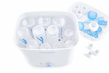 We hope you love our recommendations! While every product is independently chosen by our editors, BuzzFeed and our publishing partners may collect a share of sales or other compensation from the links on this page. You can read more about how our affiliate partnerships work in our Editorial Standards & Ethics Guide. For a short time, these will be some of the most important, helpful, and must-have daily-use items in your and your little one's lives. Promising review: "I say this is a baby essential, but it’s really an all-age essential. You can use it to treat and prevent diaper rash, use it for small scratches the way you would use Neosporin, or use it for dry or irritated skin. I also use it to groom my brows and set them in place, along with using it as a lip balm. I would definitely invest in the big tub!" —Chai Usage: For as long as a child is still sleeping in their crib or until they get their first "big kid" bed. Promising review: "I had tried to convince myself I didn't need this mattress and even purchased a different one when we set up the nursery since our baby would be in a bassinet in our room initially anyway. We ended up switching our baby to his crib around five months, and inevitably, every night he'd end up flipping over onto his belly and burying his face in the mattress. I found myself unable to sleep and instead just watched his vitals on the Owlet to make sure he was still able to breathe. After two nights, I took the plunge and ordered the Newton, and am so glad I did! You can absolutely breathe right through it with ease, so I feel so much better about having our little guy sleep on his stomach with his face buried in it. I haven't had to clean it yet, but I love the fact that the whole thing is easily washable because it's only a matter of time! He also is sleeping great on it — usually 10–12 hours! Definitely worth it, in my opinion, especially if you have a stomach sleeper!" —Dana Get it from Amazon for $299.99 (available in three colors). This was the third (maybe fourth) white noise machine I purchased for my baby/toddler's room, and it's still getting the job done after nearly a year. There's a lot of city traffic and a very busy intersection outside our apartment windows, and the Douni masks all of it (except for the occasional blaring ambulance siren). The wood grain is a nice change of pace from all the other white, black, metallic gadgets populating our home. Super powerful sound too! Promising review: "I would recommend this to anyone who wants a sound machine for themselves or their kids. I may make it a baby shower gift in the future. The only bad part is that I may have to buy two more for myself and my new baby on the way. I’m glad I found one I love." —Deb W Get it from Amazon for $30.87+ (available in two colors) Promising review: "It's cute! It protects the baby from the faucet, even the lift thing for the shower, too! Love, love, love the fins that adjust and tighten! It keeps the cover from sliding around." —A Usage: You'll use this every single day for baby/toddler until they're no longer drinking from bottles. That's at least one year and change, maybe even two. But keep it to sterilize other things too! Bottle cleaning is the KP duty on your tour of babyhood (don't forget that you enlisted). A splash of water, a turn of the crank, and in around 30 minutes, all of those rancid-smelling baby bottles are sterile and dry. Our Papablic gets a workout multiple times a day, which is why this is a more economical and environmentally friendly option than constantly running the dishwasher (especially if the dishwasher is you and not an actual appliance). The first time I traveled without it, I realized how much easier (and better smelling) it made our lives. Cleans easily with a bit of vinegar mixed with water. Promising review: "I use this almost exclusively on my 5-month-old and have since she was a newborn. I LOVE it. It’s so much easier than using clippers, and it does come with clippers if you ever need them. It’s so gentle that it doesn’t hurt them if you accidentally slip, but it does work to file the nails down! When she was a newborn, I used it when she fell asleep on me after feeding (much easier when she’s asleep), and now that she only sleeps in her crib, I use it while distracting her with Baby Einstein. I definitely recommend this product!" —Kathryn Get it from Amazon for $9.49+ (available in six colors). I'm here to tell you that the Diaper Genie has been a part of our babies' lives since their first diaper changes at home. It's not perfect, but it is close. Once that diaper is slam-dunked in there, I only have to change the bag about once a day. Yes, you will get hit with the smell when you open it, but just don't get too close. Otherwise, all odors are contained when the lid is closed. Promising review: "I have used these before and love that they keep everything clean and not smelly. I personally have put an additional air freshener on the inner lid to keep it extra fresh. This is also a really good gift for a new mom." —Rebekah Promising review: "I bought these for my Diaper Genie. I’m a first-time mom, and I was gifted a Diaper Genie, but I wanted a more affordable refill. Looking to save money anywhere I can. I came across these, and they’re great! They’re really sturdy and do not have a scent to them. At least, I can’t smell anything. This will always be my go-to refills." —Shirley Promising review: "If you are looking for a great baby shower gift, look no further. This kit has been a lifesaver when it comes to my newborn. As far as the product 'Windi' is concerned, I thought I would never use this. Now I think the fart straw is the handiest product on the market with my colicky, gassy baby. The head-scrubber gently exfoliates. The snot-sucker is way nicer than a bulb syringe. I have used every product in the kit, and my son is still only 6-weeks-old." —SP Promising review: "Like many have