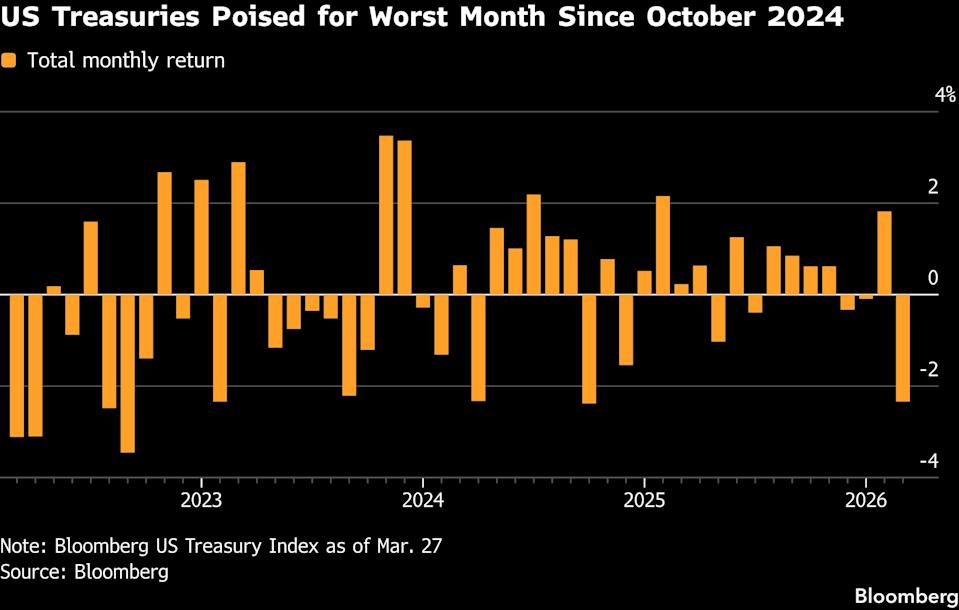 (Bloomberg) — Some of Wall Street’s biggest bond-fund managers say financial markets are underestimating the risk that the US war in Iran will cause a sharp slowdown in an already sputtering economy. As oil pushes over $110 a barrel and the conflict shows little signs of ending, traders have largely focused on the inflation shock. That has sent the US Treasury market toward the deepest monthly loss since October 2024 as investors brace for the possibility that the Federal Reserve will push interest rates higher before the year is out. But at companies including Pacific Investment Management Co., JPMorgan Chase & Co (JPM). and Columbia Threadneedle (GQCC.SG) Investments money managers are preparing instead for an economic hit that will eventually trigger a bond-market rebound and cause yields to come sliding back down. “Every day that this conflict persists brings us closer to the market being forced to consider the more negative implications for growth, which should ultimately push Treasury yields lower,” said Kelsey Berro, a fixed-income portfolio manager at JPMorgan Asset Management. “Yields broadly have risen enough to be attractive.” Economists have started to dial back their growth forecasts and nudge up the odds of a recession as higher energy prices, rising borrowing costs and the stock-market slump start to squeeze businesses and consumers. Goldman Sachs Group Inc. said the probability of a downturn over the next 12 months has risen to about 30%, while Pimco sees a more than one-third chance. Such pessimism is typically positive for bonds because it increases the likelihood that the Fed will reduce rates to stimulate the economy. But that hasn’t been the case this time because traders expect the energy-price spike to tie the hands of a central bank that has already been contending with inflation that’s stubbornly above its target. The result has been a fierce selloff that’s sent bond yields surging. Rates on two- and five-year Treasuries have jumped by more than half a percentage point since the US bombing started late last month. Thirty-year yields have climbed to the cusp of 5%, not far below the peak in 2023, after the Fed had pushed rates to a more than two-decade high. Much of that reflects anticipation that elevated energy prices will drive up the cost of all kinds of goods, with the OECD warning last week that US consumer prices could jump by 4.2% this year. That, in turn, is making investors demand higher payouts to keep their returns from being eroded by inflation. Yet some long-time bond investors say the selloff has created an opportunity to lock in elevated yields as the inflation worries overshadow the threat to growth. “What tends to begin as an inflation shock can quickly migrate into a growth shock,” said Daniel Ivascyn, the chief investment officer of Pimco, which has over $2 trillion of assets. “And we are on the cusp of seeing a significant weakening in the economy.” The economic risks were already building up before the war. The job market has continued to slow since President Donald Trump returned to the White House and upended global trade with his tariffs. Employers cut 92,000 jobs in February and the March figures — due to be released Friday — are expected to show only a partial rebound, with payrolls expanding by 60,000. And markets have been rattled by concerns about artificial-intelligence and pockets of stress in the private-credit industry. Now, markets are hanging on a four-week-old war that’s effectively shut down oil shipments through the Strait of Hormuz. That is already being passed along to consumers, with the price of gasoline hitting the highest since the post-pandemic inflation surge. At BlackRock Inc. (BLK), Rick Rieder, who oversees more than $2 trillion as the head of fixed-income investments, said he thinks the Fed should still cut rates to soften the impact. He said he’s prepared to step up buying of shorter-term debt when the outlook starts to become more clear. “We’ll see what happens over the next couple of weeks — and then I want to jump in and buy some stuff,” he said during an interview on Bloomberg Television. By Friday, the futures market indicated that traders are ruling out any rate cuts from the Fed in 2026, anticipating it will likely remain on hold. The market was pricing in a roughly one-third chance of a quarter-point hike later in the year. As 30-year yields drifted higher, Ed Al-Hussainy, portfolio manager at Columbia Threadneedle, said he started buying more long-dated bonds. He anticipates that those yields will ultimately come down if the Fed adds another drag to the economy by pushing up short-term rates. “The more the Fed leans into tightening policy, the more damage the long end of the curve has to price to aggregate demand and inflation premia,” he said. More stories like this are available on bloomberg.com ©2026 Bloomberg L.P.