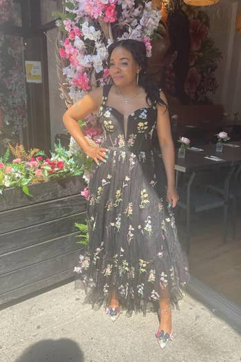 We hope you love our recommendations! While every product is independently chosen by our editors, BuzzFeed and our publishing partners may collect a share of sales or other compensation from the links on this page. You can read more about how our affiliate partnerships work in our Editorial Standards & Ethics Guide. We agree that all eyes should be on the happy couple... but boy will it be hard when you walk in dressed this good. If you've got a fridge full of wedding invites, I have no doubt that you're already thinking, "What the heck am I going to wear?". From garden party attire to black tie, we've rounded up the most gorgeous long flowing gowns, mini statement dresses, (of course) everyone's favorite Reformation dress, and every worthy floral and ruffled dress in between. Cheers to the bride, the groom, and to you having the best wedding guest looks around. Unless otherwise specified, all sizes in this post are listed in women’s. Promising reviews: "I ordered this last minute for a formal event, and let me tell you, I was pleasantly surprised! It runs true to size and [fits] you in all the right places... a MUST-BUY!" —Ryan "My new FAVORITE wedding guest dress. This dress was soooo perfect for our friend's summer wedding...The material is so thick and beautiful. I received sooo many compliments in this dress." —Amazon Customer Get it from Amazon for $41.99+ (available in sizes XS–XL and in 23 colors). Promising review: "This was the perfect wedding guest dress. It is so stretchy and comfortable but still formal for an event." —Jessica Fee Get it from Amazon for $9.99+ (available in sizes XS–XL and in 20 colors). Promising review: "LOVE this dress. Wore this to my sister’s wedding in the Dominican Republic. I received many compliments, and I didn’t feel squished... it was perfect with heels, a little long without. I had room to dance, it felt airy, I loved how it fit. Really happy with this one!" —Kathryn Tamondong Get it from Amazon for $69.99 (available in sizes 2–26 and in 25 colors). Promising review: "Stunning! I am short and a bit curvy, so usually shapeless column silk dresses like this are... too tight,... too loose, or look like a tent on me. But this dress is magic! It has just enough room to skim the body without being too loose or too tight. Super comfortable, and I got so many compliments. And it came in petite length so no hem required! Love love love it." —AngelaRegina Get it from Anthropologie for $168+ (available in sizes XXS–3XL, in standard, petite, and plus fits, and in three colors — not all sizes available in all colors). Promising reviews: "A classy vintage feel with the niceties of being modern. This dress fit exactly as described [and] it has just the right amount of stretch... I've really dressed this up (I wore it to a wedding), and then it's great for a more casual setting, too. I've gotten so many compliments...but the main thing was how I felt like 'A Lady' wearing it! It's a real confidence booster!" —Gr8ful Nurse "A must-buy! I purchased two of these dresses (one for my daughter and one for myself) to wear to a wedding. We received so many compliments. We will be ordering this dress in more colors. It’s beautiful and comfortable!" —Slau Get it from Amazon for $39.99 (available in sizes S–XXL, 13 colors, and in straight pencil or fishtail styles). Get it from Boohoo for $39.20 (originally $98; available in sizes 12–16 and 20–24). Promising review: "Just get it, perfect for a summer wedding! I was a little hesitant at first because of the shoulder flower, but honestly, this dress was beautiful... It fit beautifully, and the biggest perks were: 1) didn’t show a lot of wrinkles because of the fabric and print, 2) didn’t have me looking like a sweaty mess despite the very hot weather, 3) has some stretch and is very lightweight (but not see-through!). Be mindful the slit is high, I wore bike shorts under." —Kailey McEvilly Get it from Amazon for $59.99+ (available in sizes 6–18 and 15 colors). Get it from Reformation for $298 (available in straight sizes 0–12 and in seven colors/patterns, and in plus sizes 14–24, in three colors/patterns). Promising review: "I don’t ever write reviews, but had to because this dress is literally EVERYTHING!! It’s so pretty, and the fabric is high-quality. I just wish for more occasions to wear it!!" —Norah Barnes Get it from Amazon for $64.99 (available in sizes 0–28 Plus and in 13 colors). Promising reviews: "This dress is perfect! It fits my body well. The draping and ruching [is great]... I got so many compliments. Honey, the color — rich! Very saturated." —Sheila D. "I absolutely love this dress. My son got married in October, and it was perfect for the day. The blue is stunning, and the material is beautiful. It surpassed my expectations, and I will be buying another color!" —Bdale Get it from Eloquii for $99 (originally $189.95; available in sizes 14–32 and in three colors). Promising review: "I was worried about ordering this dress because some of the reviews stated that the sizing is weird. I'm 5'4" and around 112 lbs, so I ordered an XS, and it's PERFECT! I wore it to my brother's wedding and got so many compliments. The straps being adjustable helped to make it a perfect fit. This is my new go-to dress for weddings and other events. For those asking about what bra to wear, I just wore silicone petal covers, and they worked great with the dress." —Kelsey Get it from Amazon for $19.99+ (available in sizes XS–XXL and in nine colors). Promising reviews: "Gorgeous wedding guest dress! Form-fitting...with quality material. Not see-through except for the sleeves. I love this color and the detail. Highly recommend! Gorgeous dress! I love the gold. It's elegant looking but also very comfortable, quality material, and a value for the price." —Jaime "LOVE. This dress is gorgeous. It is extremely comfortable and well-fitting. I wore this to a wedding and g