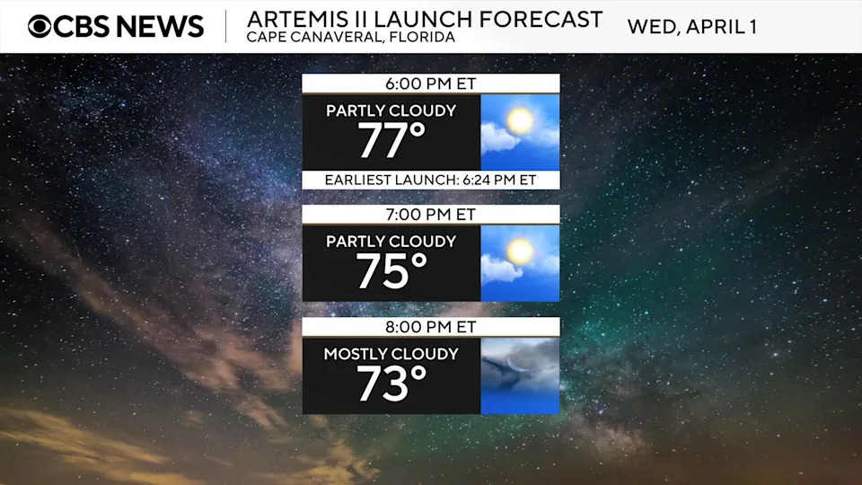 The 49-hour, 40-minute countdown is set to begin at 4:44 p.m. ET Monday. If all goes well, the clock will hit zero at 6:24 p.m. Wednesday, when the crew hopes to blast off in an Orion crew ship atop a 322-foot-tall Space Launch System rocket — both making their first flight with astronauts on board.