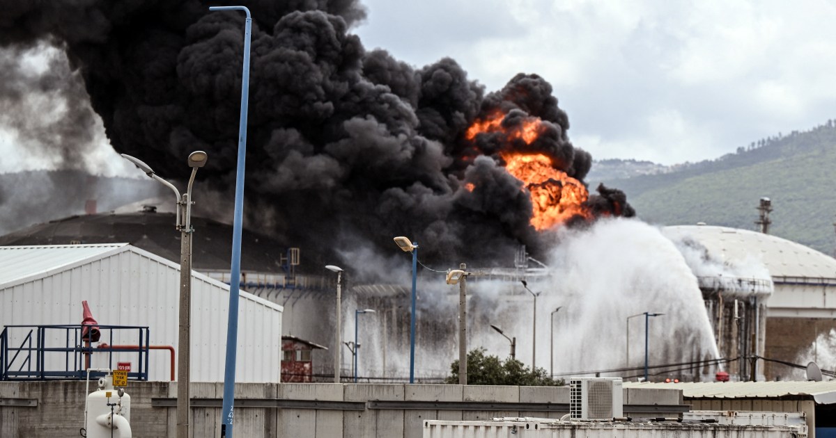 Attack marks second time Oil Refineries facility in northern Israel targeted during US-Israeli war on Iran. Save Share An oil refinery in northern Israel has been struck in a missile barrage from Iran and Lebanon, Israeli media report, in the second attack on the facility since the United States-Israeli war on Iran began last month. Israeli media reported Oil Refineries, also known as the Bazan oil refinery, in Haifa was struck on Monday. A fire broke out at the facility and large plumes of black smoke could be seen over the area. It was not immediately clear if the blaze was caused by a direct hit or falling debris. It also was not clear whether the missile was fired from Iran or Lebanon. “The incident has been fully contained. There are no casualties, no hazardous materials risks and no danger to the public,” Eitan Rifa, a fire commander, said. Bazan Group, the company that runs the refinery, also said no casualties were reported in what it described as a missile attack on the roof of a distillates tank. Iran and its allies, including the Lebanese group Hezbollah, have carried out missile and drone attacks across the Middle East against what they said are United States and Israeli targets. The strikes come as the US-Israeli war on Iran has continued into a fifth week with no sign of abating despite growing international concern and diplomatic efforts to reach a deal to end the conflict. The Iranian attacks have increasingly targeted energy facilities across the region while Hezbollah has launched missiles into northern Israel and confronted Israeli troops invading southern Lebanon. Hezbollah on Monday said its forces had targeted an Israeli naval base in Haifa with a “barrage of advanced missiles”. In addition to its attacks on Iran, the Israeli army has launched strikes across Lebanon and expanded its ground invasion of the country. The intensified Israeli assault on Lebanon began on March 2 after Hezbollah launched rockets towards Israeli territory in response to the US-Israeli assassination of Iranian Supreme Leader Ali Khamenei at the start of the war on February 28. In addition to air strikes, the Israeli military has pushed deeper into Lebanese territory as part of a ground invasion that Israel said aims to root out Hezbollah fighters. Israel also has issued mass forced displacement orders across southern Lebanon and parts of the capital, Beirut, forcing more than 1.2 million people from their homes. On Monday, Lebanon’s National News Agency said Israeli jets struck the town of Barashit in the Bint Jbeil district of southern Lebanon, killing one person and wounding another. Separately, an Israeli attack on a military checkpoint in the south of the country killed a soldier and wounded others, the Lebanese army said in a statement. Security affairs analyst Ali Rizk warned that Lebanon could become a deeper front in the war as Israeli leaders, such as Prime Minister Benjamin Netanyahu, have promised to expand the ground invasion. “We can anticipate that [Netanyahu is] going to go to great lengths against Lebanon, including, quite likely, with a large-scale ground [offensive],” Rizk told Al Jazeera. “And I think that unfortunately it’s quite likely that the Americans are on board or do not stand against the Israeli escalation in the Lebanese arena.” More than 1,200 people have been killed in Israeli attacks across Lebanon since the escalation began early this month, according to the Lebanese Ministry of Public Health.