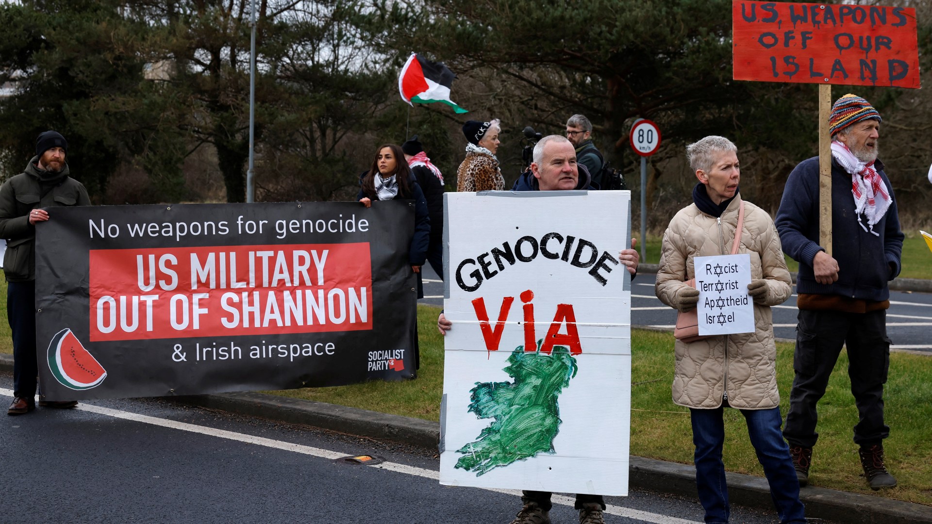 Since the Iraq War, Shannon Airport has served as a key transit hub for the US military. It is now under scrutiny again. Save Share In November, three activists from Palestine Action Eire crashed a modified van through a barrier at Shannon Airport, drove onto the runway towards a United States military aircraft and sprayed green paint on a parked Boeing 737-700. The action was in protest against what they saw as Ireland’s complicity in Israel’s genocide against Palestinians in Gaza through the US military’s continued use of Shannon Airport. At the time, Israel’s onslaught had killed more than 69,000 Palestinians. According to data collected by the military plane tracker Shannonwarport, at least 1,300 US military and military-contracted civilian aircraft have flown within 60km (37 miles) of Shannon Airport since January 2024, including at least 45 flights that travelled to or from Israel. “I took part in the action out of a general frustration with the Irish establishment and society,” activist Conan Kavanagh told Al Jazeera. After spending two days in Limerick Prison on remand, he paid 10,000 euros ($11,500) in bail money. The three activists awaiting trial have been charged with criminal damage and interfering with the “operation, management or safety of an airport”. “For a country that prides itself on a shared history of colonialism and resistance, I think we’re incredibly limited in how we express support for the Palestinian people,” Kavanagh said. “A lot of Palestinian activism in Ireland is centred around marches, speeches and rallies, which while good needs to be escalated upon with more actively disruptive protests if we hope to actually force the hands of the state.” Aine Ni Threinir, another of the activists, believes protesting against the US military’s use of the airport in western Ireland “should be something that we all mobilise strongly around”. “That hasn’t happened,” she told Al Jazeera. “But there are people, myself included and the 11 others in the past two years who have done actions at Shannon, who are now being criminalised and dragged through the courts by the Irish state. So we [Irish people] absolutely could do more, but it has come at a price for those of us who have taken these actions.” Ireland’s support for Palestine has historic roots. Among its recent actions are recognising the state of Palestine in May 2024, supporting South Africa in its genocide case against Israel before the International Court of Justice, and welcoming dozens of students and medical evacuees from Gaza. But critics argued that there are still some areas where it could enact meaningful policy to limit Israeli aggressions – such as the use of its airspace. Protesters hold regular demonstrations at Shannon Airport to call on the Irish government to inspect US military and military-contracted planes for weapons destined for Israel. In a United Nations report published in October, Francesca Albanese, the UN special rapporteur on occupied Palestinian territory, listed Ireland among the countries that permitted weapons transfers through ports and airports, indicating “an intent to facilitate Israeli crimes”. In an interview with the Irish broadcaster RTE, she urged Ireland to stop the transit of weapons. In 2024, the Department of Transport approved 1,354 applications for civil aircraft or Irish-registered aircraft to carry military weapons or ammunition through Ireland, representing a 14 percent increase over 2023, The Irish Times reported in April. Only two applications were refused in 2024. During an interview in April with the Irish radio station Newstalk, Alice Mary Higgins, a member of the Irish Seanad, or Senate, said: “While the full records of all the flights are not available, it is known that the largest number of exemptions have been sought by Germany and the United States.” Data gathered by Shannonwatch, which tracks US military stopovers, confirm that most aircraft passing through are US military and military-contracted with flights by Germany’s Luftwaffe also appearing in its logs. Officials maintained that they do not routinely inspect foreign military aircraft landing at the airport and no exemptions have been granted for civilian aircraft to carry munitions bound for Israel. After the US and Israel attacked Iran, Irish Prime Minister Micheal Martin said Shannon was not being used to assist that war. However, he said while there was not “strong evidence” that US military weapons were being transported, it was difficult to “intervene” or “investigate” if there were any “transgressions” of rules. Shannon Airport has been a key US military refuelling and transit point in Europe for more than two decades. During the Iraq War, more than two million US soldiers passed through the airport in western Ireland, fuelling controversy and allegations that the site facilitated the transport of weapons and detainees, John O’Brennan, director of Maynooth University’s Centre for European and Eurasian Studies, told Al Jazeera. While most European Union countries facilitate weapon transfers for allies through NATO or EU security frameworks, Ireland’s official policy is to not allow the transit of weapons through its airspace to maintain its traditional military neutrality. Under Irish law, all civil aircraft carrying weapons or ammunition must apply for exemptions from the Department of Transport before landing at Irish airports or travelling through Irish airspace. Irish-registered aircraft carrying munitions anywhere in the world must also seek permission. Foreign military aircraft are only authorised to land or fly through Ireland by the Department of Foreign Affairs on the condition they are not carrying weapons. While Irish authorities said no prisoners during the Iraq War were transported through the airport, human rights groups such as Amnesty International Ireland said the country’s failure to actively inspe