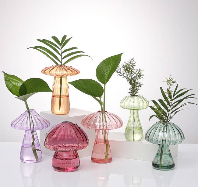 Promising review: "I originally bought these as bud vases for my daughter’s garden tea grad party, and they were so precious! I loved them so much, I decided to use them to dress up the window in my home office. They add a perfect little pop of color! They arrived packaged well, in mint condition, and on time. They are very thin and lightweight, so they should be handled and stored carefully." —Just Jess!
