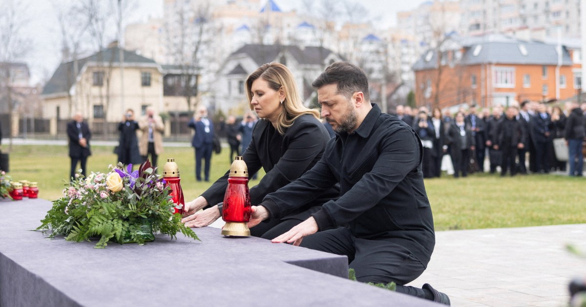Ukraine’s president hosts EU leaders to mark Bucha massacre anniversary, says negotiator Umerov in Turkiye for talks. Save Share Ukrainian President Volodymyr Zelenskyy has said he will ask US mediators to relay his offer of an Easter truce to Russia, halting attacks on the country’s energy facilities, amid an ongoing deadlock in peace talks. Speaking on Tuesday on the sidelines of an event to mark the fourth anniversary of Ukraine’s Bucha massacre, Zelenskyy said he would “definitely convey this proposal” to the United States in online talks with US envoys Steve Witkoff and Jared Kushner scheduled for Wednesday. “I will definitely ask them to pass it on to the Russian side,” he said before the meeting, in which the status of stalled US-brokered peace talks with Russia will be discussed. “We are ready for a ceasefire for the Easter holidays … We are ready for any compromises, except compromises involving our dignity and sovereignty.” Earlier, Kremlin spokesman Dmitry Peskov had reacted coolly to Zelenskyy’s previous talk of an energy truce. “From Zelenskyy’s statements we’ve read, we haven’t seen any clearly formulated initiatives for an Easter truce,” he said. “We reiterate: Zelenskyy must take responsibility and make the appropriate decision so that we can achieve peace, not a ceasefire,” he added. Zelenskyy’s offer came a day after he said some of his country’s allies had sent Kyiv “signals” about the possibility of scaling back its long-range strikes on Russia’s oil sector as global energy prices surge. Zelenskyy said Ukraine was ready to reciprocate if Russia stopped attacking the Ukrainian energy system. Ukraine had escalated its attacks on Russian energy in an effort to stop Russia benefiting from high oil prices and an easing of sanctions in the wake of the US-Israel war on Iran. European diplomats visited Kyiv on Tuesday to mark the four-year anniversary of the Bucha massacre and reaffirm their support for Ukraine after Russia-friendly European Union member Hungary blocked a 90-billion-euro ($103bn) loan for the country. Kaja Kallas, the EU’s top diplomat, as well as the foreign ministers of Germany, Poland, Italy and other EU countries participated in the event in the Kyiv suburb, where Russia summarily executed hundreds of civilians in March, 2022. Zelenskyy said at the event that Ukraine security council secretary Rustem Umerov was in Turkiye for talks with several countries, without specifying details. The US, Russia and Ukraine have held three rounds of high-level, trilateral talks in the United Arab Emirates’ Abu Dhabi and Switzerland’s Geneva this year in a bid to negotiate an end to the war. A fourth round of talks due this month was postponed due to the war on Iran, with no progress on the vital question of territory in eastern Ukraine. As the price for peace, Russia is insisting that Ukraine cede the fifth of the eastern area of Donbas that it has been unable to conquer during four years of war, with Zelenskyy refusing to countenance the prospect, which in any case goes against the country’s constitution. The Ukrainian president said later on Tuesday that Russia had told the US it could conquer the remainder of Donbas region in two months as it pressed to wrap up talks before the mid-term elections for the US Congress later this year. Kyiv believes it can keep defending its remaining “fortress belt” of industrial towns and cities in the Donbas for years, citing the glacial pace of Russia’s front-line advances since 2023 as its soldiers run into a defensive wall of Ukrainian drones.