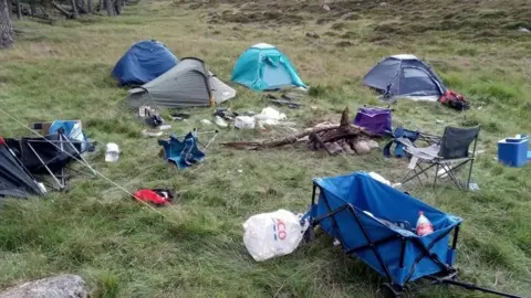 A ban on camp fires and barbecues has been introduced to the UK's largest national park in a bid to reduce the risk of wildfires. Scottish ministers approved the new by-law for the Cairngorms last autumn and it will be in force until 30 September every year. Offenders could be fined ยฃ500. Parts of the national park were badly damaged last summer by what landowners described as the biggest wildfire in Scottish history. The Cairngorms National Park Authority (CNPA), which requested the by-law, said the ban followed an "extensive" public consultation. The national park covers 1,748 sq miles (4,527 sq km) and includes parts of five local authorities - Aberdeenshire, Angus, Highland, Moray and Perth and Kinross. It is home to about 18,000 people and the park has about two million visitors every year. CNPA said it had worked with Police Scotland and the Scottish Fire and Rescue Service (SFRS) to prepare for "robust enforcement" of the by-law. It said leaflets, social media messages and signage would be used to help promote the ban which will also be backed up by the power to issue fixed penalty notices. These fines will be a maximum of ยฃ500 per offence. CNPA said climate change had increased the risk of wildfires happening in Scotland. Convener Sandy Bremner said: "We want people to keep enjoying all that the national park offers but we also need everyone to help protect it. "We know it only takes one rogue spark to start a wildfire and when there is so much to lose, we can't take that risk." Damage caused by camp fires and anti-social behaviour has been a problem in the park for a number of years. In 2020, rangers said revellers had left rubbish, fires and human waste after holding a "disco party" in Glen Doll in Angus. The gathering was among dozens of incidents of irresponsible behaviour Cairngorms park rangers encountered that year. Others included up to 30 campfires being set in one night at Glenmore near Aviemore that had to be extinguished by firefighters. However, rangers said the vast majority of park visitors acted responsibly. Parts of the park in the Highlands and Moray were affected by fires that broke out in late June and early July last year. Scottish Land and Estates (SLE) estimated the fires affected a total area of 29,225 acres (11,827 hectares) - an area almost 30 times bigger than Lanarkshire's Strathclyde Park. The incidents at Dava and Carrbridge resulted in closures of local roads and nearby residents being told to keep windows of homes and businesses closed due to smoke. BBC Weather Watchers reported smoke from the wildfire near Carrbridge in the Highlands drifting for 40 miles (64km) across the Moray Firth. SFRS classifies wildfires as large, uncontrolled outdoor fires exceeding 1,000 sq m of burned area. It says these fires are unplanned, uncontrolled and unpredictable, and occur in areas with combustible vegetation that can fuel rapid spread. Human activity is often to blame with fires started by barbecues, glass bottles magnifying sunlight on dry vegetation and discarded cigarettes. One of the reasons fires continued to burn on moorland was because of its peaty soil which fuels the flames. Area Commander Robert Lennox said: "Wildfires pose a real risk to people, properties and nature. "Each wildfire we respond to can have a significant impact on our resources and these incidents are often in remote locations, which take time to reach." He added: "Extreme weather events are becoming more common across Scotland, and we know that communities in the Cairngorms have felt this acutely in recent years, with floods, drought and wildfires."