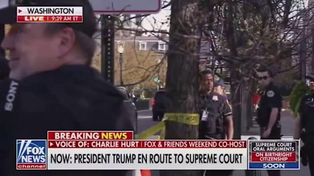 A protester flipped off President Donald Trump on his way into the Supreme Court. The White House pool reporter said one protestor “saluted us with the double bird.” The high court is hearing oral arguments on Wednesday on Trump’s attempt to end the constitutional guarantee to brighright citizenship, and Trump has taken the unprecedented move of attending the oral arguments before the Supreme Court.