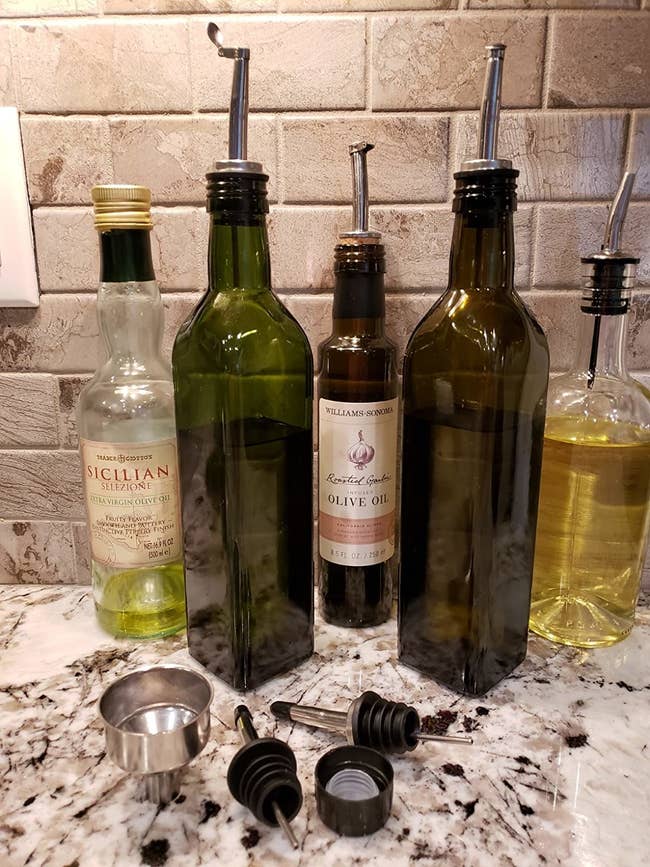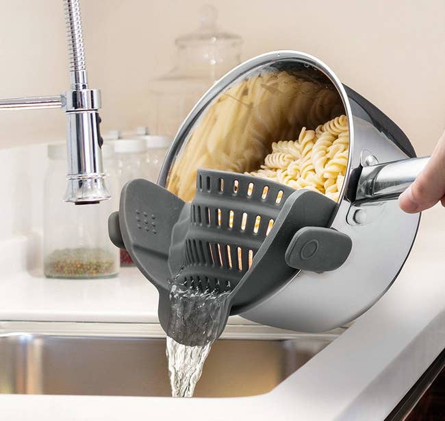 We hope you love our recommendations! While every product is independently chosen by our editors, BuzzFeed and our publishing partners may collect a share of sales or other compensation from the links on this page. You can read more about how our affiliate partnerships work in our Editorial Standards & Ethics Guide. Promising reviews: "I love this cast-iron skillet, and it's very easy to use since it's already pre-seasoned. That means it was very easy to clean as well! I washed it with soap and water, heated it on the stovetop, and added a bit of oil to coat it all over. I didn't have a problem cooking on it, and there's no rusting. I can't wait to collect more!" —Noelle "I don't fry a lot of food, but once every couple of months, I like to make fried chicken breasts. This pan is a game-changer — the chicken fried up more evenly and a lot faster than the old stand-by pan, which was an old Rock pan from Walmart. I do still like non-stick pans for eggs or things that might stick, but I'm using the cast iron more and more. I just have to remember that the handle gets HOT! Great purchase for $20." —Kathy M Get it from Amazon for $12.95+ (available in eight sizes). This set includes one 9-by-13-inch baking sheet, one 10-by-15-inch baking sheet, and one 12-by-16-inch baking sheet. Promising review: “I’ve had these for a few months and they’ve stayed looking brand new, and I use them all day long. They’re thick and solid (they won’t make a loud pop noise like the cheap thin ones do when they reach a high heat). I love the variety of sizes. Amazing quality for a very good price, like all Figmint products.” —L Get it from Target for $22 (available in two colors). Promising review: "I bought it because I need to blend my baby’s food and shakes that I usually have every morning, and it was really annoying having to use the big blender for small things. Honestly I really love this hand blender, I like the quality of the blender. It looks like is made with good materials and the blades work perfectly and they are sharp, I used it to blend chicken and vegetables and the final product was the one that I was expecting. If there is something that I’m not happy with I will just return it but I love this blender. I will update my comment in case something with the blender goes wrong!" —Nathalia Get it from Amazon for $39.99+ (also available in accessory bundles). Promising review: “Most-used tool in my kitchen! This olive oil dispenser has completely transformed my cooking experience. Not only is it a convenient way to store and dispense olive oil, but it also makes me feel like a pro every time I use it. The sleek design and easy-to-use functionality gives it a professional-grade feel, and I find myself channeling my inner Gordon Ramsay as I add the perfect amount of oil to my dishes. "Moreover, the dispenser's precision spout allows for accurate pouring and minimal mess, making it a must-have for any home cook. It has become a staple in my kitchen, and I cannot imagine cooking without it. Overall, I highly recommend this product to anyone who loves to cook and wants to take their kitchen game to the next level.” —IamNazarene Get it from Amazon for $9.99+ (available in three colors and with or without measurements). Promising review: “Used it for my potato soup and it worked perfectly! So much easier than using the back of a spoon for mashing.” —Anna L It's made of flexible silicone and designed to fit most pots and pans. Promising review: "I hate getting the big colander out all the time when I'm just cooking a small pot of pasta or cooking something that needs to be drained. This clips on the side of the pot and definitely stays in place. I was a little skeptical at first but it works very well. You do however need to pull the center part of the strainer out towards you before you tilt the pot over, otherwise things tend to go over the side when you're draining. It's a great purchase for the price, I use mine so many times a week and I bought one for my daughter and she loves it also. Would definitely buy it again." —Denise Chamberlain Get it from Amazon for $13.99+ (available in eight colors). It folds down flat to just an inch and a half. Sierra Base is an Oregon-based Etsy Shop — all of their products are made in the U.S. Promising review: "Wow, this thing really works. I recently bought a Zojirushi bread machine that makes giant mutant loaves. The bread pan easily accommodates the massive bread, both with a width of 5+ inches and a height of 7 inches. Cuts even slices, cleans easily, and folds flat for storage. Looks nice enough to leave out, though. I got a very long knife, Fat Daddio's 14-Inch Cake Slicer / Bread Knife ($15.99 on Amazon) to use with it, which is important. Also great packing and fast shipping. Very pleased. Thank you!" —uptownvelvet Get it from Sierra Base on Etsy for $69.95. Promising review: "Literally the best five dollars I’ve ever spent. As a home baker I bake a ton of breads and desserts. These stand up to a very strong sourdough starter. Can’t recommend enough!" —Morgan Promising review: "I had a toddler I had to cut everything up for, and these scissors have made my life INCREDIBLY easier. I cut PB&J into perfect squares and grapes into three pieces with these scissors. It cuts chicken and other meats simply. They’re sharp, safe, and so affordable too. Don’t look elsewhere; these are the best!" —Adrian Get it from Amazon for $9.99 (available in four styles). Promising review: "These measuring cups and spoons are high quality and look very nice. This set has all the most common measurement sizes. We like the antique gold look in the kitchen, and these will fit right in." —Brandon & Barbara Get them from Amazon for $21.99+ (available in six colors). Promising review: "The bowl is practical and the perfect size for different uses. It looks great as a decorative piece on a coffee table, but also works well on the counte