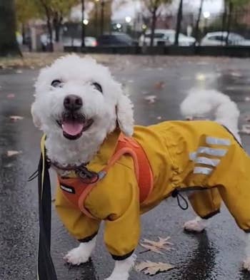 We hope you love our recommendations! While every product is independently chosen by our editors, BuzzFeed and our publishing partners may collect a share of sales or other compensation from the links on this page. You can read more about how our affiliate partnerships work in our Editorial Standards & Ethics Guide. Because if you've ever tried to towel dry a dog after a rainy walk, you know the struggle is REAL. If your dog refuses to even put their paw out the door when it's raining, trust that you're not alone, and honestly, I don't blame 'em. I know all I want to do when it's raining is curl up under a blanket... but as a human, I can also use the toilet when I need to go to the bathroom. Our little furry friends, though, not so much — which means finding the right dog raincoat that allows them to do their business while also keeping them from turning into a soaking wet mess is key. With so many options out there, it can be hard to know what will make for a good dog raincoat for your pup. Do you need a lightweight option or something more hefty to also withstand snow? Would you like them to be covered from head to tail, or would you rather prioritize having it be easy to take off? Are you all about it being functional, or does having some style also hold equal importance? And then large dogs and small dogs each have their own special considerations, too. What would be perfect for your Frenchie, for instance, might not give your golden retriever or lab what they need. It's A LOT to think about. That's why I did all the work for you (you're welcome), and have compiled the best of the best, whether you're concerned about budget, coverage, or style. Now your walks can be less “ugh” and more paws-itively pleasant. This is the one-and-done dog raincoat you've been looking for if you want the works. It’s designed to keep your pup warm and dry — especially if they're not working with a lot of natural insulation (aka fur). But it's also still flexible enough for park sprints or random bouts of the zoomies. And it's basically the queen of adjustability, since you can tighten or loosen the neckline, the back length, and the collar circumference to achieve the perfect fit. Plus, the reflective accents are a huge bonus for dark, dreary days. And can we talk about this chic silhouette? I'm gonna need a matching human one, stat! Promising review: "I'm 100% sold on Hurtta coats for my dogs, and this one is absolutely worth the money for my giants. It's a bit of a challenge to find great dane-sized gear, and most of what's available doesn't protect their necks or chests effectively. This coat has fantastic coverage and maximum adjustability, and durability. Even during the coldest winter months, my dogs are toasty, and I end up removing the coats if we're in a store for very long so that they aren't too warm. We've walked through rain and snowstorms, and my pups stay dry. I bought the coat for my merle dane two years ago from a different site, and it has stood up to all Chicago winter weather and the dog's crazy rough-housing. The only wear came from my boy chewing the buckle and one leg loop, but Hurtta even sells replacement buckles and patches for a great price. I have already recommended this coat to a couple of friends who also have danes or mastiffs, and I highly recommend it for anyone needing something warm and stylish to protect their pet through winter." —Shaina W Get it from Amazon for $58.80+ (available in four colors and in 16 size options that include options specifically for dachshunds and bull-type dogs). If you just need something simple and affordable, you can't go wrong with this reflective jacket that also has an adjustable hood for under $25. It helps keep your pup dry in light rain, fits securely thanks to the adjustable strap, and lets you clip onto their harness easily with the dedicated opening. Plus, the reflective details can give you more peace of mind on those occasional cloudy, late-day walks. It’s easily the best budget pick because it gives you all the essentials without cutting corners where it counts. HDE is a small biz that offers affordable clothing options for dogs and humans. Promising review: "I first bought this raincoat for my American pitbull terrier in June 2023. I got a size large in the cartoon pattern. It lasted this long!! The Velcro held up beautifully, and so did the coat itself. The only reason I recently had to buy another one is that my dog is older and has put on weight. So I noticed the raincoat was getting too small and didn’t look comfy anymore. This raincoat is top quality. We used this raincoat VERY often over the years, many times a day sometimes, especially in the summer, and it held up fine. Even worked great during winter to keep my dog dry walking in snowstorms over her jacket. It also doesn’t look old and worn, either; it still has bright colors and still looks beautiful. Also, it 100% keeps my dog dry even during pouring rain and wind. Absolutely recommend for any breed of dog. It’s 100% waterproof, dries really fast, and I hang it up in my bathroom in the shower. Best affordable dog raincoat on the market that actually does what it’s supposed to do!!! Plus quality materials, you can’t beat that! Lightweight, not stiff, a bit of stretch to it, 10/10 recommend, I have nothing bad to say about it. Even on walks, the Velcro stayed put, even with heavy rains, shaking, all that, no issues whatsoever. Buy it !! 💯💯💯 Happy walks to everyone and every breed, big and small. 🐾❤️🐾❤️🐾❤️🐾❤️🐾" —Ashley Get it from Amazon for $21.99+ (available in sizes XS–XL). It can be so ~ruff~ being a small dog in a big world, and if every rainy walk finds your lil' angel looking like they lost a battle with a puddle, you need this waterproof jacket that was specifically designed with small dogs in mind. It has full leg coverage to help keep their whole body dry, but it's still lightweight and breat