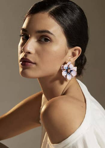 Promising review: "These earrings are just gorgeous — and what a terrific price point! I purchased them in the 'honey' color to coordinate with a necklace that has various shades of cream, coral, and light brown beads. They are just perfect! The hand-painted feature of these earrings allows them to blend with similar colors; they are not monochromatic and thus very versatile. I did not find them to be too big because the petals add depth and variation. Definitely recommended!!" —PrestonsMom