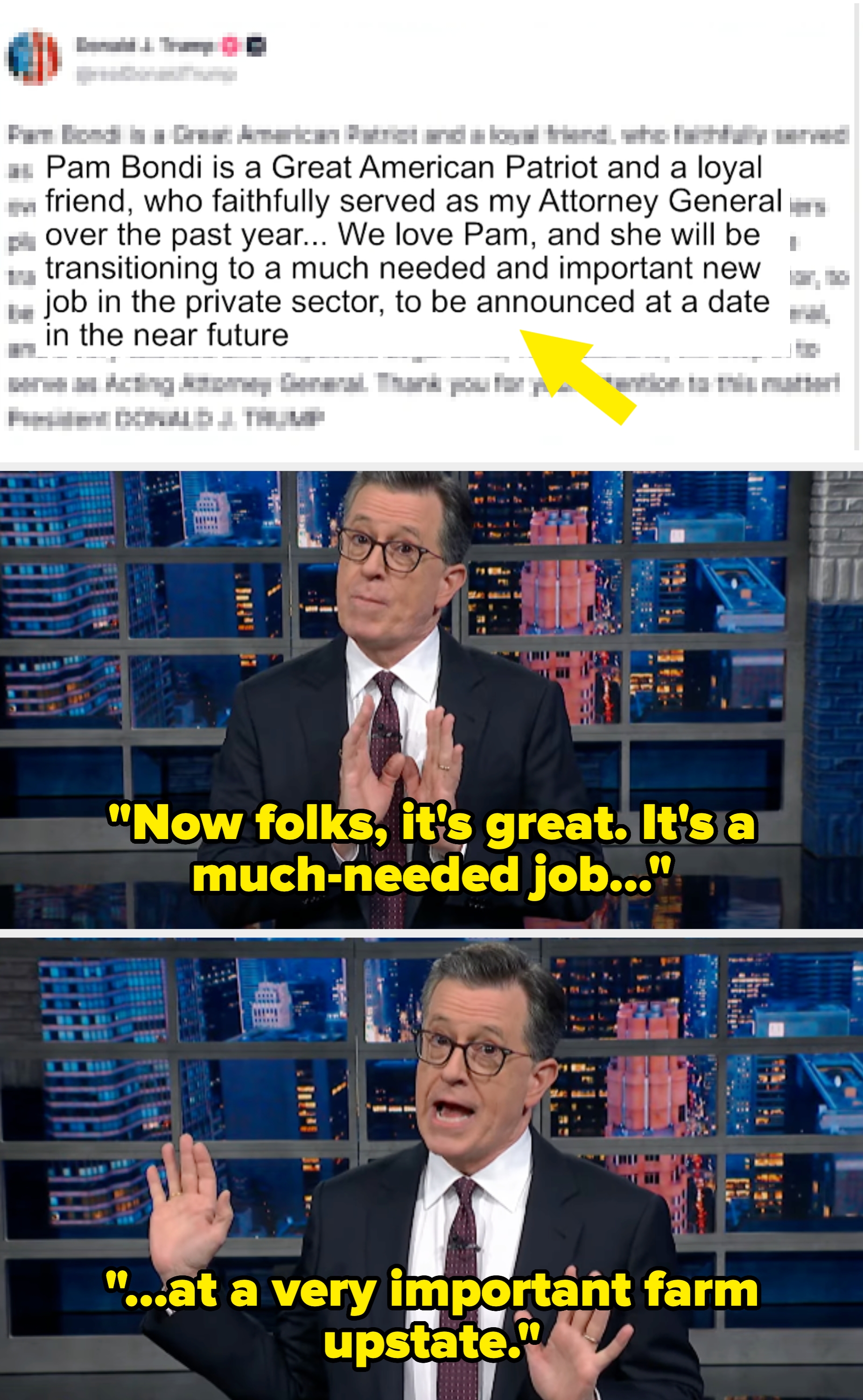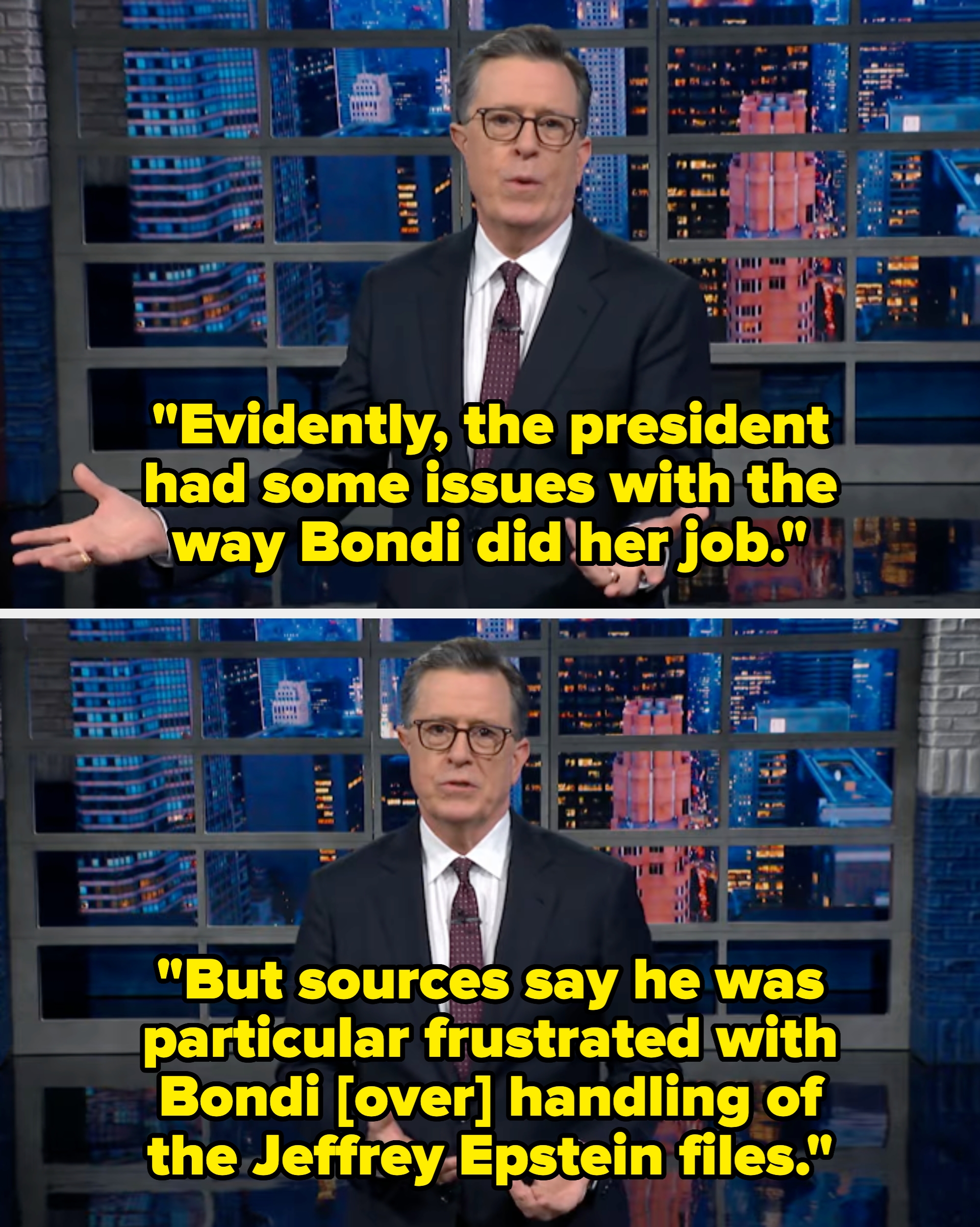 Stephen Colbert Roasted Pam Bondi's Firing, And Everyone's Saying The Same Thing