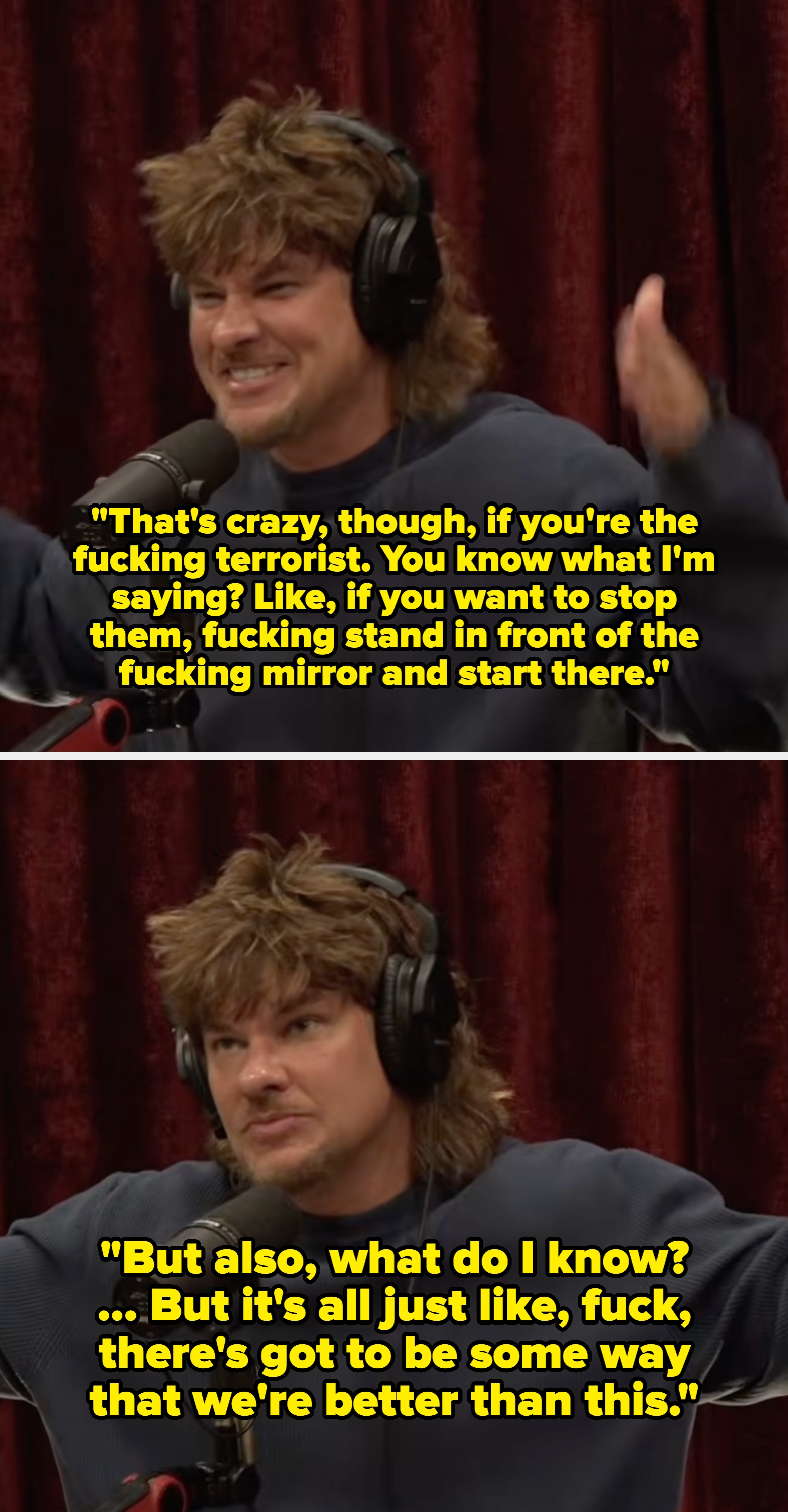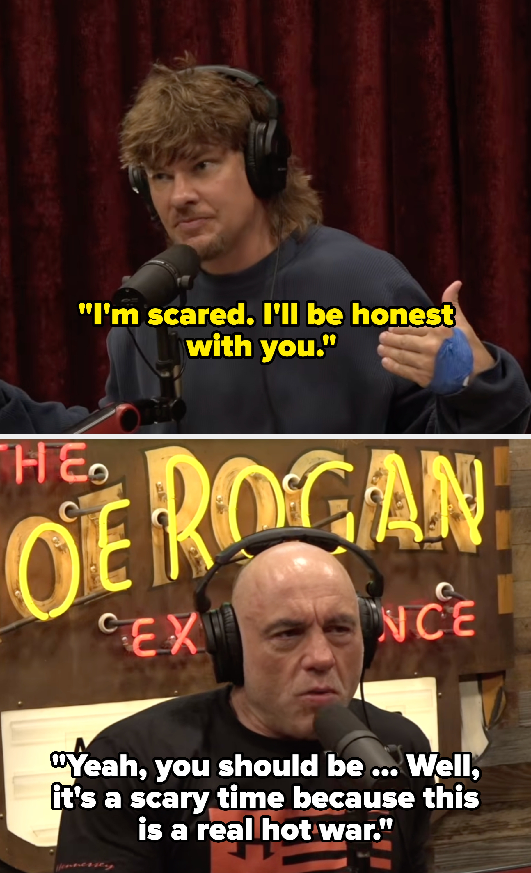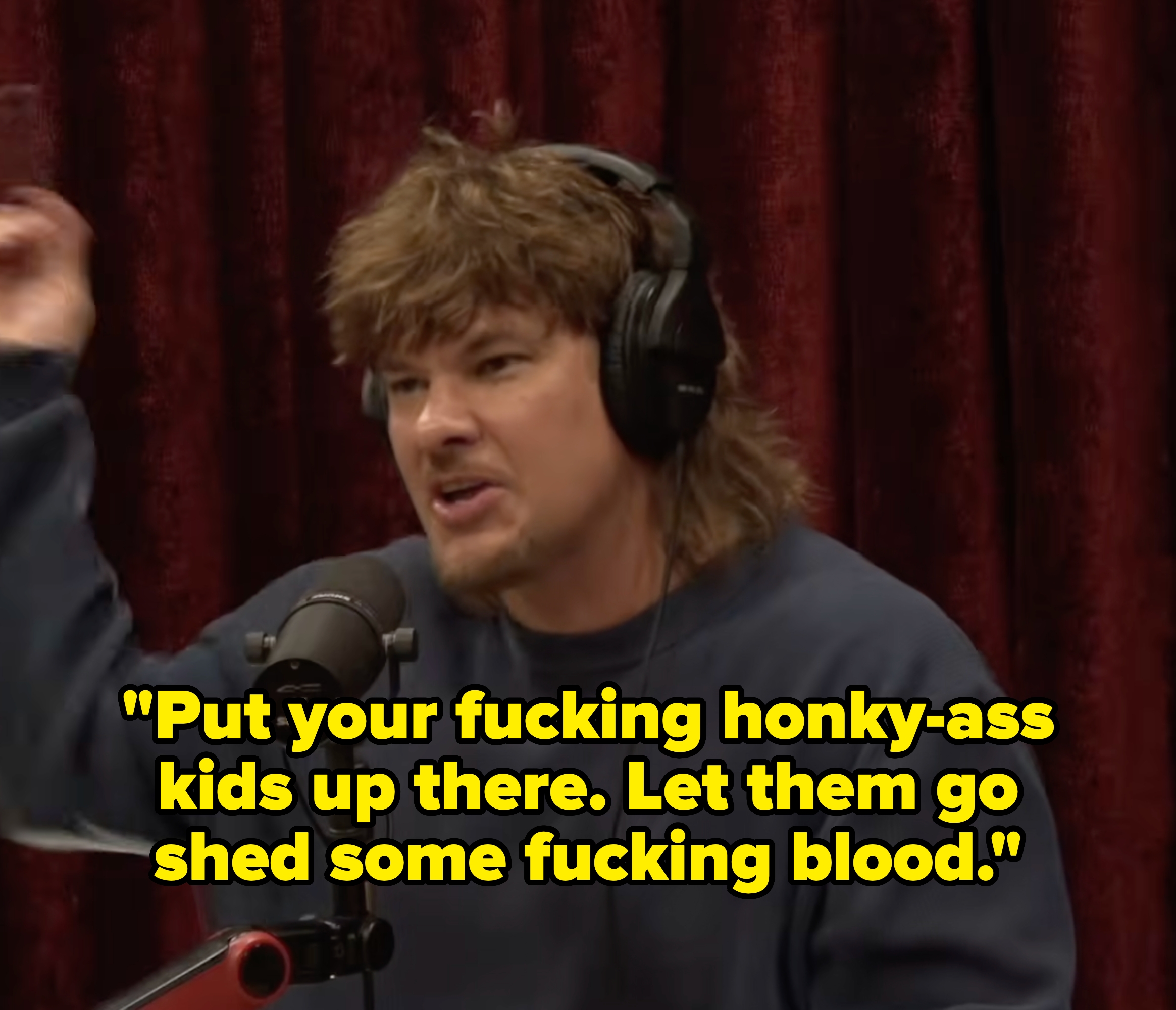 Not the podcast bros having a crisis about the war they kinda helped enable. I'm an LA-based trending news writer covering health, politics, and internet culture. ‘I’M SICK OF RICH PEOPLE NOT PUTTING THEIR F*CKING KIDS OVER IN THESE WARS’ — Theo Von to Joe Rogan‘PUT YOUR F*CKING HONKY ASS KIDS UP THERE. LET THEM GO SHED SOME F*CKING BLOOD’‘Put your f*cking honky little fancy ass f*cking kid up there’ pic.twitter.com/XjxNOCrpKi "If you're that psychotic, you know, and if you were thinking about doing it anyway, you might be able to justify it. People have always done that also to stay in power," he added. "And what about Lebanon now?" Theo asked. "I know. Israel's invaded Lebanon," Rogan replied.