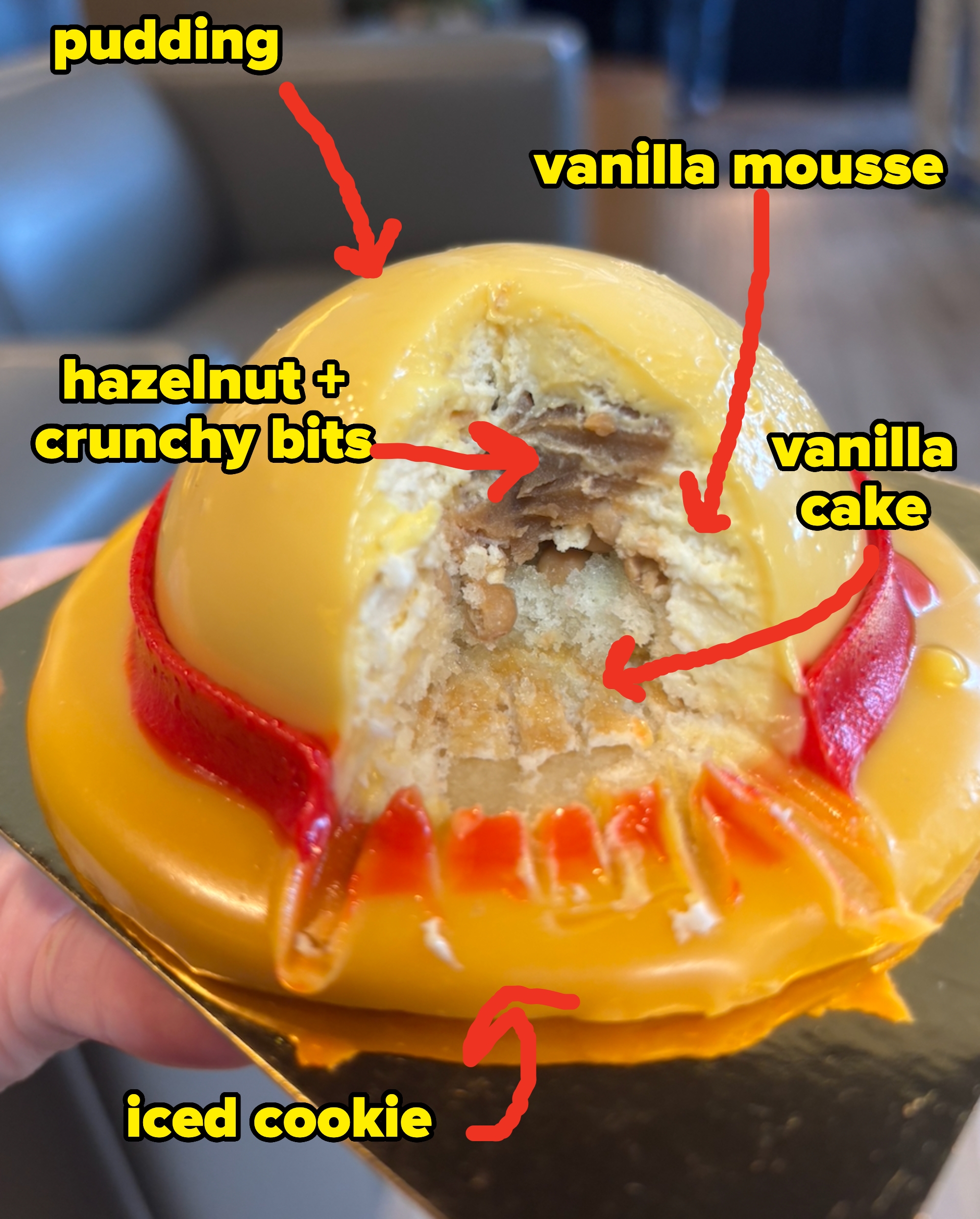 I was today years old when I finally, FINALLY got to try a Scooby Snack IRL. Angelica Martinez is the Latine Editorial Lead at BuzzFeed and covers a little bit of everything, from quizzes and true crime to celebrities and pop culture. If this tickles your fancy, tickets are on sale now! The Scooby Doo cartoons deserve their flowers for several reasons, one of which being that they always made cartoon food look so, so, soooo good. Truly, who amongst us hasn't wanted to try one of Shaggy and Scooby's iconic, seemingly infinitely-layered sandwiches??? In addition to the potato chips, each level also has lettuce and tomato. From what I could tell, here's what each layer was made up of: Bottom: Roast beef, mayo, and (I think?) provolone All in all, I thought this was just OK. It's a bit on the bland side as the only condiment on it is mayo, but I definitely think it'd be refreshing after a long, hot day of walking around the park. Plus, just like Mystery Inc., it seems like an ideal treat to split with your own gang of pals, monsters not included. I couldn't get a big enough bite to eat all three layers at once, but the roast beef was by far my favorite and the most flavorful of the bunch. If you eat it right away, it might be a non-issue, but I do wanna note that by the time I sampled this, the potato chips had gone all soggy from being on top of the veggies, so I missed out on the crunch of it all. Feel like that would've added some interesting texture to an otherwise basic sandwich, TBH! As both a kid who sooo badly wanted to be a Hex Girl and a twenty-something with Scooby Doo 2: Monsters Unleashed in my Letterboxd top four, I am not being dramatic when I say eating a Scooby Snack is, personally, a lifelong dream of mine. They make them look so good!!! First of all, A+ for packaging here. Obsessed. Secondly, I really enjoyed that there were two different kinds of cookies. The paw print ones were slightly sweeter, with a good chocolate-to-cookie ratio that was complementary and not overpowering. The cookie itself is subtly sweet and heavier on the spices, giving the whole thing a Mexican hot chocolate-kinda vibe. The "SD" cookies, which are honey and cinnamon-flavored, reminded me of a cross between a shortbread and a graham cracker. They're on the drier side, but something about the flavor is soooo nostalgic. If you've ever thought, "Wow, I reallllly wonder what that straw hat tastes like!" it's your lucky day, kid. This decadent One Piece-inspired dessert begs the question, What if I made an adorably tiny version of Luffy's hat that was also really yummy? In terms of sweetness, this is pretty middle-of-the-road. It isn't overly sugary and balances the sweeter and more subtle flavors nicely. Despite all the elements to it, the texture of the "hat" (minus the brim) is pretty uniformly silky and blends into an almost butterscotch-like bite, with pops of those crunchy bits here and there. The sugar cookie underneath was softer than I expected, which I really enjoyed, actually. While I couldn't quite get a bite of the hat, brim and all, in one go without committing to getting pudding alllll over my face, I really enjoyed alternating bites of the sweeter, crunchier cookie with all the layers on top of it. All in all, this was an adorably teeny recreation of Luffy's hat, and an enjoyable little sweet treat! Real talk, this was so, soooo tasty. They did not come to play with the One Piece food, y'all! By far, this was the most substantial dish I tried all day. The meatballs had a sweet-and-savory teriyaki flavor and were served on a bed of egg-fried rice. In my opinion, the portion is pretty sizable for one person. The meatballs were also made of chicken, which meant they were filling but not overly heavy (and, honestly, feeling bogged down and on the verge of a food coma is the last thing you want when you've got a full Fan Fest agenda for the day.) Bonus points to this dish as well for being super on theme. Not only is it a dish that actually exists in-universe, but they also did a fantastic job of making it look pretty darn close to the actual thing. And it's a double whammy of being actually tasty and a fun little fan Easter egg? What more can you ask for, really? This almost Brat-green beverage is a green apple and honeydew lemonade, which is topped with a melon ball and these cute lil swords. I tried two other lemonade-based drinks alongside this one (more on these later), and this one is by far the most sweet and the least tart. It's kind of like a liquified green apple Jolly Rancher, really. Full transparency here: I am a honeydew hater. Yeeeuck. OK, sorry. That being said, I wasn't a huge fan of this in part for that reason, though it is admittedly much heavier on the green apple flavoring than the honeydew. The green apple flavor is also very much that of green apple candy and not, like, actual apple. I also found it way too sweet, personally. I enjoy an occasional soda, but I don't often tend to reach for anything that has that distinctly syrupy-sweet taste, like an orange soda. If you feel similarly, you might want to go with a different drink. If that's your vibe, though, you'd really enjoy this! This ruby red refresher is flavored with guava, honey, strawberry, watermelon, and grenadine, with a base of lemonade. It's also topped with strawberry popping boba. OK, hear me out here. Remember those huge, swirly rainbow lollipops (which came in stick-form and circle-form) that they always sold at gift shops or candy shops back in the day? This tastes exactly like those. And while the drink itself is candy-like, the popping boba offers a more subtle sweetness that pairs well and is just plain fun to eat. If you're a fan of Hawaiian punch or a Baja Blast, I think you'll like this. A Harry Potter-spin on an English classic, this trifle is made up of layers of spiced brown sugar cake, a whipped frosting, and crumbly oat bites, then topped with a hippogriff biscuit. Overall, this was so-so f