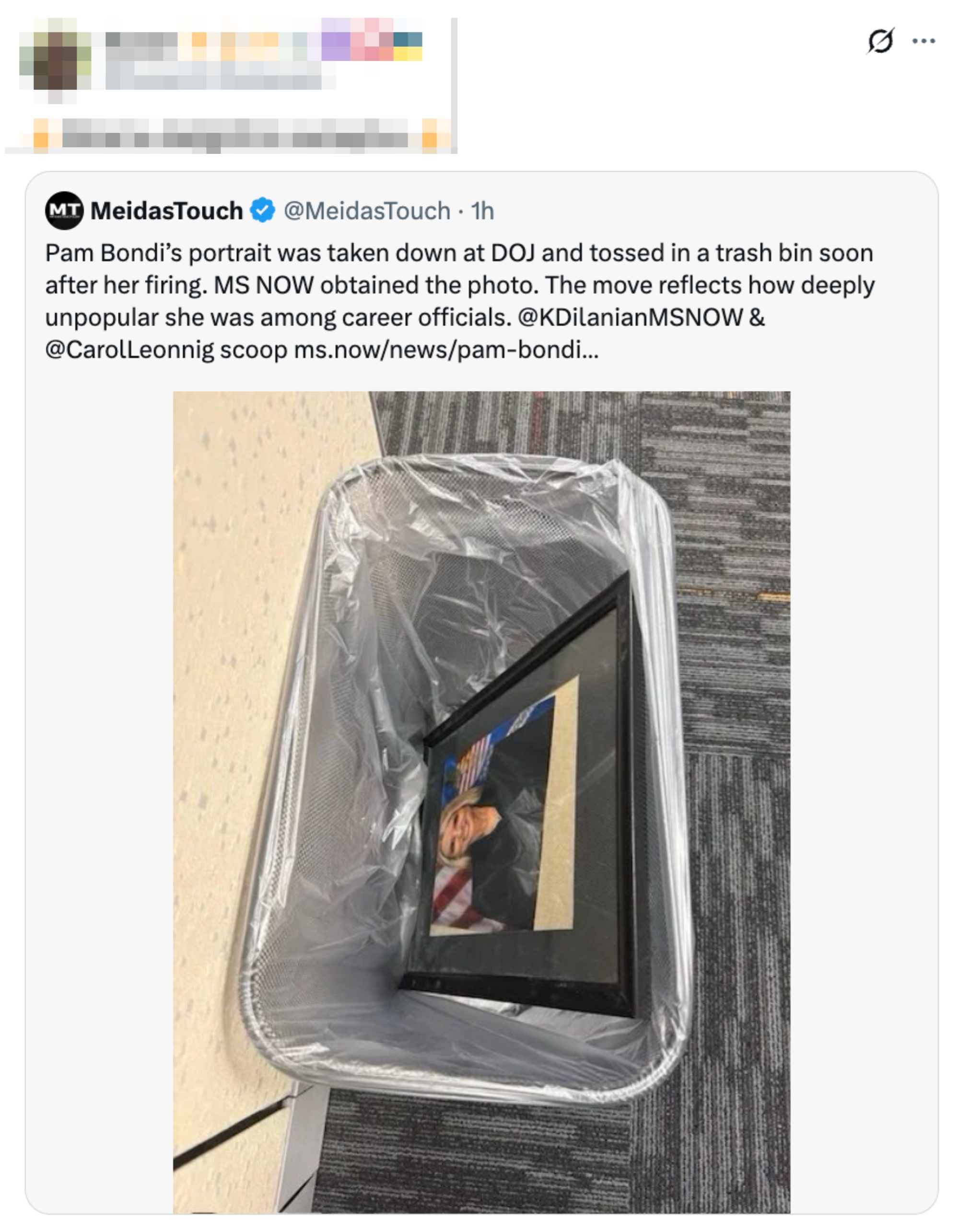 Wait Till You See What Happened To Pam Bondi's Portrait After The Justice Department Fired Her