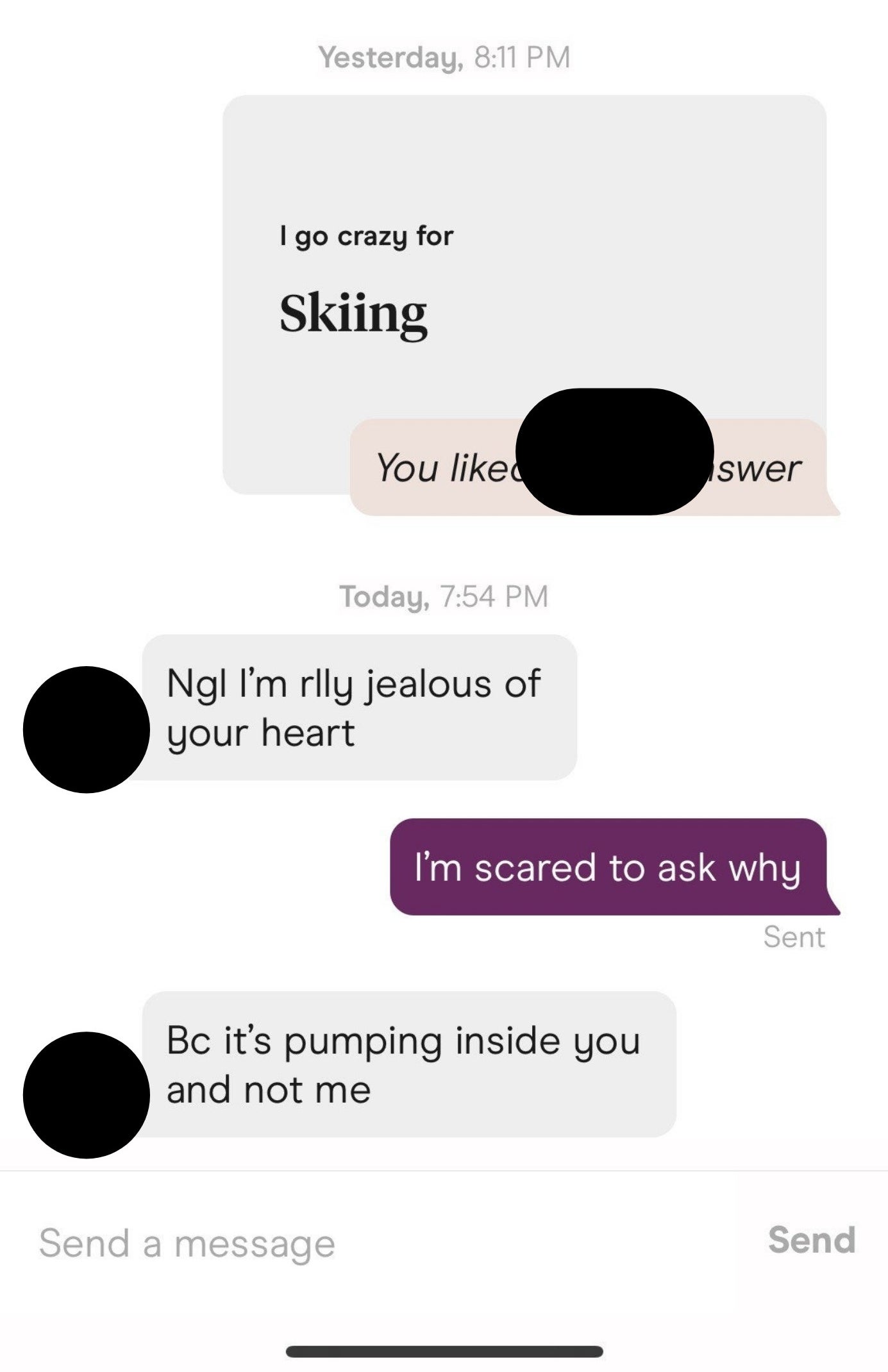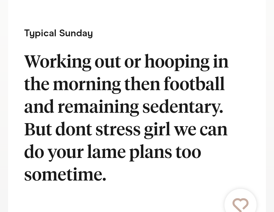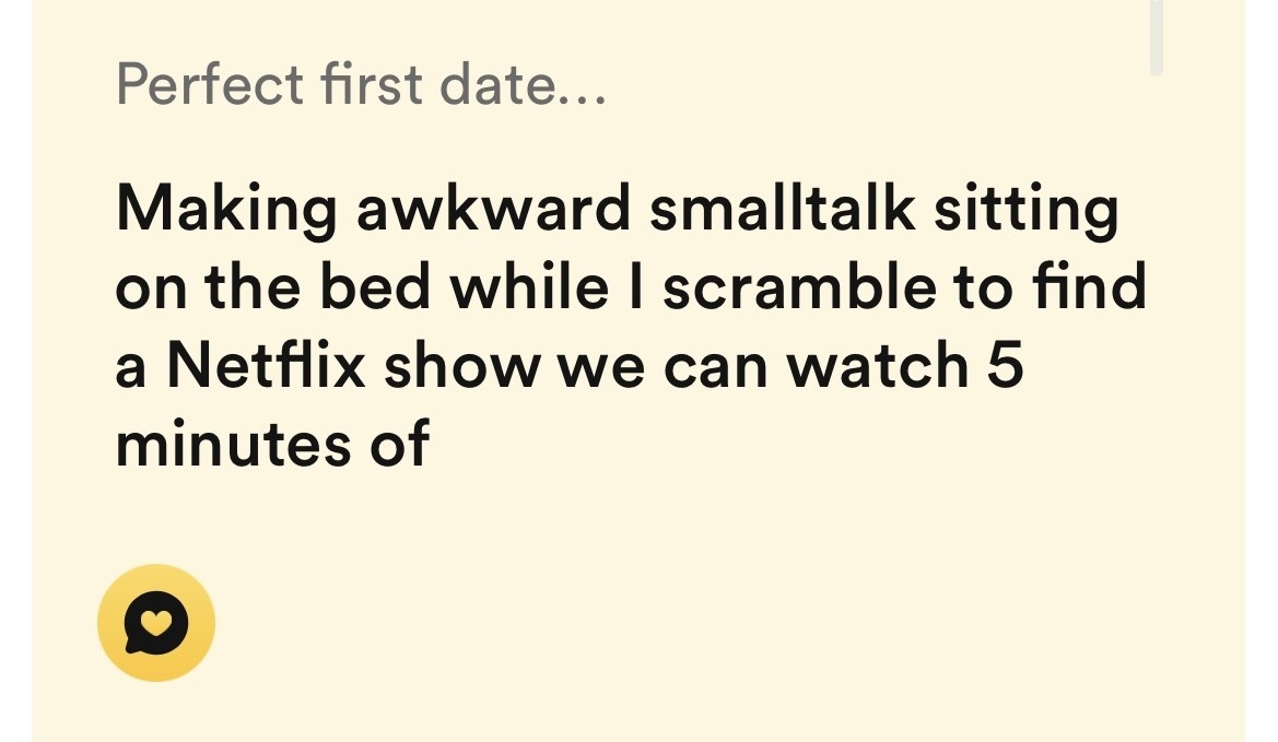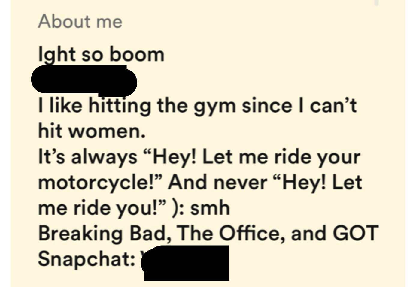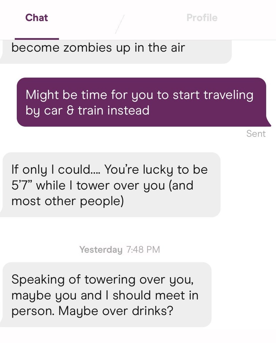 I'm a New York City-based Staff Writer who enjoys covering lifestyle, relationships, and women's content. Context: "We matched on an app and then moved on to WhatsApp. The first message asking to meet was on a Sunday, the next on Monday, and then the final one FIVE WEEKS later. It made me SO ANGRY." Yes, chances are, you could have texted him back in the ~24-hour period. Even busy people check their phones. But, I don't fault you for not! I forget about messages/notifications all the time, especially when I'm busy! I'll respond in my head and think I actually sent a message. Or, I'll tell myself I'll respond later when I have more time to think. Sometimes it slips my mind! All of that "rationalizing" aside, you were under no obligation to respond right away, and he didn't have to be so RUDE! I'm not sure if he thought he was going to guilt you into begging for a second chance, but clearly that didn't work. His response is deterring. Why would you want to meet him now? I had a man on Hinge once get SO sassy with me (and send multiple attacking messages) when I didn't answer him for about 12 hours (three messages into our entire conversation), and it happened to be the day my dog died. So, yeah, I wasn't on Hinge a lot. It's scary how fast men can switch up, but it's better you saw those true colors before meeting him. Finally, NONE of this matters at all because he clearly doesn't stick to his own "principles" since he hit you up five weeks later to see if you'd want to grab drinks. You dodged a bullet. Context: "Can you explain this? Background info: The voice prompt is based on the meme where you say, 'I'm a 10, but...' and then fill in the blank with an annoying, embarrassing, or otherwise slight negative characteristic. This is the message he sent when he 'liked' my profile." Context: "His profile says he's 6'2, so yes he's tall, but he's not exactly going to 'tower' over me at 5'7. But, he seemed really into feeling tall and making sure I knew it." Context: "Gotta love a man pushing 40 who doesn't know what he's looking for yet, but is quick to complain about 'crazy' women." Context: "It starts with the 'wyd hotyy,' and I know it seems to end, but I eventually responded with something simple. I don’t know why I decided to respond, but it’s not like he offended me in any way, so I gave him another chance to see if the language changed. Note to self: Not everyone deserves second chances. The responses were just too ridiculous for me and I can be a bit sarcastic, so I replied. The fact that HE REPLIED and continued with the same 'snack' comment again had me a bit baffled. Clearly his flirting game is just too strong for me, lol. The last one was just like...why?" I'm also just wondering if this means he kisses on every first date, regardless of chemistry. Not all first dates are a good fit. Does he try to instigate a kiss, even if the vibes are off? Is it, like, his "thing" to make sure he kisses every person he takes out? I'm just curious about how this works! But bleegghhh, I hate this as a dating profile prompt. Context: "The way this profile devolved was too much for me, LMFAO. Also, the photos were definitely fake. It's giving catfish." Context: "At least two of his photos noticeably used a filter." Context: "Things men put on their dating profiles 🙄." I don't think women swiping on dating apps are overcome with relief when they read that Brad from Hoboken thinks "good sex" is the hallmark of a good relationship. Like okay...what else ya got? Context: "Profile didn't say anything about ethical non-monogamy or an open relationship. So, I don't know if she knows he's on the apps or not." Context: "When you exist with big boobs."