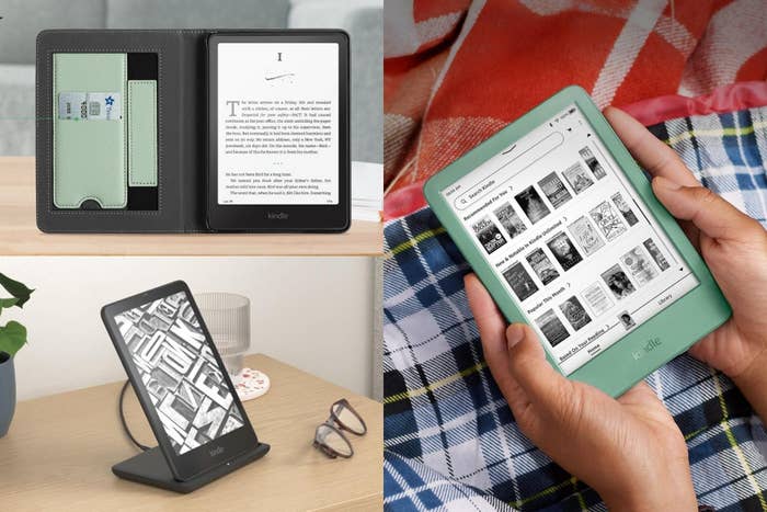 We hope you love our recommendations! While every product is independently chosen by our editors, BuzzFeed and our publishing partners may collect a share of sales or other compensation from the links on this page. You can read more about how our affiliate partnerships work in our Editorial Standards & Ethics Guide. From making it easier to read in bed to keeping the screen smudge-free, these products come in handy for e-reader enthusiasts. Still, a Kindle — like any other tech device — could benefit from a few upgrades. Namely, some protective gear like a case or screen protector can come in handy to keep your Kindle pristine, while gizmos like a page turner remote or stand can make it easier than ever to read while lounging in bed. Don’t just take it from me, either: Amazon is swimming with glowing reviews from Kindle owners who have tried out products like reading lights, charging docks and more to deck out their Kindle and get even more out of it. I’ve done the hard work for you and rounded up some of the best Kindle and e-reader accessories Amazon has to offer. Best of all, some of these products can also be used for other devices like cell phones, iPads and other tablets, so you can really get your money’s worth. Available in different sizes for different Kindle models, this three-pack of screen protectors is great for both protection and reducing the glare on your Kindle for a better reading experience. The five-layer protectors are scratch-resistant and matte, and reviewers have shared many tips on the best and easiest ways to install them without leaving a bunch of air bubbles. Promising review: "The only thing I regret is not having bought these sooner. It doesn’t even feel like there is a protective covering over my screen. The screen protector feels almost exactly like my Kindle (no fingerprints, and same soft paper like feel), it was easy to apply, I was able to get all of the air bubbles out, and it covers the entire screen." —Emily Kay Get them from Amazon: for the 12th-gen Paperwhite for $7.65, and the 11/10th gen for $8.99. Instead of having to pay attention to the battery life of your Kindle and keep track of a charging cord, this charging dock allows you to just dock your Kindle when it's not in use and keep it charged. Compatible with multiple Kindle models and able to charge it even with a case, the dock has an LED light that indicates when the Kindle is or isn't properly docked. It can charge your Kindle back to 100% in as little as two and a half hours. Promising review: "I didn’t know what I was missing until I received my charging stand. It keeps my kindle always charged and easy to find. Even works with the kindle cover on. And it is a bonus for reading at the table as I don’t have to hold the kindle all the time (arthritis). Sturdy. A Best Buy for me!" —Robyn If you want a little more out of your Kindle case than just a cover, look no further than this Cobak case which is made of PU leather and features a hand strap that makes the Kindle easier to hold in one hand, a stand so you can prop your Kindle up and even a card slot to conveniently store any essential cards or cash on the go. The case fits multiple Kindle types, so just be sure to check for yours in the handy table located in the product images. The synthetic leather and microfiber lining are both anti-scratch, and the cover has a magnetic closure to automatically wake or sleep your Kindle. This case comes in a wide range of colors. Promising review: "The best Kindle case I have ever owned. Superior craftsmanship and the back hand strap and upright support are great." —Greg J. Get it from Amazon for $9.99+ (available in two sizes). I'll be honest — I was kind of a skeptic that a page turner remote was necessary for a touchscreen device like a Kindle, but the many use cases for this bad boy may have swayed me: From helping with wrist pain thanks the ergonomic design to reading hands-free in bed when it's cold out so you can keep your hands warm under a blanket, reviewers have found many reasons to love this little gadget (especially when you pair it with a stand, which we'll get to later). You just clip the sensor to your Kindle when you're using it, and press a button to turn the page. The remote has a mute button so you can read silently, and one USB charge allows it to last up to a few weeks. The remote also works with iPads, iPhones and Android tablets, so it can also come in handy if you own multiple devices. Promising review: "Honestly the best invention EVER! I use this daily. This and a kindle stand completely change the game! They hardly ever need charged and make reading so comfy!" —Brittany Get it from Amazon for $33.99+ (available in six colors). We've covered this neck light before for its many practical uses: You can wear it to read, work, draw, knit and more without using your hands or relying on an overhead light. Some Kindle models have limited light and brightness options, and regardless, you may prefer not to stare directly at a super-bright screen to read. For that, this separate light source like this can come in handy. The light's three color temperatures and six brightness level modes allow you to use it in bed without disturbing your partner's rest (it also has a narrow 90-degree beam). You can get this one in seven colors. Promising review: "I bought this reading light because I didn’t want to clip a light to a book or kindle. So I saw this design and thought it was exactly what I needed. It’s comfortable hanging around my neck and the features are excellent. There are three light colors and three intensities. And the best part is it’s rechargeable! I love this reading lamp! Highly recommended!" —Wendy Get it from Amazon for $19.99+ (available in two sizes and eight colors). A Kindle's screen, like your phone screen, can become easily smudged the more you touch it, so you can probably see the appeal in this screen cleaner kit that includes a bott