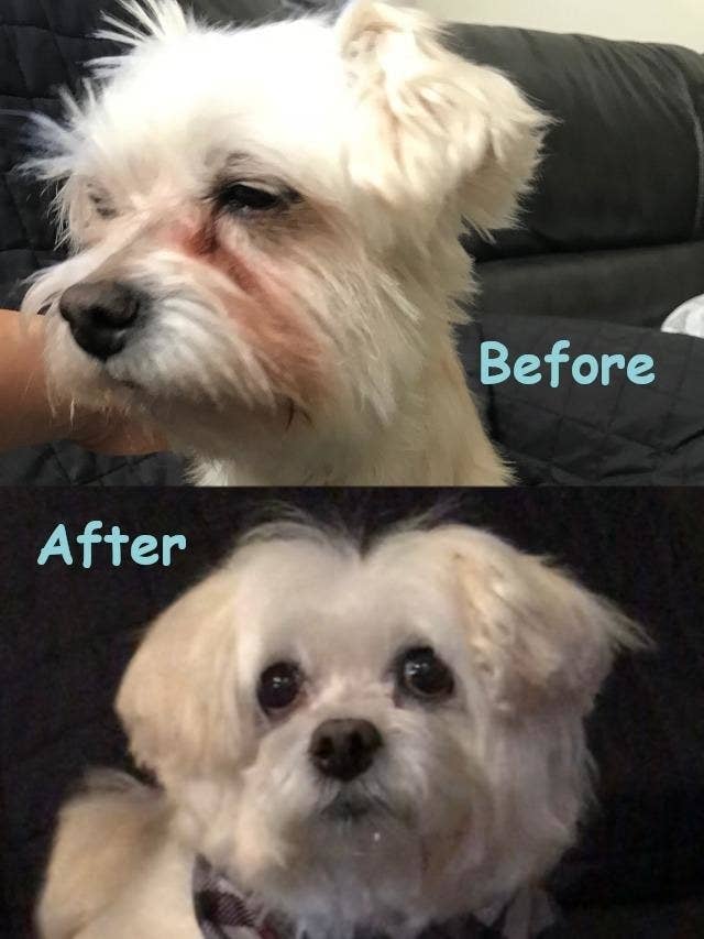 We hope you love our recommendations! While every product is independently chosen by our editors, BuzzFeed and our publishing partners may collect a share of sales or other compensation from the links on this page. You can read more about how our affiliate partnerships work in our Editorial Standards & Ethics Guide. Dogs bark and cats meow, but these pictures speak for themselves. Promising review: "I have two Shih-tzus. They had watery eyes and a little tear staining, but this eye solution has worked wonderfully. One drop in their eyes every morning after I’ve cleaned them. At one point, I stopped doing it for a while, and my male ended up with a stye, so back to every day." —CG Promising review: "My dog has had chronic ear infections for years now. Every other month or so she’d get an infection, and $200 later we’d have meds from the vet who confirmed what we already knew. I finally decided to give an unprescribed treatment a try, and it worked AMAZINGLY. Followed the instructions for a week, and her ear is completely healed! Much easier to pay $20 as opposed to $200 when you get the same results! I highly recommend." —Fromal16 Get it from Amazon for $28.49+ (available in two sizes). If you're worried about finding little paw prints all over your carpeting, don't worry, it's stain free. 🐾 Promising review: "We love this product, it took a while for our 75-pound Lab to use to it, but now she waits for you to put it on before we walk. Her pads are much softer since we have used Musher's and works great on hot blacktop. We tried the dog booties, but she just pulled them off and chewed on them. Great for camping and hiking also. Thanks for such great product." —Pamela Promising review: "We live in a household that contains two humans, two dogs, and two cats. It's a real Noah's Ark furnished with a black sectional couch. Our dogs absolutely hate the vacuum. So much so they will attack the cleaner head with their vicious bite even before we power it on. This makes the task of cleaning our couch extremely unpleasant and nearly impossible. Thanks to ChomChom, we no longer have this problem! With a simple, quick, SOUNDLESS sweep, we're able to keep our couch pet-hair-free in blissful peace. This tool does an amazing job picking up pet hair but not so much with crumbs. We were so impressed, we gifted these for all of our pet-loving friends." —AnonM OK, probably not. But even if they *despise* this tool, at the very least it'll help keep your house somewhat clean. Promising review: "Best. Thing. Ever. This product works like a charm. It gets the sand from between their pads, and is gentle enough that even my most stubborn pup tolerates it! I have a terrier/schnauzer who likes to dig, a mini golden doodle who is prissy about her paws, and a standard labradoodle puppy who is still very fussy. We have a farm where it is extremely sandy, and we stay in a travel trailer. The amount of sand they were tracking into the camper was ridiculous. It takes me three minutes to clean and dry off all of their paws. Seriously, the best purchase I have made!" —Rachel Get it from Amazon for $21.06+ (available in three sizes and eight colors). Promising review: "Absolutely the best product. It saved my itchy goldendoodle! We tried changing food, Benadryl, medicated shampoo, fish oil, everything you can imagine... nothing worked long-term. He was itching his face so badly he would make himself bleed. Had sores and scabs all over his face and neck. I bought these because they had good reviews and I was desperate. It changed his life! He no longer scratches AT ALL! His coat looks great, and all of his sores are healed. He’s the happiest he’s been, which makes me a very happy momma. He is also very picky and never eats treats, but he eats these every time, so that’s an added bonus!" —Darcie Nation Promising review: "Well, I have never before been so shocked at the effectiveness of a product. Our 5-year-old Frenchie, Carol, had a nose that was so crusty it was sprouting these long strands of more crust. There was literally crust on crust on crust. This nose was so crusty and repulsive it was almost beautiful. Her nose might have resembled the rarest, most exotic geode to be mined from the rarest mine in Guatemala. A friend recommended Snout Soother for Carol's repulsive nose. I was worried she would just lick it all off and it wouldn't work. We never imagined she could have a regular, soft, moist nose again. Honestly this product is some black magic stuff! Unbelievable results in three to five days. No one paid me to write this." —Brittany Get it from Amazon for $6.49+ (available in two sizes). Promising review: "This tool really works! We have a Pomsky puppy (Pomeranian/husky) who is 'blowing his winter coat.' I have been cleaning up hair five times per day for two weeks now. Tried this tool, and what a difference it makes. Using it for 30 minutes resulted in the hair combing off. Combed him again the following day and got about one-third of the amount from day one. I think tomorrow's combing will remove over 90% of the loose hair. And it is very obvious that the amount of hair on the wood floor has decreased dramatically. Highly recommend you lay down an old sheet or tarp before you start and wear old clothes. It is unbelievable just how much fur they shed!" —STS2004 Promising review: "I bought this to clean my upholstery in my home. We have dogs who rub up against our couches and toddlers who spill, A LOT, so things can get quite messy. This little machine is perfect for cleaning up spills or just keeping our furniture looking brand-new. I could not believe how amazing everything looked after using this, and how disgusting the dirty tank looked afterward. This machine is super simple to use, easy to store, and lightweight enough to easily move from place to place. I love this thing." —Marina B. Promising review: "My Doberman had one pad, in particular, that was painfully cracked. He li