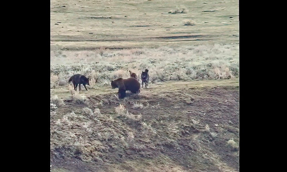 Massive Yellowstone grizzly bear ambushed by wolves on way to carcass