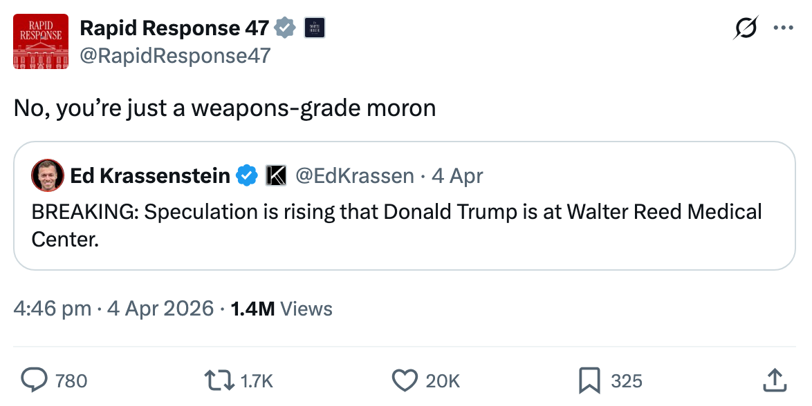 The White House Account Freaked Out On People Speculating About Trump's Health
