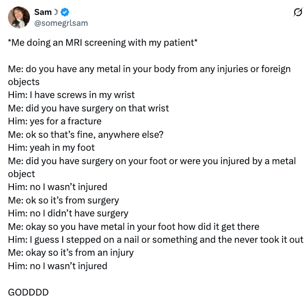 For the record, you're not supposed to leave a nail inside your foot. As a Resident Writer here at BuzzFeed, I cover topics like politics, weird history, tech, trending viral stories, and other various corners of the internet. Editor's Note: While we can't endorse what X has become, we can bring you the fun moments that still exist there, curated and free of the surrounding chaos. "We Had To Carry My 3-Year-Old Out": I Laughed So Hard At These 37 Hysterical Fails From Last Week, I Am For Sure Going STRAIGHT To The Bad Place "Wow, I'm A F—king Idiot": 37 Hysterical Fails That Made Me Laugh So Hard I Forgot About The State Of The World Right Now "I Was 29": I Laughed So Hard At These 43 Hysterical Fails From Last Week, I Am DEFINITELY Going Straight To The Bad Place