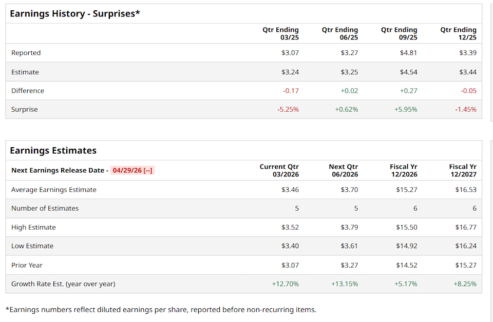 Valued at a market cap of $11.2 billion, Globe Life Inc. (GL) is an insurance company that provides various life and supplemental health insurance products to lower-middle and middle-income families. The McKinney, Texas-based company is scheduled to announce its fiscal Q1 earnings for 2026 in the near future. Ahead of this event, analysts expect this insurance company to report a profit of $3.46 per share, up 12.7% from $3.07 per share in the year-ago quarter. The company has topped Wall Street’s bottom-line estimates in two of the last four quarters, while missing on two other occasions. In Q4 2025, GL’s EPS of $3.39 missed consensus expectations by 1.5%. Nike’s Real Problem Isn’t Sales: It’s Relevance Why Are ORCL Stock Investors So Excited About Oracle Layoffs? Dear Costco Stock Fans, Mark Your Calendars for May 1 Markets move fast. Keep up by reading our FREE midday Barchart Brief newsletter for exclusive charts, analysis, and headlines. For the current fiscal year, ending in December, analysts expect GL to report a profit of $15.27 per share, up 5.2% from $14.52 per share in fiscal 2025. Its EPS is expected to further grow 8.3% year-over-year to $16.53 in fiscal 2027. GL has gained 26.3% over the past 52 weeks, underperforming the S&P 500 Index's ($SPX) 29.1% return over the same time frame. However, it has outpaced the State Street Financial Select Sector SPDR ETF’s (XLF) 12.6% uptick over the same time period. Despite reporting weaker-than-expected Q4 adjusted EPS of $3.39 and revenue of $1.52 billion on Feb. 4, shares of GL surged 1.5% in the following trading session as investors focused on strong year-over-year gains, with revenue rising 3.6% and net operating income per share increasing by 8%. Wall Street analysts are moderately optimistic about GL’s stock, with a "Moderate Buy" rating overall. Among 15 analysts covering the stock, eight recommend "Strong Buy," two advise "Moderate Buy,” and five suggest "Hold." The mean price target for GL is $170.31, indicating an 18.2% potential upside from the current levels. On the date of publication, Neharika Jain did not have (either directly or indirectly) positions in any of the securities mentioned in this article. All information and data in this article is solely for informational purposes. This article was originally published on Barchart.com