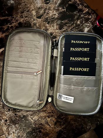 We hope you love our recommendations! While every product is independently chosen by our editors, BuzzFeed and our publishing partners may collect a share of sales or other compensation from the links on this page. You can read more about how our affiliate partnerships work in our Editorial Standards & Ethics Guide. “Where has this been my whole traveling life?” —A reviewer who’s never traveling without the Airplane Pockets tray table cover again. Promising review: "I bought this a few months ago when I knew I'd be flying across the country (more or less) twice this past spring/summer; it was the first new luggage I had bought in about 25 years. I've taken the set on several trips now — two round-trip flights with plane changes, a couple of two-night road-trip hotel stays, a six-day 1,800-mile road trip, and a mandatory wildfire evacuation, and I really, really like it. It rolls like a dream on hard floors, sidewalks, and parking lots — makes it easy for two people to manage three suitcases, each with a laptop bag or duffel attached. The bright red color (my favorite shade of red) really pops and makes it easy to pick out of a luggage carousel. It's lightweight and goes in and out of a hatchback with ease. This set truly makes travel even more fun. Well worth the money." —Rachel Get it from Amazon for $179.99+ (available in 22 colors). Promising reviews: "I would absolutely recommend this for anyone who travels, especially internationally, because of all the extra costs for going over in weight. We were among the few people in line who didn’t need to rearrange our luggage at the airport to meet the weight requirements in Milan. So easy to pack and take with you." —Addison "This little device was well worth the money spent. It saved us a lot of money on our flight home since we knew the weight was over and could pre-purchase the overage in the app instead of paying double at the airport. I’ll never travel without it!! Very easy to use." —Michael Ellis Get it from Amazon for $8.90+ (available in four colors and also as a two-pack). Promising reviews: "I needed a new travel wallet, and this holds everything I need all in one place, and it still closes nicely and stays flat! I can fit my boarding pass, passport, ID, credit cards, money, checked baggage tickets, receipts, and more in it, yet it doesn’t bulk up or look like an overstuffed mess. It's just amazing. The description says it only holds US money, but I just used the boarding pass flap to hold all my Japanese Yen, which are larger. I didn’t use the zippered pocket for coins as I much prefer a separate coin purse for that sort of thing. I definitely recommend to anyone who travels a lot!" —Anthony Luu "I purchased this wallet for my recent trip to Orlando to keep my cash, credit cards, ID, boarding pass, itinerary, etc. It held so many items I was shocked! I saved so much space in my purse by using this wallet. I will never travel without it!" —Amazon Customer Get it from Amazon for $9.99+ (available in 36 colors). Promising review: "I took my kids on their first international trip, and this thing was a total lifesaver. It fits easily in a fanny pack or small purse for easy access, and it fit my whole family's passports, vaccine cards, boarding passes, and a pen with plenty of room for cash and cards if you decide to use it as a wallet for your trip. It made getting checked in a breeze and helped my family keep everything organized." —Kevin Garcia Get it from Amazon for $9.99+ (available in five colors). Reviewers say it's ideal for a suitcase that can roll on four wheels! If you have a suitcase that has to tilt while it rolls, just be careful if the drinks are open at the top. Promising review: "This cup holder is perfect! It helps me a lot! Last time I took a plane with a suitcase and a cup of coffee, I dropped and spilled my drink everywhere when it was my turn to check my passport and ticket. It was a nightmare! This time, I bought this cup holder to do me a favor! I don't have to worry about where my cup and phone are! I can free my hands to do other things. I love it so much! Hope you love it too." —Philip Get it from Amazon for $12.62+ (available in 27 colors and patterns). Promising reviews: "I bought this as a purse for traveling to populated European cities as there are heaps of pickpockets. It worked perfectly! It is the perfect size to fit everything I need and was super comfortable. Highly recommend." —Jessie Anela "I bought this fanny pack to take on our trip to San Francisco and it worked out better than I thought it would! We hiked through Muir Woods and I loved that my hands were free from holding a purse! Then we walked across the Golden Gate Bridge, went to Chinatown, the wharf, etc. and again it was great not having to hold anything. This is by far the best bag I've ever traveled with. It is almost the same exact size a (name brand) bag but a lot less. Best purchase for the vacation :)" —Pat Get it from Amazon for $13.98 (available in 40 colors). Unlike the regular U-shaped pillows, Trtl Pillows are machine-washable and fast-drying. Promising review: "Used it for a 14-hour flight to Japan last week, and it helped tremendously. This was the first time I was able to sleep on the plane so this helped tremendously. Definitely a must-have for travel. It is very light so I was able to easily pack it in my under-the-seat wheeled trolley. I want to emphasize how much the light warmth of the fleece (and I don't like being hot) was just right to help me nod off to sleep. Since this is primarily for sitting upright in the seat or someone in the middle or the aisle seat, this was ideal for me. I just got back yesterday. Again I used it — this time for a 12-hour flight." —Ambience Get it from Amazon for $59.99+ (available in four colors). The pillow is made with a breathable, super soft bamboo fabric, and fully machine washable. Promising review: "We got a few different types of travel 