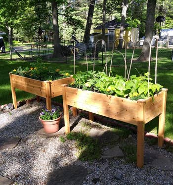 We hope you love our recommendations! While every product is independently chosen by our editors, BuzzFeed and our publishing partners may collect a share of sales or other compensation from the links on this page. You can read more about how our affiliate partnerships work in our Editorial Standards & Ethics Guide. The only thing stopping you from having fresh blueberries for your pancakes is this mesh netting to protect them from the birds and squirrels. Promising reviews: "My daughter showed me this coco coir and how well it works with the garden soil that I order from our local company. It’s amazing how well our vegetables grew this year because the roots stayed moist in between watering. I have mostly raised beds, so this is a must." —Dana "Excellent soil product replacement; I would HIGHLY recommend for any/all of your planter needs. One brick + 7.5 gallons water = enough soil to fill a 20-inch Veradek Mason Kona planter to the top." —RL A dibbler is a measuring stick that pushes down dirt to the correct depth for you to drop your seeds. The holes are color coded to let you know exactly where to plant seeds of different varieties. Promising review: "Love this thing! I have been gardening for a while, and this takes all of the guess work out of spacing. I used this for the first time this spring using the planting chart/guide, and it has worked out perfectly. I have had little to no weeds (I mean come on, you're gonna get some weeds). Planting per the Seed Square will for the most part choke out the weeds, while promoting growth for the plants. I even used this to plant growing plants and not just seeds. Just put the square on the ground, used the stick to mark the spot, and dug a hole where it was marked. Simple enough. Would highly recommend. Super easy!" —Jennifer Geisel Gardinnovations is a Bridgewater, New Jersey-based small biz that specializes in gardening tools and accessories. Promising review: "Okay, I'm a gadget fan, and this is a GREAT gadget. At 17 inches long, it works for any kind of in ground, container, or raised bed. Good weight, sturdy. Gives nice, straight, easy-to-space rows. The points are 1 inch apart. Nice spacing for easy thinning, or just seed every second or third or fourth divot depending on what you are planting. For those who think it might be too deep, easy enough to adjust that for your needs. Have personally found that even lettuces come up stronger for slightly deeper than recommended planting depth, then again, live in the hot dry desert. All in all, a great idea and good quality tool." —Candace Delaney Get it from Gardinnovations on Etsy for $26.95. Made with a bamboo handle and powder-coated steel, it uses a simple lever system to made weeding easy. Grampa's Gardenware Co. is a family-owned small business based in Oregon making tools for gardening. They've been making this tool since 1913! Promising review: "I love gardening but I’m getting older now and weeding is backbreaking work…until I bought this product. It works like a charm, it grabs onto the rootstock and you simply leverage it out of the ground, root and all. The other end of the lever works well too, like the claw of a hammer; it grabs onto smaller weeds and lifts them out of the ground. Now I can weed a large area in less than half the time without breaking my back…👍" —Michael D. Kutras Promising review: "Love this product for so many reasons. The raised design keeps our dogs and nature friends out of the garden. It's great for elderly and people with back or knee problems. You can still garden. Easy to put together. We got a 4-foot garden. Possibly overloaded it, but we have four tomato plants, three eggplants, three green peppers, three red peppers, and three strawberries. Highly recommend." —Cybil Get it from Amazon for $69.99+ (available in three finishes). Promising review: "I ordered the raised flower bed because I just couldn't prep my hard ground for a garden. It arrived a week sooner than it said it would be here, and it took me about 20 minutes to put it together. It saved me hours of unnecessary work, and my garden looks great." —Fluffy Jones Get it from Amazon for $32.29+ (available in three sizes and five colors). Promising reviews: "Well-made bee house with a sturdy hanger that has made an attractive addition to my garden as well as a home to the mason bees that are so important to my veggie/flowers. I plan to give one to each of my gardening friends for Christmas!" —P.A. Nelson "Great way to save the world one backyard at a time! My grandkids and my son loved it! Super good for teaching kids to know that we need ALL bees not just honey bees." —Lucy BTW, Created by Nature is a small business! Promising review: "Planted a handful of the seeds in our front lawn area. A few months later, we had a spectacular color array. Great flowers!" —Shane This meter has a single-probe design (aka less danger to your precious plant roots!) that must be inserted at least 2.5 inches into the soil. No batteries are required! Promising review: "This product is amazing and I might buy one for each rose plant so I don’t have to keep removing it. It measures light, moisture, nutrient, and pH accurately as far as I can tell! I’m still a beginner gardener and this erases all the guesswork out of what my plants need :). I absolutely love it! It also rotates so I can get a better look at what it’s reading. There is a switch that moves from light > moist > nutrient > pH level. I like to keep it on moisture as that is what I’ll be adding most often to my plants. If you pour water over it, you can watch the needle go from low to high on moisture setting. Pretty neat!" —Cass Get it from Amazon for $15.99 (available in two colors). Promising review: "I use these every year to keep thrips from destroying my grapes. I don't like to use toxic chemicals in the garden, and these have been a lifesaver for my organic garden! Within a couple of days these sticky traps 