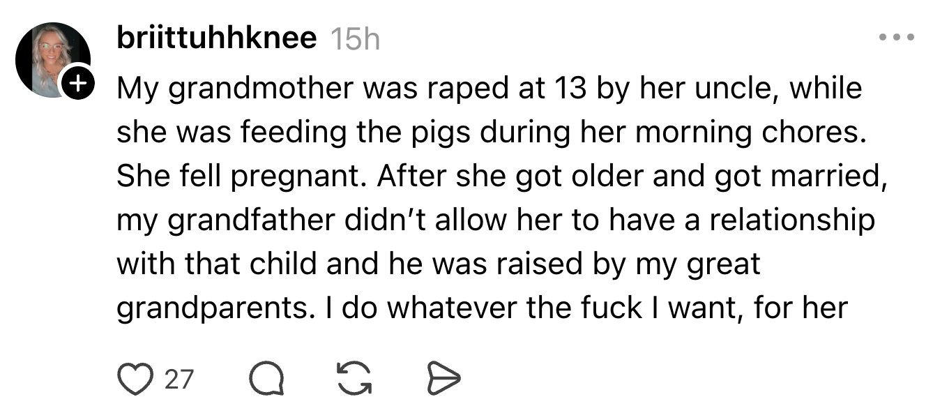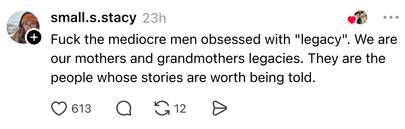 “F*ck the mediocre men obsessed with ’legacy’. We are our mothers and grandmothers legacies. They are the people whose stories are worth being told.” As a Senior Writer and Content Creator for BuzzFeed and Tasty, I specialize in lifestyle reporting, viral human-interest stories, and travel/food media. Please note: This article includes mentions of abuse and sexual assault that may be difficult to read.