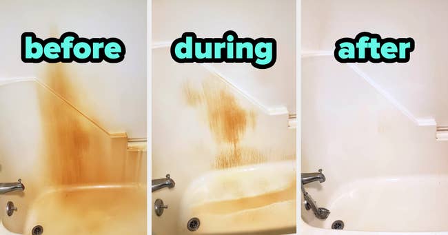We hope you love our recommendations! While every product is independently chosen by our editors, BuzzFeed and our publishing partners may collect a share of sales or other compensation from the links on this page. You can read more about how our affiliate partnerships work in our Editorial Standards & Ethics Guide. Wave goodbye to it all: Splotches of mildew in your shower, deeply embedded pet hair in your carpet, and caked-on food splatters in your microwave. Homes can get SO nasty. And if you don't know how to clean a particular mess, you can end up spending way too much of your precious time and elbow-grease energy, only to get disappointing results. Been there, done that myself. Never again! With these tips, you'll know exactly what you need to do to shine up crusty glass shower doors, eliminate even that several-year-old carpet stain, and banish the cooked-on food on your stove. *bookmarks for later* That's exactly what I did with our filter, which hadn't been cleaned or replaced in over three years, and it worked like a charm! Yep, I took these pictures myself! And yes, I also made sure the PB jar's lid wasn't close to submerged, and I washed the jar afterward. Sure, it's not expensive to buy a new filter (they run about $10 from Amazon), but we're renters, and I wasn't sure what brand we needed to get. Our NYC landlord was not about to replace it for us without a loooooot of hassle. Aluminum ones like these are perfectly washable. If you have a charcoal filter, though, you'll need to replace it if you want it to remove odors the way it's designed to. Get a large Dawn dish soap refill from Amazon for $8.69. Sure, you could use an old toothbrush for this too, but it'll take you longer because the brush head's not nearly as long as this one. Reviewers say the stiff scraper end of this brush really helps get into tricky corners, too. Get a pack of two from Amazon for $4.99 (available in 5 color combos). The reviewer who got these pictured results used Purple Power, which works wonders on stuff like nasty car wheels, greasy clothing stains, and built-up oil on stoves. While it's excellent for heavy-duty problems, it is a tad harsh, so always test it in a hidden area before using it on painted surfaces or fabrics. Get two spray bottles of it from Amazon for $17.43. It's also available as a gallon of concentrate for $17.99. I do exactly this about every six months or so, and it works every single time! See my full shower hack review. A different type of microfiber than the towels you use for car and other house cleaning, these have a super tight weave that's safe for more delicate surfaces like camera lenses, eye glasses, and modern flat screen TVs. Get a three pack from Amazon for $14.99. 1. Turn the water to your toilet off with the little metal valve in the back. 2. Flush the toilet so the tank empties, but doesn't refill (because the water's off). 3. Pour a half cup of citric acid in the tank. 4. Fill the tank up with hot water (some people boil it, some people just use hot from the tap). 5. Let it sit for at least two hours, and up to overnight. 6. Give it all a scrub with your toilet brush. 7. Turn the water back on, and flush a few times till all the mess is gone! Get a two-pound bag from Amazon for $14.99. You do have to let it sit for four to five hours (or even overnight), but the results, as proven by the review photos like the one here, are worth it. The gel formula lets it stick and stay exactly where you put it down, which is why it works better than just spraying with regular bleach: The bleach stays right on the mold stain until it's gone, without drying up or running off. And spoiler alert: I'll show you later in this post that this cleans the mold in front-loading washing machine gaskets, too! It really is like magic: It can also remove rust stains from color-safe fabrics, among many other surfaces. One reviewer who mentioned BuzzFeed said they needed to leave it for a while for it to really work on their stains, but it did! Heads up that some reviewers say it's fume-y, so you'll want to open a window while you use it. Citric acid could work here too, if you want to leave it sitting overnight. But if you want that ring gone in five minutes of scrubbing, the pumice stone's the way to go. Get one from Amazon for $10.80. You'll probably still need a pumice stone to get it clean the first time, but regular use of these can help keep your toilet hard-water-stain-free for longer. These are both made and sold by Bombs Away, an Elizabethtown, Pennsylvania-based small business that sells handmade cleaning and bath products. Get them on Etsy for $12+ (available in seven scents). All you have to do is restamp as needed (about every 12 days or so, depending on how often the toilet's flushed). If you can't imagine not using your toilet brush, you can use the small remaining bit of gel to scrub down the bowl before applying more. I used these all the time in college because my roommates and I couldn't be bothered to scrub, and they do actually work! You just press it beneath the rim (after a regular toilet cleaning, of course!) and let it get to work. Oh, and make sure to stamp it somewhere it won't become a, well, "target" and get sprayed off before its time. Get enough to keep your toilet clean for up to four months from Amazon for $9.76. Get a pack of two bottles from Amazon for $16.30 (about $8.15 each). And it takes just 15 minutes to see results; simply run your water, pour in some cleaner, and start your jets. Get it from Amazon: a bottle good for four cleans for $22.99 ($5.50/clean), two bottles for $34.99 ($4.37/clean), or a gallon good for 32 cleanings for $89.99 ($2.34/clean). The brand also makes a highly-rated hot tub cleaner, if that's what you need! I've used this stuff on a week-old strawberry smoothie stain on a rug, chocolate stains on fuzzy pillows, and other mystery stains, and have seen it for myself — it really does work! It's great for all kinds of stains, l