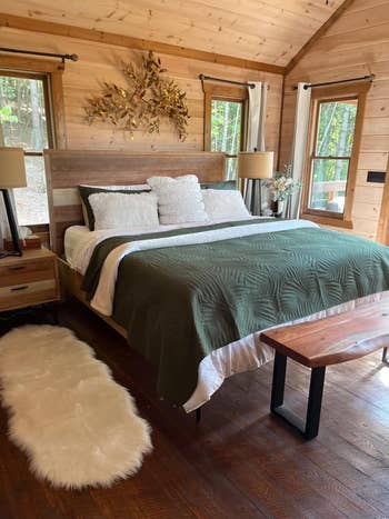 We hope you love our recommendations! While every product is independently chosen by our editors, BuzzFeed and our publishing partners may collect a share of sales or other compensation from the links on this page. You can read more about how our affiliate partnerships work in our Editorial Standards & Ethics Guide. Picks so good your dad will ask if you finally got a raise. Promising review: "This item is very cool, we love it! You can change colors, and it has a timer so that the light will go off automatically if you choose. Bright enough for just the right ambient light in an average-sized bedroom. Helps set a calming mood, too." —David A. Get it from Amazon for $23.99 (available in two styles). Promising review: "I love this shelf! I needed something tall to fill empty space and store books and plants. Each shelf is very heavy-duty, so I can't imagine any bowing would occur in the future, unless it's got too much humidity. Before we put weight on the shelves, it had gaps between itself the wall, but it balanced itself out after adding books. I HIGHLY RECOMMEND this shelf. It's definitely going to last longer than anything you could buy at Ikea, and it has VERY little wasted/unusable space. Just do it! I put it together myself, but I had to hold it steady/leveled while hubby secured it to the wall. It's not impossible to do alone, but get a second person to at least hold it still for you." —Mrs K3NNYB0Y Get it from Amazon for $102.99+ (available in five colors). Promising review: "Sturdy, well-made, and easily assembled. Holds many books and turns effortlessly. It also rolls, even on carpet, and is easily relocated without having to remove any books! Functions as promised. It looks good in any room or setting. I highly recommend this excellent bookcase. It takes up a fraction of the footprint of a standard bookcase and is much safer as it cannot tip. I am planning on buying additional bookcases in various sizes to replace my standard bookcases." —Cynthia V Get it from Amazon for $149.98+ (available in three colors and four heights). Promising review: "We have bought at least six different brands of these kinds of pillowcases over the years via Amazon. We always order standard-size pillowcases, but invariably, we end up with queen-size ones. These standard-size pillowcases really are standard size. They fit our pillows perfectly. And though all the brands that advertise under the 'satin' or 'sateen' or 'silk' pillowcase category represent that their products are, or 'feel like' silk, these pillowcases really do feel silky. We have only washed them (cold water and line-dried only) a few times, but they seem as though they will hold up. I sure hope so. They are the best and most comfortable that we have yet to find on Amazon." —George Scarlatta Get them from Amazon for $11.99+ (available in five sizes and 35 colors). Promising review: "love this rug so much. It’s super fluffy and so aesthetically pleasing." —Olivia "Absolutely love this rug, such a statement piece in my bedroom!" —Amazon Customer Get it from Amazon for $32.99+ (available in 18 sizes and 19 colors). Promising review: "Good strong smell! Don’t even have to light it you can smell it across the room! Great design and good quality." —Stephanie Redding Promising review: "This is a great piece of furniture. I purchased this back when it had fewer than 20 reviews and wanted to help bolster that number. I felt like I was taking a risk buying something this large and expensive with little input from past reviewers, but I’m really glad I did. It looks great in the space I have it set up (it’s the perfect bar/buffet for a dining room). I love how much storage it has, and that the two curved ends open to more storage, which is missing on some of the pricier versions of this from other sellers. Overall, if you’re considering this, it’s worth the purchase." —Erin Mattingly Get it from Amazon for $323+ (available in three wood colors and two sizes). Promising review: "I love this product so much, I was actually a little surprised at how amazing the quality was when it arrived! The fingers are slightly different sizes, so you can store different sizes of rings, and they're spaced perfectly, so I could fit all of my bulkier rings as well. The product is a hard plastic type of material, and doesn't feel like it could break easily. It's also nice and sturdy, so you don't have to worry about your rings flying everywhere if you accidentally bump it. Definitely gonna buy more soon to fit my other ring. 💕 I highly recommend purchasing!!" —Kitty Get it from Amazon for $8.99+ (available in six colors). Promising review: "I bought this because the reviews said it was real wood, sturdy, and an awesome deal. The reviews were correct — I was surprised by the quality of this desk." —Kristin "We were on the lookout for a more mid-mod design writing desk as an alternative for guests and a change of pace in a work-from-home environment. Great to see a solid product offered for a modest price." —rivak Some reviewers note that they're way easier to hang up if you leave the strings tied, then untie them once you have the lights mounted where you want them. Also try layering them with some sheer curtains. Promising review: "It's been a couple of years since I've had these, but THEY ARE GREAT. I bought the curtain and lights separately and used them to create an accent wall in my teeny tiny NYC apartment. I got tons of compliments on them, and it was SO easy to set up. I just used thumbtacks to place it into the wall (probably not the best idea, but hey, it worked)." —katrinaforreal Get them from Amazon for $18.98+ (available in five colors and three styles). Promising review: "So cute, warm, and soft in my Louis XV counter-height chairs that I work from every day at a table. Really adds a luxurious touch and will add to the warm and cozy feel. I might be tempted to buy more for other seating areas! Economical way to 