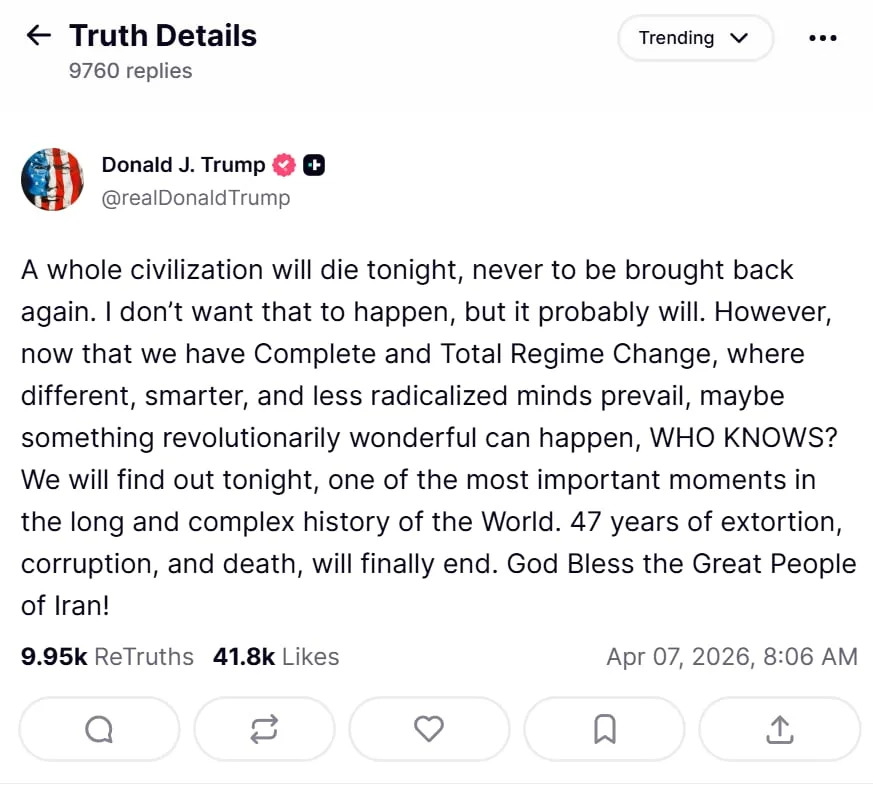 President Donald Trump has undermined his vice president while he is in the middle of peace talks with a Truth Social rant invoking Allah to brag about killing Iranian leaders. “The Fake News Media has lost total credibility, not that they had any to begin with,” Trump, 79, wrote in a Saturday morning rant. “Because of their massive Trump Derangement Syndrome (Sometimes referred to as TDS!), they love saying that Iran is ‘winning’ when, in fact, everyone knows that they are LOSING, and LOSING BIG!” Trump went on to claim that Iran’s “Navy is gone, their Air Force is gone, their Anti Aircraft apparatus is nonexistent, Radar is dead, their Missile and Drone Factories have been largely obliterated along with the Missiles and Drones themselves and, most importantly, their longtime ‘Leaders’ are no longer with us, praise be to Allah!” The president’s post came just as talks between Iranian and U.S. officials began in Islamabad, Pakistan, on Saturday. Trump’s post made no mention of the negotiations that Vice President JD Vance is spearheading along with special envoy Steve Witkoff and Trump’s son-in-law Jared Kushner. Vance’s demands have been different than what Kushner and Witkoff have been pushing ahead of the negotiations. The vice president has been adamant that Iran must have no uranium enrichment capacity, the material used to make nuclear weapons, while Kushner and Witkoff have floated a softer deal in which the U.S. would actually supply Iran with uranium for civilian use. Kushner and Witkoff had been leading negotiations with Iran over its nuclear program, but those efforts were clearly of no success as Trump launched his unauthorized war with the country on Feb. 28. Iran has since said it would prefer not to deal with the president’s son-in-law, or Witkoff, as regime officials said they viewed negotiations with Kushner and Witkoff as a front by the Trump administration to trick Iran into thinking they were negotiating in good faith, when the U.S. really just wanted to launch an attack. Iran has said it would prefer to negotiate only with Vance, who has long expressed opposition to U.S. military interventions in the Middle East. The president’s post also claimed that the U.S. was working to reopen the Strait of Hormuz “as a favor” to the country’s allies and adversaries—not because average U.S. gas prices spiked more in March than any other month since 1967. “We’re now starting the process of clearing out the Strait of Hormuz as a favor to Countries all over the World, including China, Japan, South Korea, France, Germany, and many others. Incredibly, they don’t have the Courage or Will to do this work themselves,” Trump wrote. It’s unclear what exactly clearing out the Strait entails. Iran effectively closed the all-important waterway to shipping as a result of Trump’s war. It has emerged as a key lever for Tehran amid skyrocketing global gas and oil prices. The president added that “Very interestingly, however, empty Oil carrying ships from many Nations are all heading to the United States of America to LOAD UP with Oil.” Trump has been begging for U.S. allies to help him open the Strait, but they have largely been reluctant to do so. As a result, his administration is reportedly weighing punishments for NATO allies that do not give their full support to the president’s war in Iran. The Strait has been such a headache for Trump that he threatened to kill off the entire Iranian population if it did not open back up, a threat which he later walked back as the U.S. and Iran came to a ceasefire agreement of sorts. In another post on Truth Social Saturday morning, Trump made a pitch for “sweet” American crude oil. “Massive numbers of completely empty oil tankers, some of the largest anywhere in the World, are heading, right now, to the United States to load up with the best and ‘sweetest’ oil (and gas!) anywhere in the World,” he said.