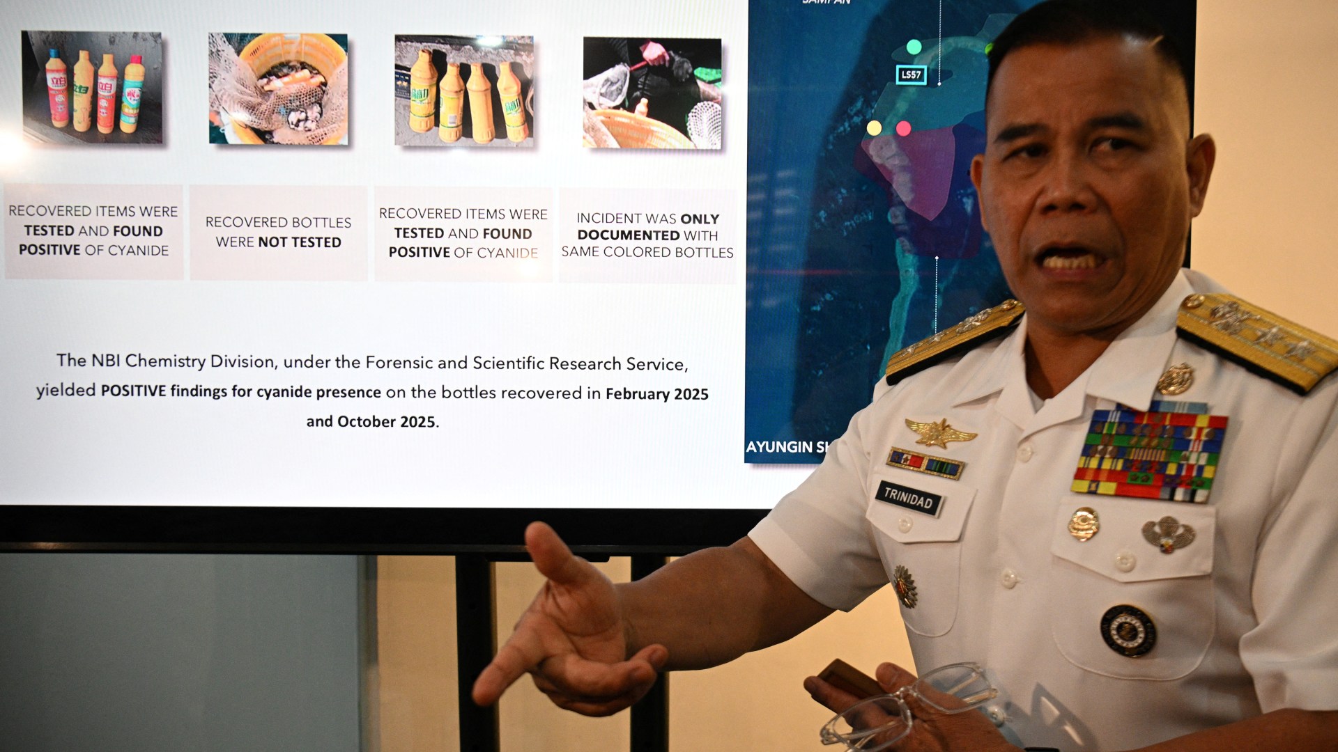Officials warn cyanide could harm marine life and weaken the reef supporting a grounded warship. Save Share The Philippines says it has discovered cyanide on Chinese boats near a disputed South China Sea atoll, warning the substance could be used for “sabotage” against local fish populations. Security officials from the Philippines said on Monday that laboratory tests confirmed the presence of the toxic substance in bottles seized by the Philippine navy last year at Second Thomas Shoal, a submerged reef in the Spratly Islands of the South China Sea. The officials warned that the cyanide could have had serious consequences for marine life and weakened the reef supporting a warship that Manila grounded on the atoll to reinforce its maritime claim. “We wish to underscore that the use of cyanide in Ayungin Shoal is a form of sabotage that seeks to kill local fish populations, depriving navy personnel of a vital food source,” Cornelio Valencia, National Security Council spokesperson, told a news conference, using the Philippines’ name for the atoll. Valencia added that cyanide could damage the reef and “ultimately compromise” the warship’s stability. The Foreign Ministry of China rejected the Philippines’ assertions, calling them a “stunt”. “The Philippine side illegally harassed the Chinese fishing boats conducting normal fishing, grabbed the fishermen’s living supplies, and staged this so-called cyanide stunt. There is no credibility whatsoever to their story,” spokesperson Guo Jiakun said. The Philippines has accused China of disrupting resupply missions to troops on the vessel, including a June 17, 2024, incident that turned violent and resulted in a Filipino sailor losing a finger. In December 2025, the Philippines accused Chinese coastguard ships of firing water cannon at Filipino fishermen near the disputed Sabina Shoal, injuring three people and causing “significant damage” to two fishing vessels. China has denied allegations of aggressive conduct during such encounters and accused the Philippines of trespassing in its waters. China and the Philippines held high-level talks last month over the South China Sea, exploring preliminary steps towards oil and gas cooperation, and confidence-building measures at sea, including communication between their coastguards. The Philippine Foreign Ministry said in a statement on Monday that the scope of the coastguard cooperation would be limited, and “does not contemplate cooperation in sensitive operational areas”, adding that there had been no discussions on joint patrols. China claims nearly all the South China Sea, including areas claimed by Brunei, Malaysia, the Philippines and Vietnam. A 2016 ruling by an international arbitral tribunal found Beijing’s sweeping claims had no basis under international law, a decision China rejects. More than $3 trillion in annual ship-borne commerce travels through the key waterway.