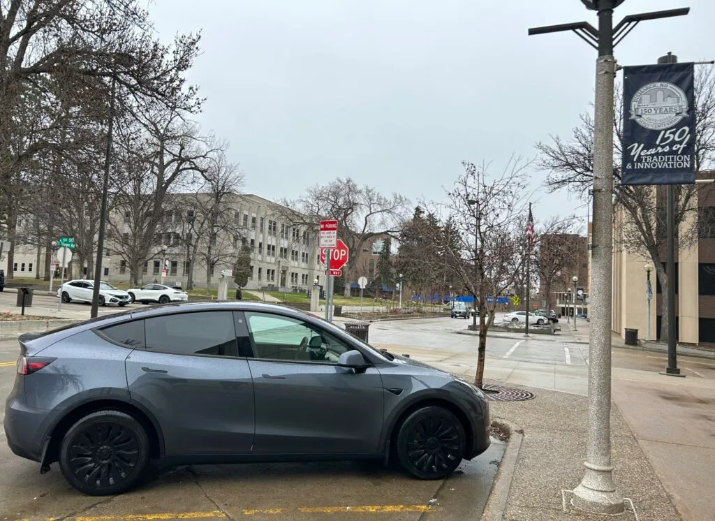 A Tesla is parked in downtown Bismarck on April 13, 2026. Tesla is suing the state of North Dakota over a law that the Department of Transportation cited to reject the company’s application to open a pair of dealerships in the state. (Photo by Amy Dalrymple/North Dakota Monitor) The largest manufacturer of electric vehicles in the United States is suing the state of North Dakota in its quest to open a pair of car dealerships in Bismarck and Fargo. The case, filed by Tesla, is in the hands of South Central Judicial District Judge Bonnie Storbakken after a hearing on Monday. North Dakota law prohibits vehicle manufacturers from owning car dealerships and requires them to sell their products to franchised dealerships for resale to consumers. Tesla, unlike producers of conventional vehicles like Ford or Chevrolet, operates its own car dealerships and sells directly to consumers. Tesla is asking the court to declare the company does not fall within the definition of manufacturer contained in state law. The term is defined as a person who assembles or imports a motor vehicle and sells it to dealers in the state for resale. If the court disagrees and Tesla is determined to be a manufacturer under state law, the company is asking the court to determine whether an exception in the statute applies to their case. “Tesla just wants to be able to sell its vehicles in North Dakota, and not force customers who would wish to purchase a Tesla vehicle to have to drive to Minnesota or another state to do it,” said Ari Holtzblatt, one of Tesla’s attorneys in the case. Court documents filed by the company said there are more than 800 Tesla vehicles registered in North Dakota. Those vehicles were purchased elsewhere, in one of the more than 30 states Tesla is licensed to operate as a dealer, because they are unavailable for sale in North Dakota. Assistant Attorney General Michael Pitcher argued Tesla is asking the court to create a third category of entities, beyond car manufacturers and franchised dealerships that sell to consumers, that the Legislature never intended when it wrote the law. “Tesla’s interpretation would allow any manufacturer to avoid the statute simply by choosing not to franchise its dealers,” Pitcher said. “That would defeat the whole regulatory structure that the Legislature has adopted.” Tesla’s business model of selling directly to consumers is a voluntary decision by the company, Pitcher said. The attorney argued that practice is barred by North Dakota law, and Tesla has the power to change how it operates in order to comply with North Dakota’s rules. “Tesla can operate in North Dakota the same way that every other manufacturer does. They can appoint dealers, they can enter into franchise agreements, and they can sell through that,” Pitcher said. “So the statute is not taking away Tesla’s ability to do business. It’s just regulating the distribution model of vehicles.” Tesla would not automatically receive licenses for its two proposed dealerships if the company prevails in the case. Holtzblatt said a favorable ruling by the court would allow the company to reapply and give it the opportunity to convince the North Dakota Department of Transportation it meets all the other legal requirements for a dealership license. Even if the court disagrees with Tesla’s reading of the law, Holtzblatt said it would be helpful to have a resolution on this situation sooner rather than later. The company had initially applied for the two dealership licenses on Sept. 19, 2024. “We’re kind of anxious to get resolution on those legal questions. Obviously we believe that the statutes favor the interpretation we’ve offered,” Holtzblatt said. “Honestly, if the court disagrees, we just as soon like to get that answer so we can try to move the process forward.” North Dakota has lagged behind other states in adopting electric vehicles and building the necessary infrastructure. There are five supercharger locations for Tesla vehicles in North Dakota, according to the company’s website. The U.S. Department of Energy’s website lists 277 charging ports for electric vehicles at 108 locations in the state, primarily along the Interstate 94 and U.S. Highway 2 corridors traveling east-west. Storbakken took the matter under advisement and did not provide a timeline for when she may issue a decision. North Dakota Monitor reporter Jacob Orledge can be reached at jorledge@northdakotamonitor.com. SUPPORT: YOU MAKE OUR WORK POSSIBLE SUBSCRIBE: GET THE MORNING HEADLINES DELIVERED TO YOUR INBOX