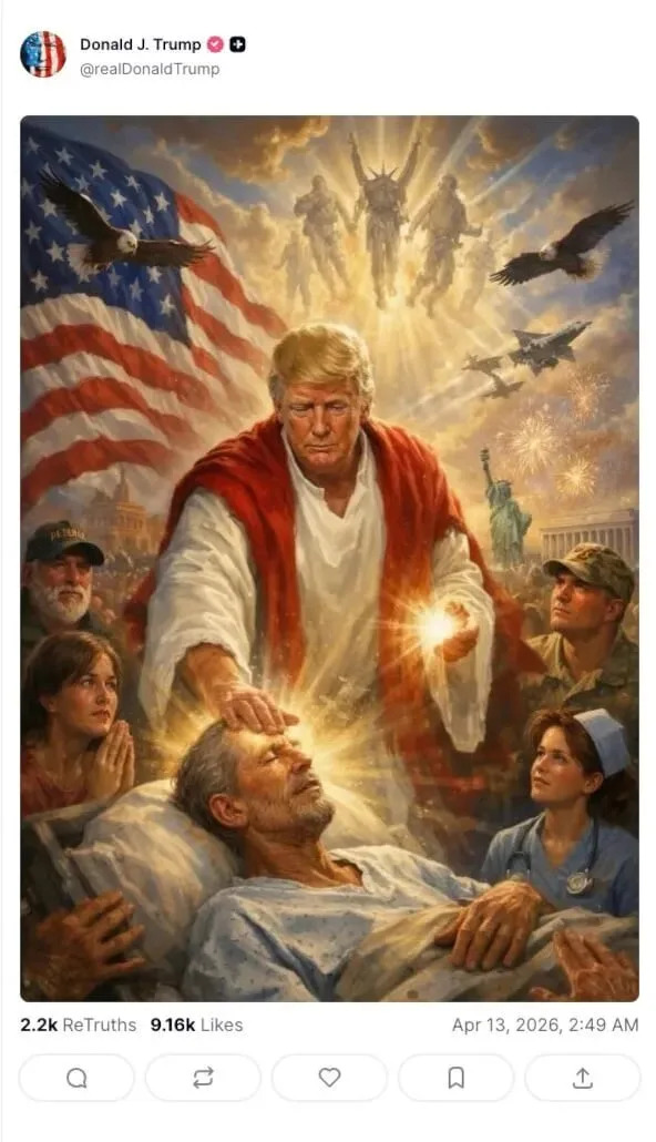 Donald Trump’s critics are pointing to one explanation for the president’s apparent mix-up of Jesus Christ and a Red Cross doctor: cognitive decline. After the president, 79, was lambasted—including by some in his MAGA base—for sharing a now-deleted post depicting him as Jesus, he offered a puzzling explanation. “It’s supposed to be me as a doctor making people better,” the president said of the AI-generated image on Monday afternoon. The image, posted to Truth Social late Sunday night, portrays Trump as Christ, laying his hand on a patient in a hospital bed as if healing him. He is surrounded by other figures, including a nurse, a soldier, and a praying woman. Also visible are the U.S. flag, several bald eagles, the Statue of Liberty, and the Lincoln Memorial. “I thought it was me as a doctor, and had to do with Red Cross, as a Red Cross worker there, which we support,” he said, adding, “Only the fake news could come up with that one.” Many appeared unconvinced by his half-baked explanation, prompting renewed speculation about Trump’s cognitive health. The White House did not respond to the Daily Beast’s request for comment on the now-deleted post. “The best-case interpretation of this is that the dementia is getting worse,” Hemant Mehta, a political commentator, shared with his over 100,000 X followers. “He is so mentally deficient it’s nearly impossible to distinguish between his delusions and disorders on one hand, and his deceit and distractions on the other,” another user who identifies as “Duty To Warn,” piled on. Another X user renewed calls for the 25th Amendment, which would forcibly remove the president from office. “25th Amendment. NOW! I thought Biden was loosing it, but this is on a whole different level,” the user, who identifies as “Paddy,” wrote. Throughout his second term, the Daily Beast has extensively reported on Trump’s declining health, as the president is seen frequently napping during Cabinet meetings, having mental slip-ups, slurring his words, and suffering from swollen ankles. However, the president shared his Christ-like post immediately after he raged against Pope Leo XIV in a 353-word Truth Social screed, where he referred to the American pontiff as “weak” for opposing his war on Iran, and accused him of catering to the “Radical Left.” “Leo should be thankful,” Trump raged, claiming that the Chicago-native “wasn’t on any list to be Pope, and was only put there by the Church because he was an American, and they thought that would be the best way to deal with President Donald J. Trump.” On Monday morning, an unruffled Pope Leo responded to the president’s 334-word Truth Social screed by doubling down in his criticism of Trump and Israel’s war on Iran. “I have no fear of the Trump administration, or speaking out loudly of the message of the Gospel, which is what I believe I am here to do,” the pontiff told reporters aboard the papal flight to Algiers—the start of an 11-day trip to four African countries. When asked about Trump’s Truth Social website itself, the pope offered his own wry remark. “It’s ironic—the name of the site itself. Say no more,” he added.