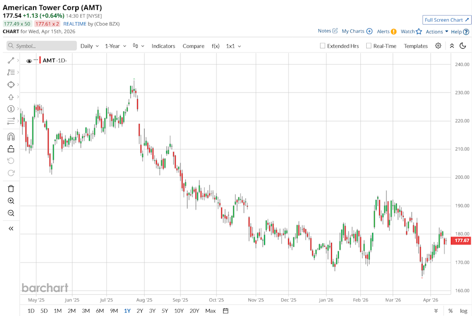 The above button links to Coinbase. Yahoo Finance is not a broker-dealer or investment adviser and does not offer securities or cryptocurrencies for sale or facilitate trading. Coinbase pays us for certain activity generated through this link. Prices displayed are informational. Income-focused investors in 2026 are slowly moving into infrastructure stocks linked to data centers because many of them now offer higher yields and steady, long-term contracts. Companies like AES Corporation (AES) stand out as an example here, with a forward dividend yield of about 4.3%, supported by long agreements with big tech players like Alphabet's (GOOG) (GOOGL) Google and other deals tied to data center growth across major U.S. regions. That trend is being reinforced by another round of big tech spending. Amazon’s (AMZN) plan to invest $25 billion in Mississippi data centers adds more weight to the ongoing buildout of cloud and AI infrastructure. In this setup, another big infrastructure player, American Tower (AMT), plays a slightly different role. It is not just about owning data centers but about providing the tower and connectivity infrastructure that helps those data centers stay connected and run smoothly. The company also pays an annual dividend of about $6.80 per share, which comes out to just under a 4% yield, putting it in the same income-focused group of infrastructure stocks benefiting from this demand. 3 Dividend Stocks Yielding Over 7% to Buy Now as Iran Ceasefire Talks Collapse Get exclusive insights with the FREE Barchart Brief newsletter. Subscribe now for quick, incisive midday market analysis you won't find anywhere else. With hyperscalers still spending heavily and no slowdown in sight, can a stock like AMT turn all this demand into steady income and long-term share gains? Let’s find out American Tower owns and leases wireless towers and other connectivity assets, and its CoreSite data center business gives it more exposure to cloud and AI traffic. Over the past 52 weeks, AMT is down about 18%, though it remains slightly positive for the year, up 1.25% year-to-date (YTD). With a forward P/E ratio of 17x compared to the sector average of 31.82x, the stock looks attractively priced for investors who want steady income at a fair value. The latest quarter backed that up. Revenue came in at $2.738 billion, up 7.5% year-over-year (YoY), driven by steady leasing demand and continued growth in its data center business. That top-line strength flowed through to profitability, with Adjusted EBITDA at about $1.82 billion, also up roughly 7.5%, showing margins are still holding up. On cash flow, AFFO per share came in at $2.63, beating expectations. Reported net income was $821 million for AMT shareholders, down sharply YoY due to non-operating items and currency swings. For the full year, revenue reached $10.65 billion, while net income attributable to shareholders totaled $2.53 billion. Free cash flow also stayed strong at $836 million for the quarter, supporting dividends and buybacks. Capital spending was $592 million, and the company also kept full-year AFFO guidance at $10.78 to $10.95 per share, which points to a steady payout base. Most of the growth story in AMT now comes from CoreSite, its data center business. Recently, CoreSite became a Google Gold Verified Peering Provider, which basically means it now has a stronger and more direct connection setup for companies using Google services like Google Cloud. It helps customers get faster and more reliable access without much complexity, especially for businesses running tools like Google Workspace or other cloud-based apps that need steady internet performance. CoreSite also rolled out a native 400 Gbps AWS Direct Connect in its Chicago data center. This is built for heavier workloads, especially AI-related ones that need a lot of data moving quickly. It’s already being used by some customers, including a cybersecurity firm processing large data sets for real-time threat detection, while some financial companies are also looking at it for fast trading and research work. On the income side, AMT currently offers an annual dividend yield of about 3.79%, paid out quarterly, with the latest dividend at $1.79 per share. The only concern is that the payout ratio is high at about 125.74%, meaning it is paying out more than its current earnings cover. Even so, the company has still managed to raise its dividend for two straight years, showing it is still trying to grow shareholder payouts, even if coverage is tight right now. Looking ahead, Street estimates are anchored around $2.65 for the current quarter (03/2026), easing slightly from $2.75 a year earlier, then $2.62 for 06/2026 versus $2.60 the prior year, before stabilizing into $10.60 for fiscal 2026 compared to $10.76 previously. Analyst sentiment remains firmly constructive. BMO Capital maintained an “Outperform” rating while adjusting its price target, lowering it from $250 to $245, but still citing strong international performance, expanding data center exposure, and rising U.S. carrier activity as core supports for the long-term thesis. Across 24 analysts, AMT carries a “Moderate Buy” consensus, with an average price target of $214.59, implying an upside of roughly 22% from current levels. Amazon’s extra $25 billion push into data centers just shows the same thing again: demand for digital infrastructure is still growing fast. American Tower is not directly building those data centers, but it is still tied in through its tower network and its CoreSite business, which connects to cloud and AI traffic. You still get close to a 4% dividend yield and fairly steady cash flow, with exposure to hyperscaler spending that the market does not fully price in yet. If cloud and AI spending stay strong, the stock is more likely to move up slowly over time rather than make big jumps, driven by income and gradual revaluation. On the date of publication, Ebube Jones did not have (either d