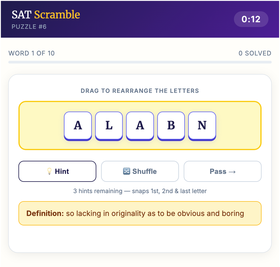 Only True Word Nerds Can Solve All Of These SAT Scrambles Without Using Any Hints