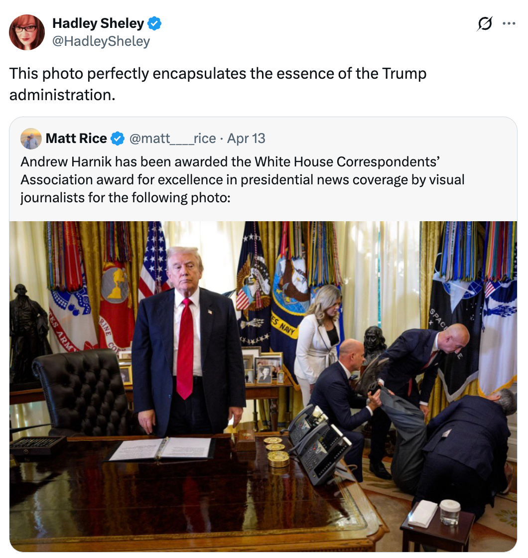“This photo perfectly encapsulates the essence of the Trump administration.”