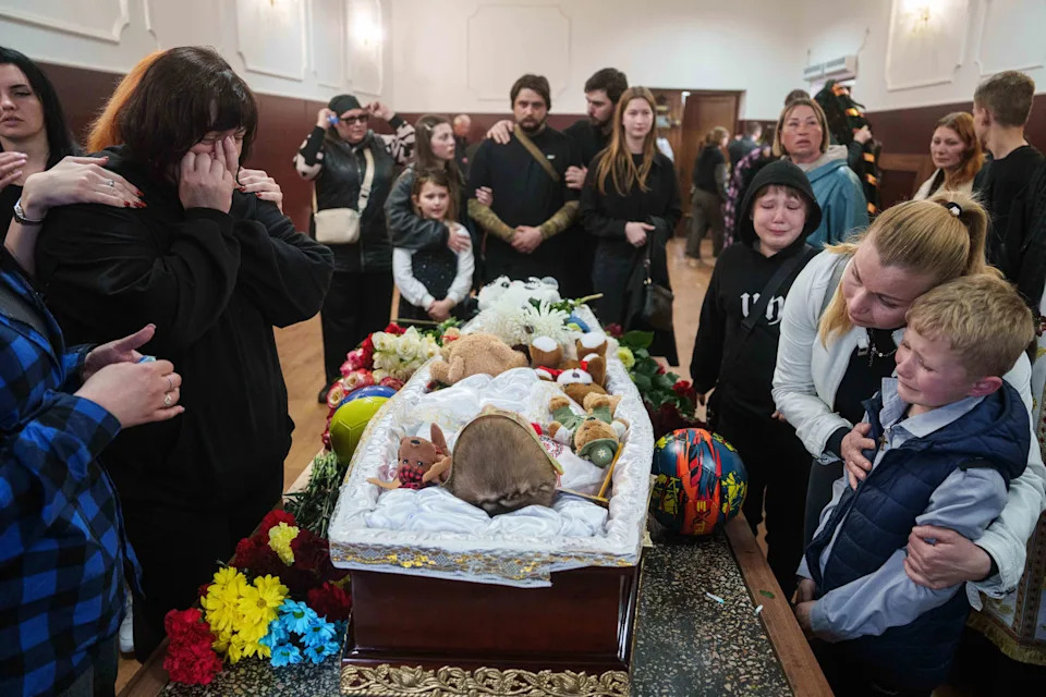 KYIV, Ukraine (AP) — Russia hammered civilian areas across Ukraine with drones and missiles Thursday, killing at least 16 people and wounding more than 100 others in the worst aerial attack in weeks, Ukrainian authorities said. Nearly 700 drones and dozens of ballistic and cruise missiles were used, as Ukrainian officials acknowledged that vital stocks of advanced interceptors are running low. Tetiana Sokol, a 54-year-old Kyiv resident, said two missiles hit near her home and she took cover with her dog in the hallway as flashes lit up the night and windows shattered from the blast wave. “On the third attack everything broke, everything flew, we were shocked, we didn’t know where to run. I grabbed whatever came to hand and ran away with the dog,” she told The Associated Press. Moscow's forces have hit civilian areas almost daily since its all-out invasion of its neighbor more than four years ago, with the regular assaults occasionally punctuated by massive attacks. More than 15,000 Ukrainian civilians have died in the strikes, the United Nations says. Russia's Defense Ministry maintained the operation was launched against military-related targets “in retaliation” for Ukrainian strikes deep inside Russia against oil refineries and weapons plants. European Council President António Costa described Thursday's strikes in Ukraine as “yet another horrendous attack” while people slept in their homes. The attacks came in the wake of Ukrainian President Volodymyr Zelenskyy's 48-hour trip this week to Germany, Norway and Italy in an urgent search for more air defense systems that can stop Russian missiles. Ukraine has developed a significant domestic arms industry, especially in the production of drones and missiles, but cannot yet match the sophistication of U.S. Patriot air defense systems. Yuriy Ihnat, head of communications for the Ukrainian air force, said the Russian attack made extensive use of ballistic missiles, which only Patriot systems can reliably shoot down. “We desperately need more missiles for the Patriot systems," Ihnat told Ukraine’s private TV channel 1+1. Ukraine fears the Iran war is depleting stockpiles of the advanced American-made air defense systems it needs, and strongly opposes a U.S. pause on Russian oil sanctions. “Another night has proven that Russia does not deserve any easing of global policy or lifting of sanctions,” Zelenskyy said on X. Thursday's strikes killed four people in Kyiv, including a 12-year-old, with more than 50 others injured, authorities said. Attacks killed nine people in the southern port city of Odesa and four in the central Dnipro region. The central city of Cherkasy declared a day of mourning Thursday for the funeral of eight-year-old Bohdan Serhiiev, killed in a Russian drone strike earlier this week. Mourners left flowers and stuffed toys next to the open casket before the burial, while friends and classmates held white balloons and a sign reading “Eternal Memory.” “He was such a happy kid. He was always running around and he loved me so much,” Bohdan’s 15-year-old brother Denys Zhuk, told the AP. "We played together, went to soccer l together. I love my younger brother so much. I just wish he was here with me.” ___ Hanna Arhirova and Derek Gatopoulos in Kyiv contributed. ___ Follow AP’s coverage of the war in Ukraine at https://apnews.com/hub/russia-ukraine