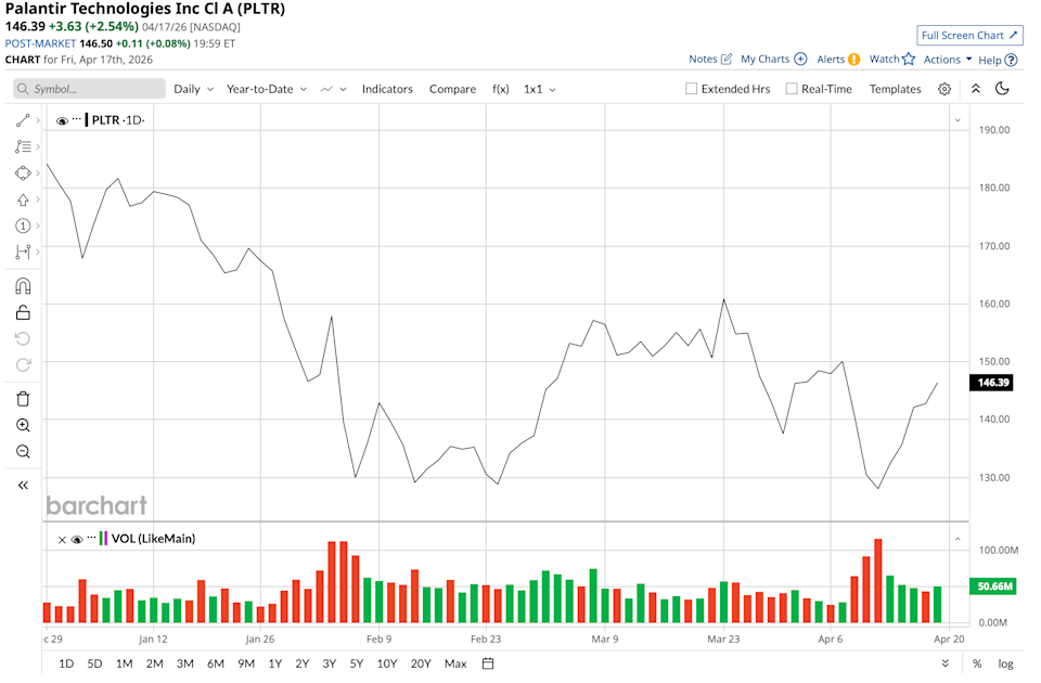 The above button links to Coinbase. Yahoo Finance is not a broker-dealer or investment adviser and does not offer securities or cryptocurrencies for sale or facilitate trading. Coinbase pays us for certain activity generated through this link. Prices displayed are informational. Wall Street's leading financial institution, Morgan Stanley, reckons that AI-led data analytics company Palantir (PLTR) will continue to experience strong growth in the coming times. Palantir's stock has been an unstoppable juggernaut in recent years. Yet, amid concerns around valuations and questions of irrelevance from the likes of Michael Burry, Palantir continues to find backers. The Sanjit Singh-led team of analysts at Morgan Stanley has now given its vote of confidence for Palantir (and several other software stocks). Specifically for Palantir, it noted, "Fundamentals remain exceptionally strong, with accelerating U.S.-led growth, expanding large-customer adoption, and best-in-class margins, making the path to $10B in revenue increasingly credible." Tesla Earnings, Hormuz and Other Key Things to Watch this Week Netflix Generates Massive FCF and FCF Margins - NFLX Price Targets Are Higher Profit Jumped 58% at Taiwan Semi. Does That Make TSM Stock a Buy Here? Markets move fast. Keep up by reading our FREE midday Barchart Brief newsletter for exclusive charts, analysis, and headlines. So, PLTR stock is now valued at $350 billion, and its stock is down 18% on a year-to-date (YTD) basis. Is this an opportune moment then to heed Morgan Stanley's optimism about Palantir and load up on its stock? Let's examine. A mere glance at Palantir's financials, and one can figure out what that "fundamental momentum" Morgan Stanley is talking about, as Palantir delivered another strong set of numbers for Q4. The company tracks its performance through the Rule of 40, which adds together revenue growth and operating margin. Scores above 40% are viewed as solid, and Palantir achieved an impressive 127% in its most recent period. Notably, revenue reached $1.41 billion, reflecting a 70% increase from the same quarter a year earlier. Earnings per share climbed 78% to $0.25, exceeding what analysts had anticipated. At the same time, the operating margin widened to 57% from 45% in the prior year period. Commercial revenue continued to narrow the difference with government revenue. In the United States, commercial revenue jumped 137% to $507 million, while government revenue advanced 66% to $570 million. The total value of contracts signed during the quarter rose 138% year over year to $4.26 billion. This surge points to healthy demand and greater clarity around upcoming revenue streams. Cash generation stayed solid as well. Net cash provided by operating activities increased 69% compared with the previous year, and adjusted free cash flow grew 53% to $791.4 million. Overall, Palantir closed the quarter holding $1.42 billion in cash while carrying just $45.86 million in short-term debt. Looking ahead to the first quarter, the company projected revenue in the range of $1.532 billion to $1.536 billion. For the entire year of 2026, Palantir expects revenue to hover between $7.182 billion and $7.198 billion. Taking the midpoint of that guidance suggests roughly 140% growth for the first quarter and around 60% growth for the full year. Yet, valuation continues to stand out as the main point of attention for investors. The stock currently trades at a forward P/E ratio of 110.70 times, a P/S ratio of 48.16 times, and a P/CF ratio of 98.78 times. Each of these multiples sits well above typical levels for the sector. Even the forward PEG ratio, which accounts for the company's exceptional growth rate, comes in at 2.41 versus a sector median of 1.36. Palantir's technological moat through its Ontology moat and what it is doing to stay ahead in the race have been discussed threadbare by me in various pieces, with the latest one also highlighting how it is looking to increasingly corner the commercial market. And the fears around Anthropic rendering Palantir obsolete are also misplaced. High switching costs and the entrenchment of Palantir in its customers systems and processes make it extremely difficult for companies to just wake up one day and shun Palantir for an LLM, which are becoming increasingly commoditized by the day. For instance, Anthropic's Claude may be ahead of others like Gemini and ChatGPT now; however, some months down the road, that may not be the case. Moreover, Palantir maintains flexibility by working with a range of artificial intelligence systems. Through its AIP platform, the company readily integrates offerings such as Claude, GPT-4, Llama, and additional options as needed. As a result, some of the potential growth benefits for Anthropic extend into Palantir within enterprise environments, although the opposite does not apply. Thus, Palantir functions as a user of Anthropic solutions rather than a direct rival in the space. Further, Palantir offers a comprehensive platform that brings together multiple capabilities. It handles data integration via Foundry, delivers immediate operational insights through Gotham, supports AI-driven evaluations and systems with AIP, assigns particular functions to Maven, and manages software deployment with Apollo. In a notable recent success for Maven specifically, it gained recognition as an official program of record. This designation establishes it as a formally authorized, funded, and extended acquisition initiative for the Pentagon. Such progress stands as a clearly favorable signal for Palantir. It strengthens the company's prospects for securing additional contracts inside the United States and sends an encouraging message regarding its goals in global markets. Beyond that, Palantir stands well prepared to address what enterprises require when feeding reliable information into AI processes. This enables strong results, including the ability to finish enterprise resource planning migra